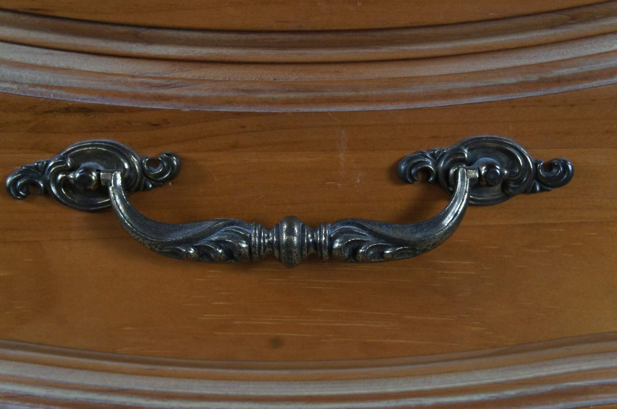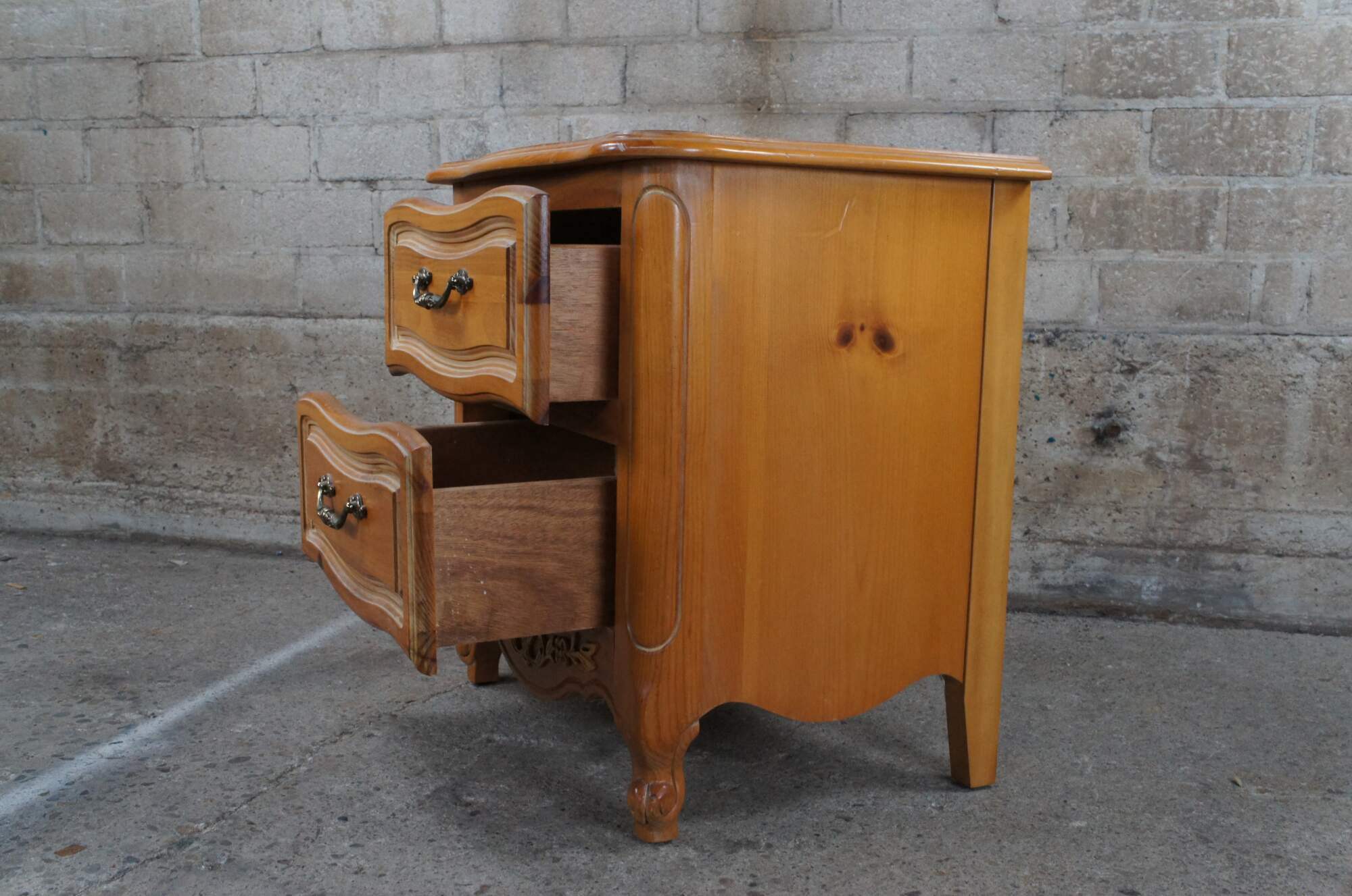 Henry Link Bedside Table, Circa 1980s. Part of the Chardonnay Collection. Made from Pine in classic French Country styling with 2 drawers, foliate carving and cabriole feet. H 818-621, Made in USA