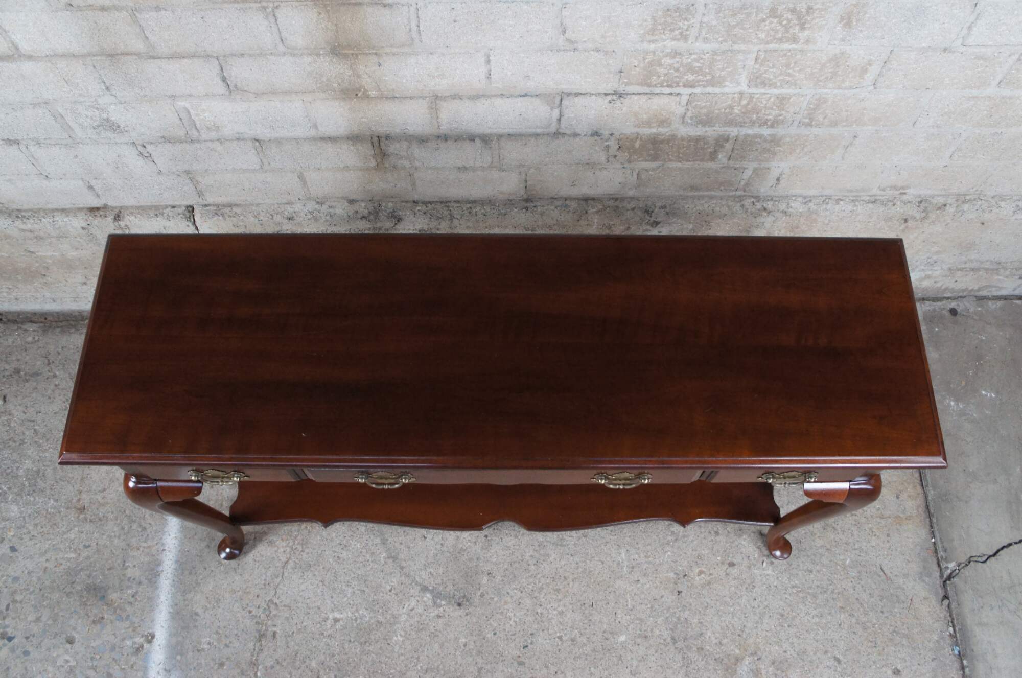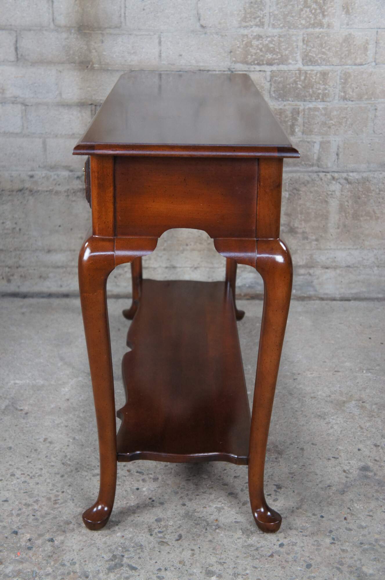 Vintage Bassett Furniture sofa table, sideboard or console. Made of cherry featuring Queen Anne styling with serpentine form an pad feet.
