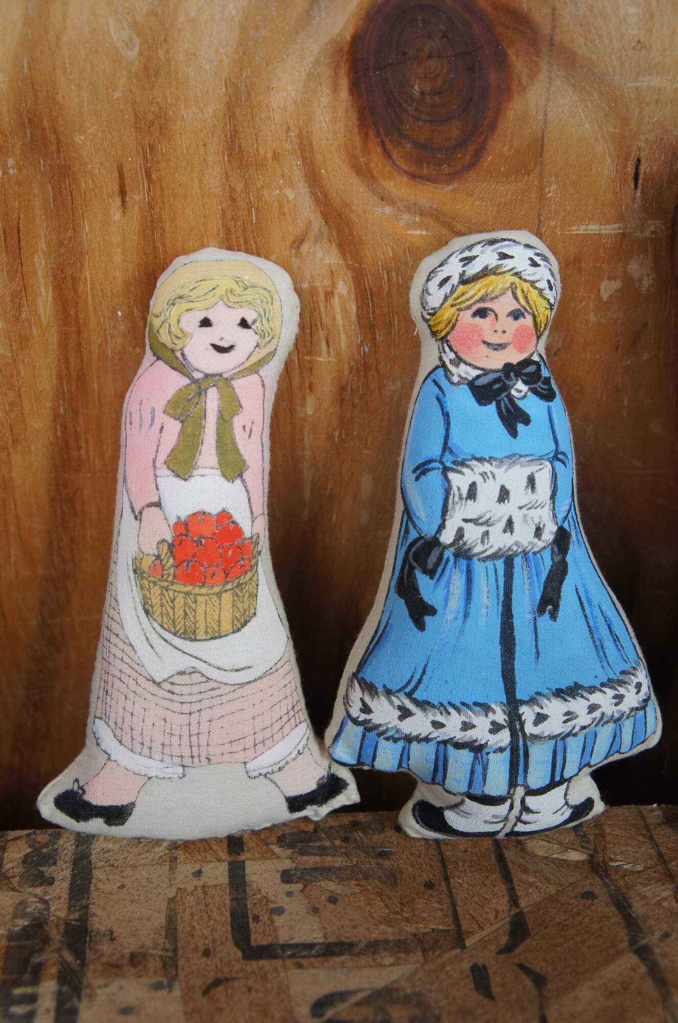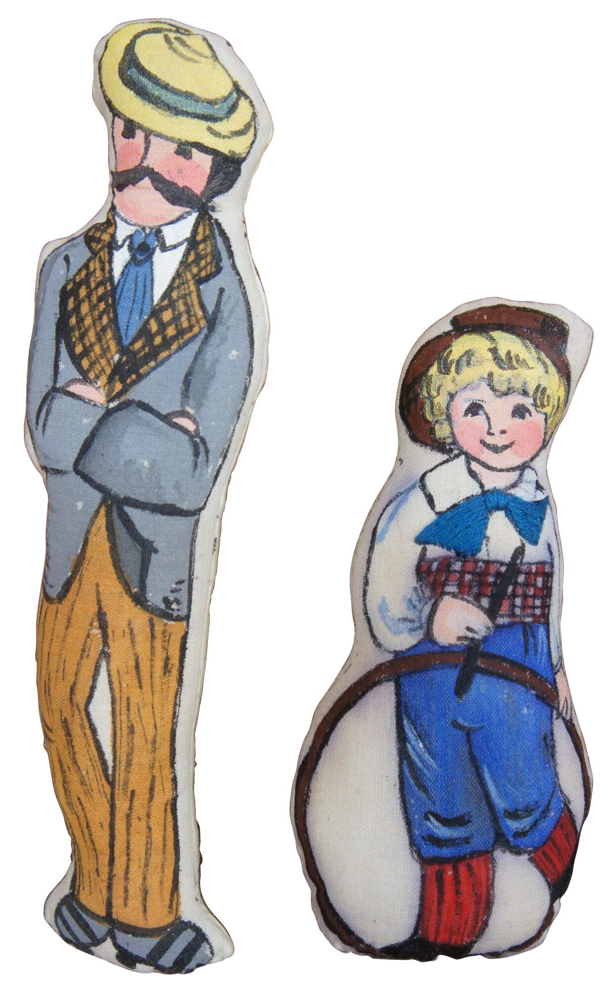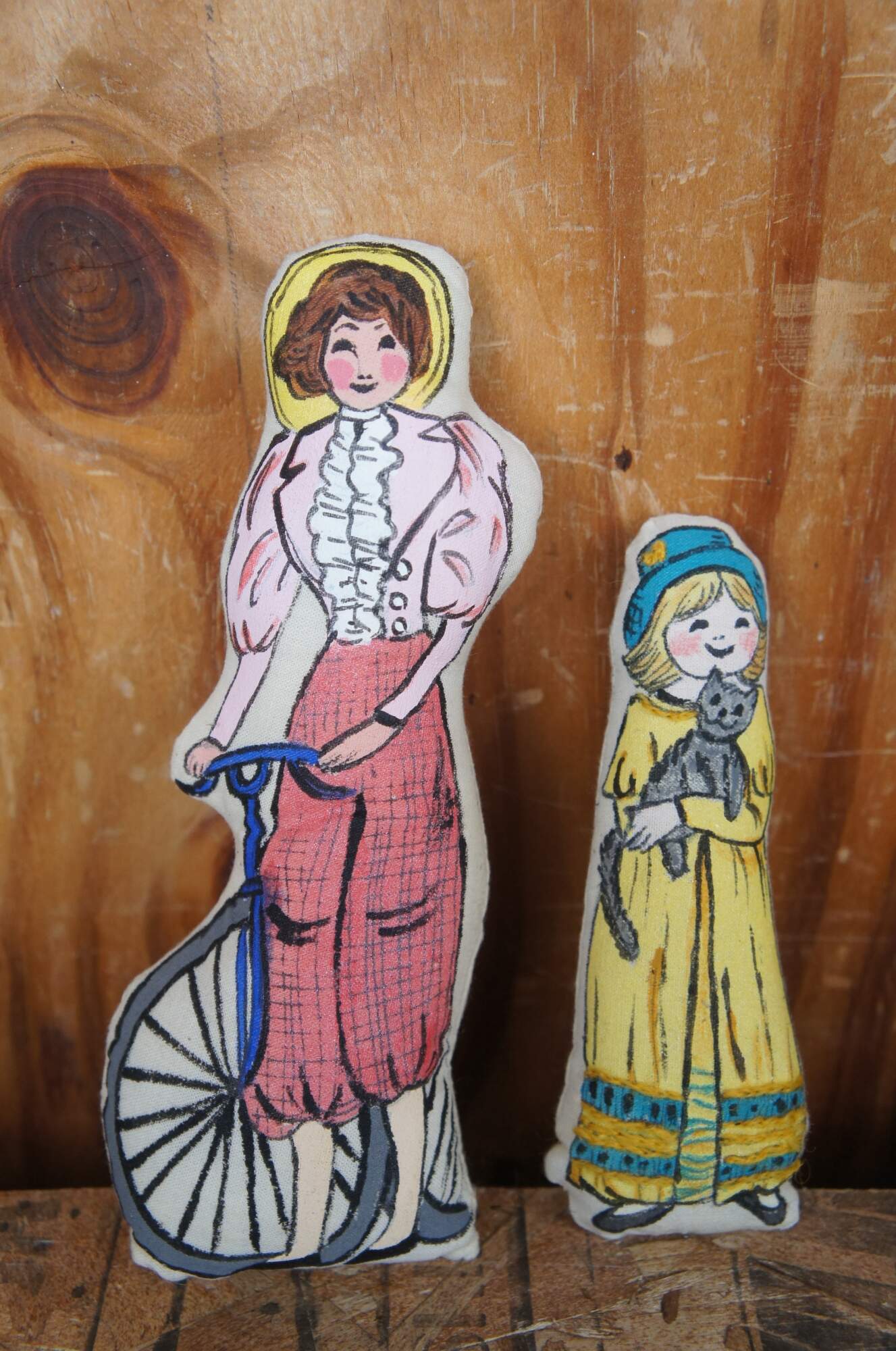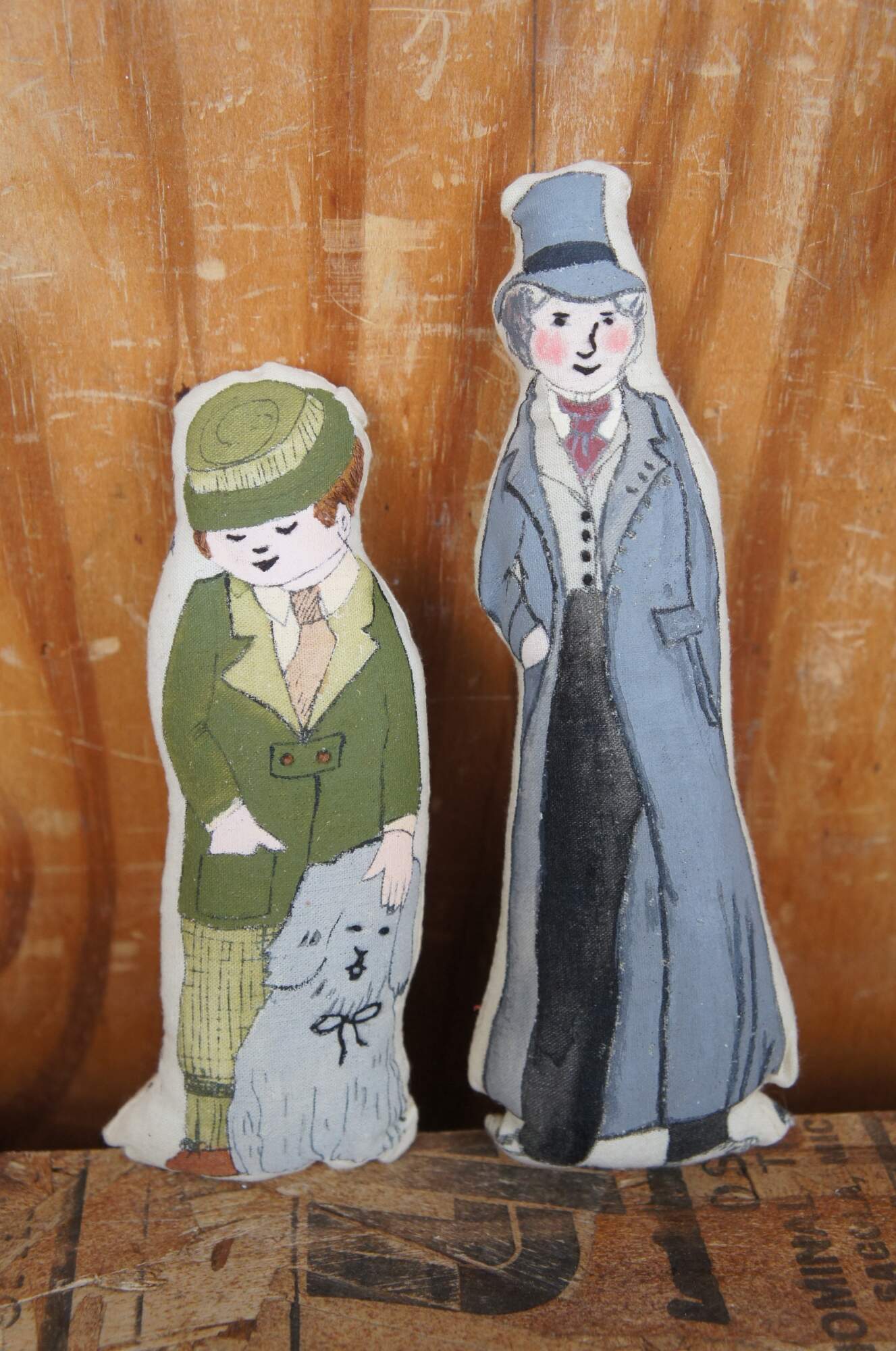 10 vintage handmade soft stuffed painted Victorian people dolls.