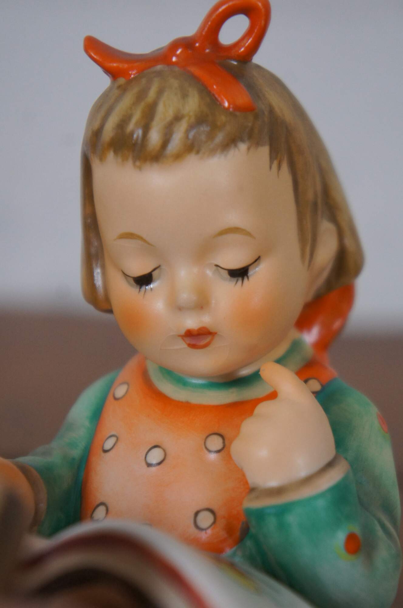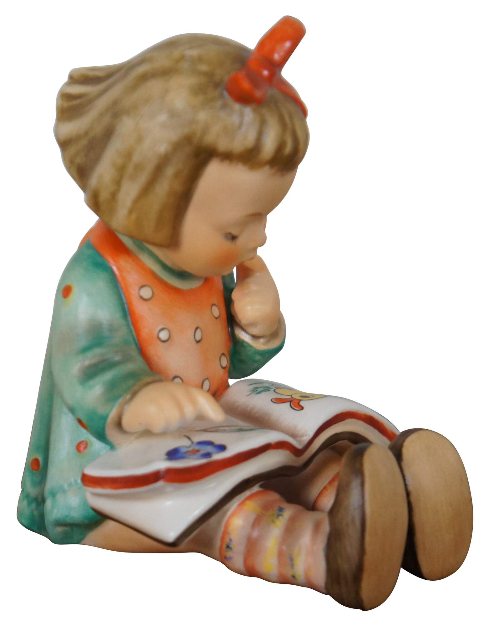 Goebel M.I. Hummel porcelain figurine number 8 titled Bookworm; made in West Germany with the stamped TMK 6 (1979-1991) and marked CH 81. Circa 1981.