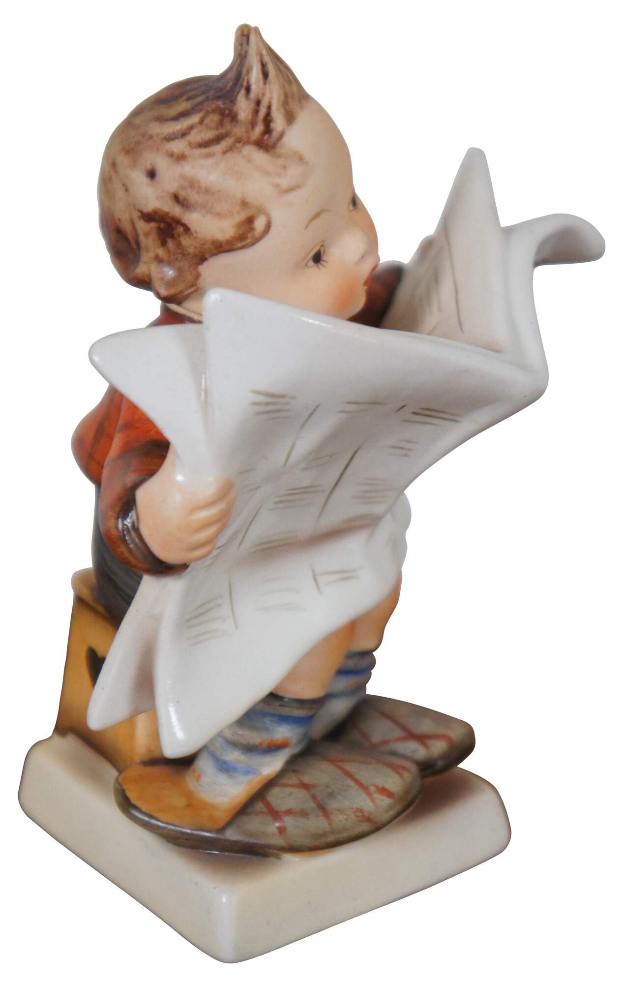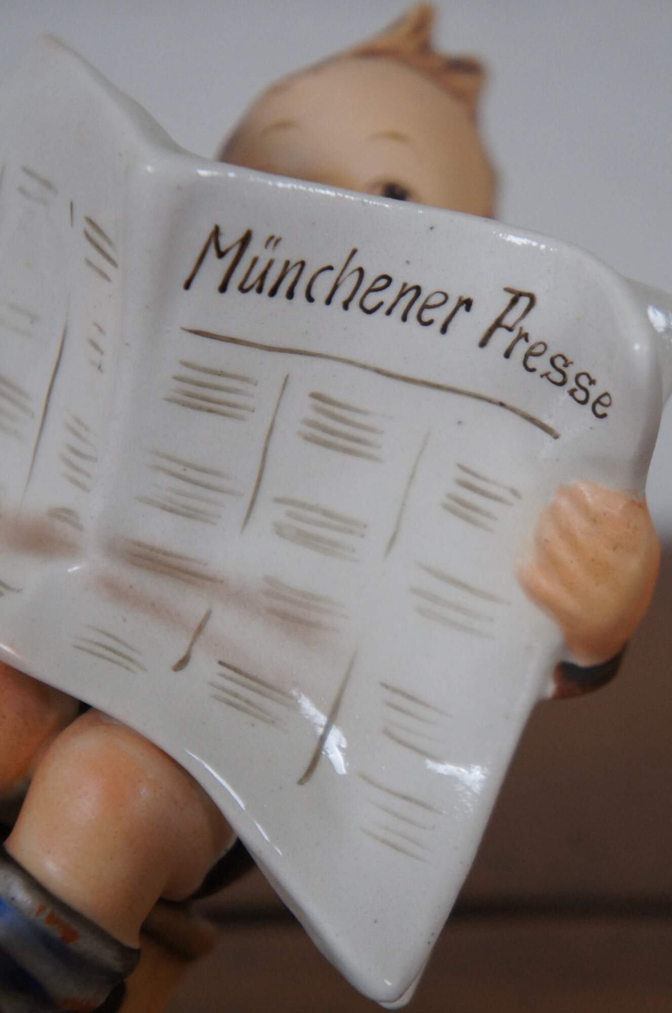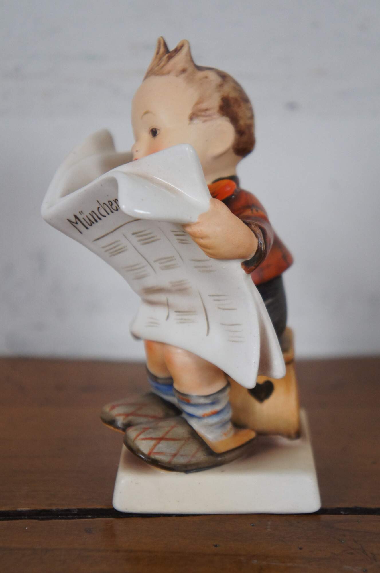 Goebel M.I. Hummel porcelain figurine number 184 titled Latest News Munchener Presse; made in Germany with the stamped TMK2 Full Bee mark (1950-1955).