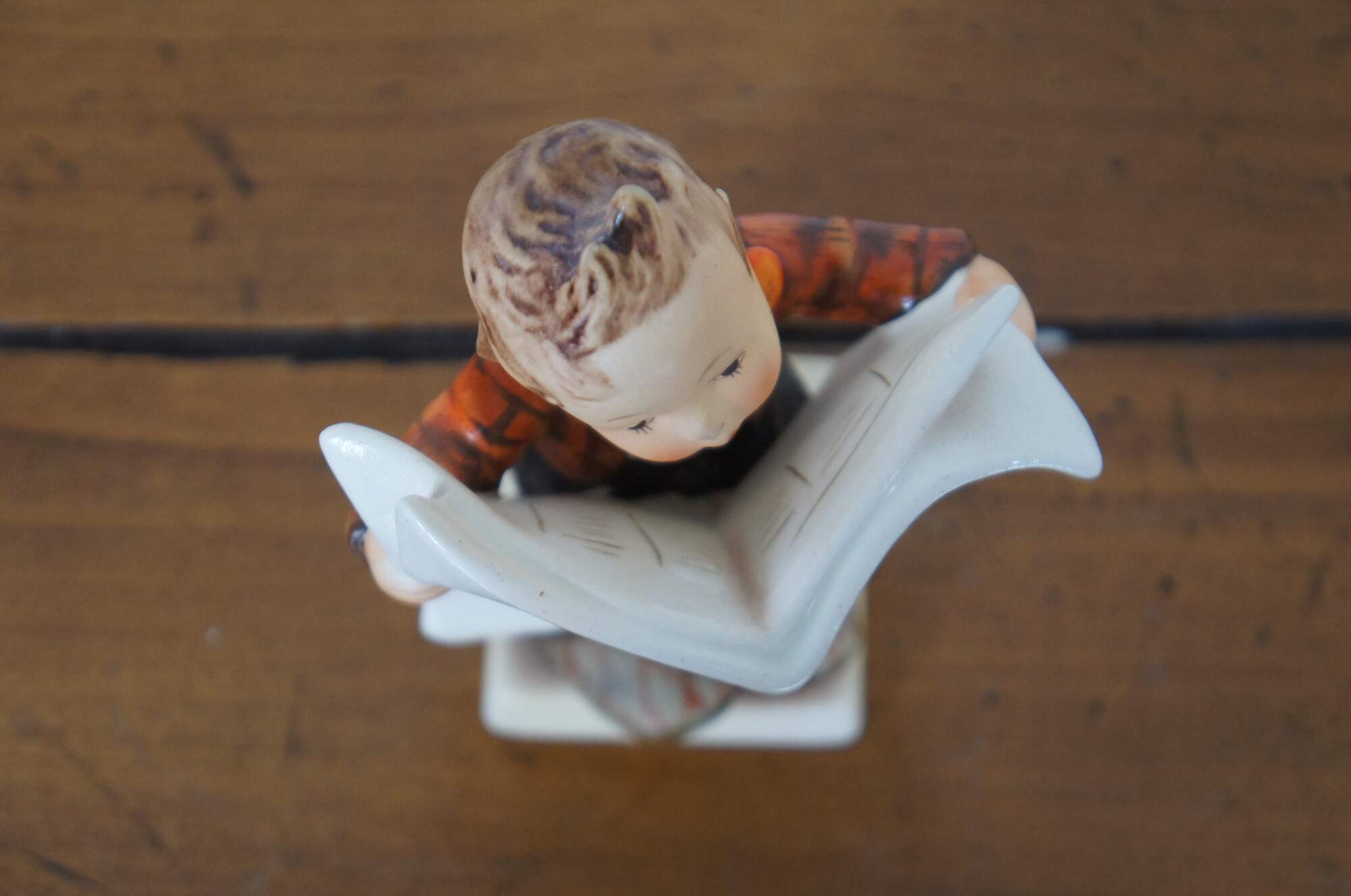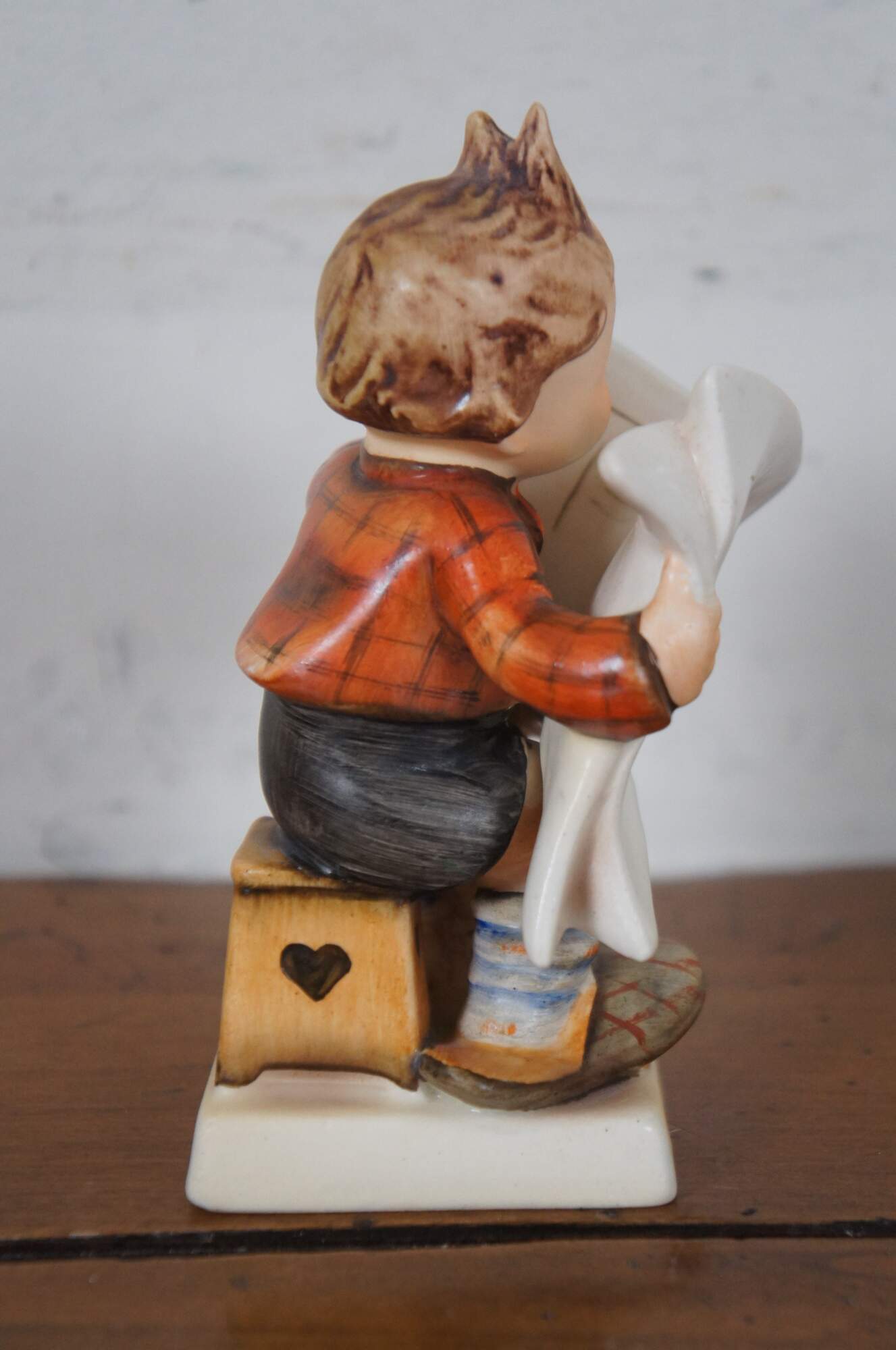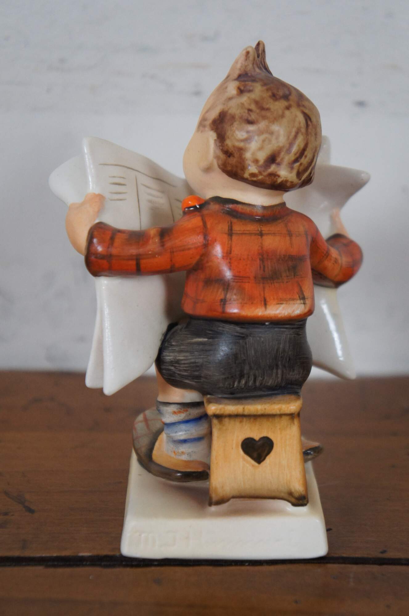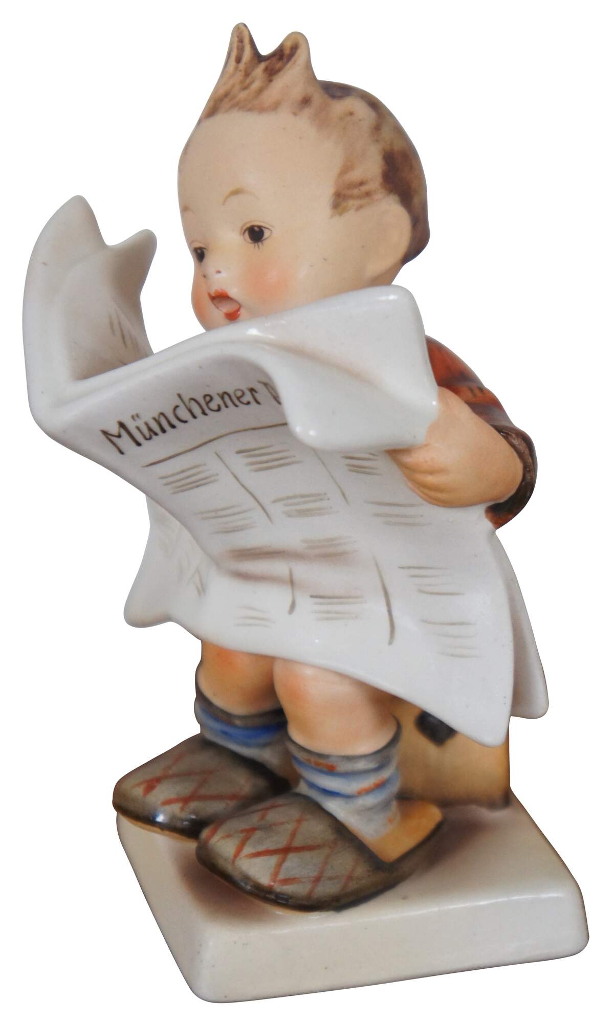 Goebel M.I. Hummel porcelain figurine number 184 titled Latest News Munchener Presse; made in Germany with the stamped TMK2 Full Bee mark (1950-1955).