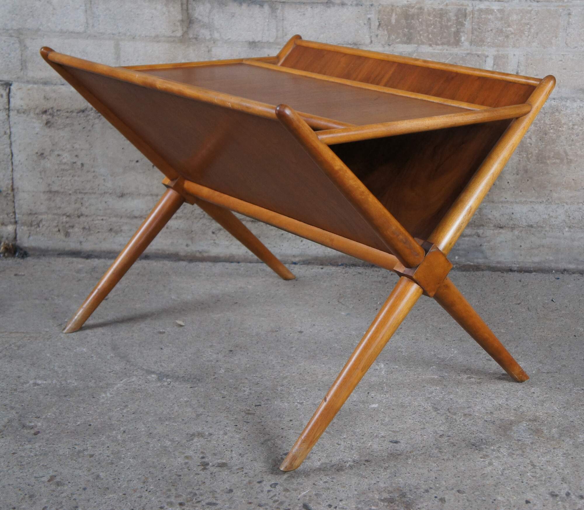 Pair of Sculptural X Tables, designed by T.H. Robsjohn Gibbings for Widdicomb, American, circa 1950s Made of natural walnut with a minimalist design. Originally intended for use as a magazine table, it can be used as end / side tables, or a nightstands.