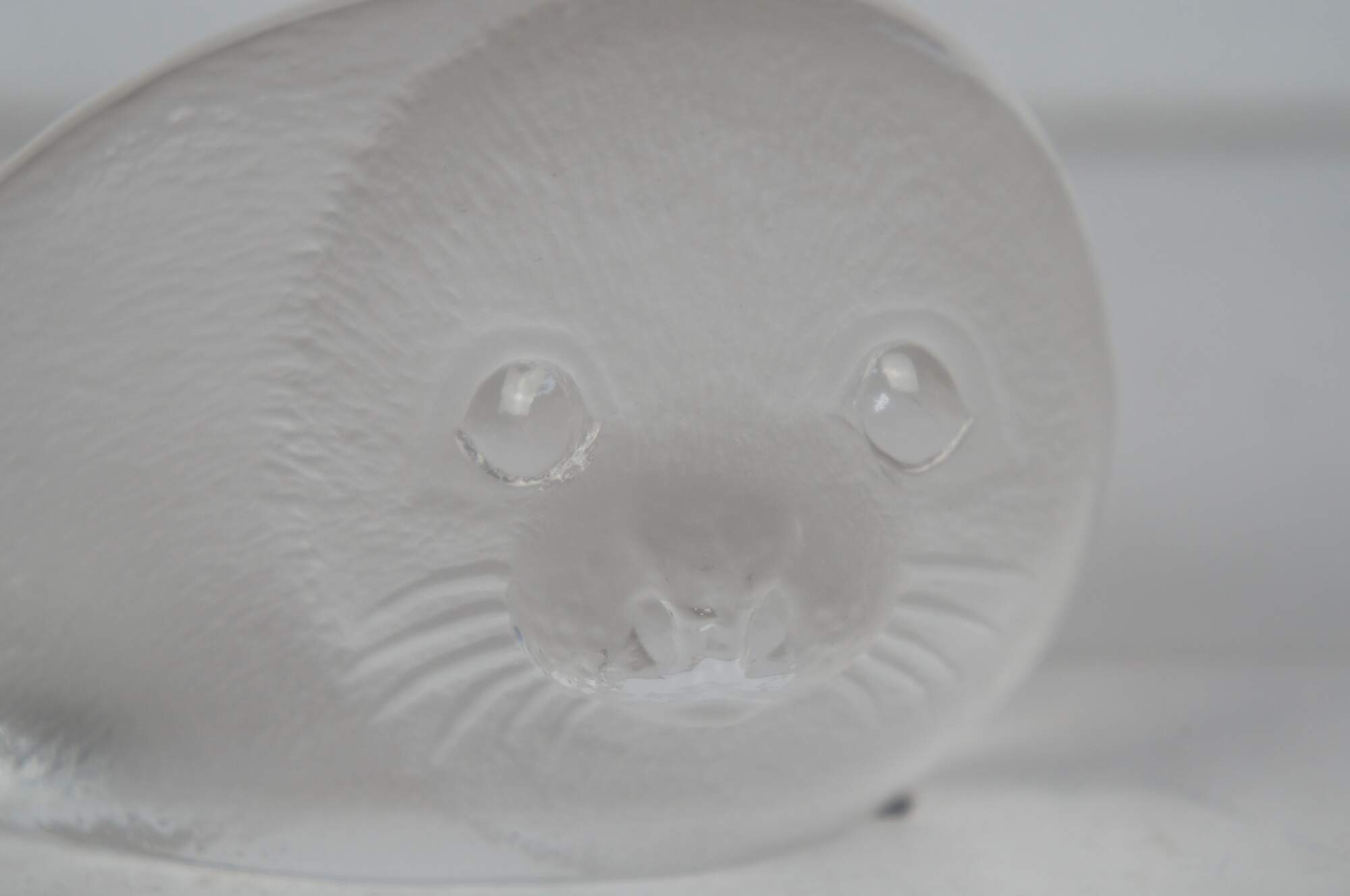Vintage Mats Jonasson full lead crystal seal pup figurine paperweight, made in Sweden.