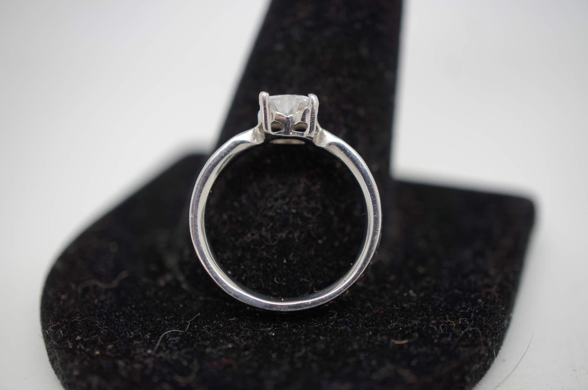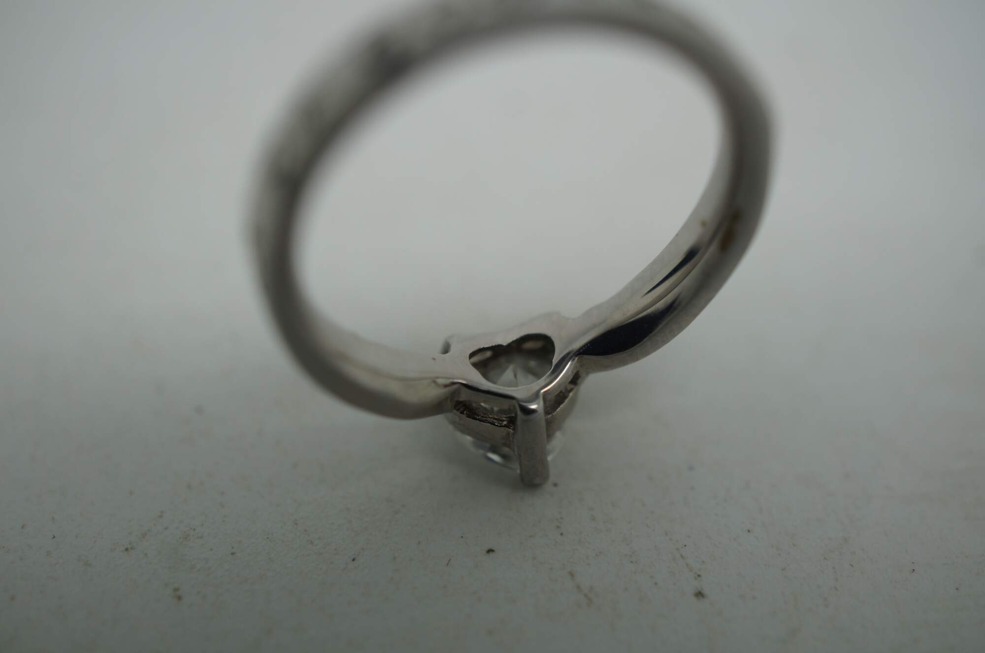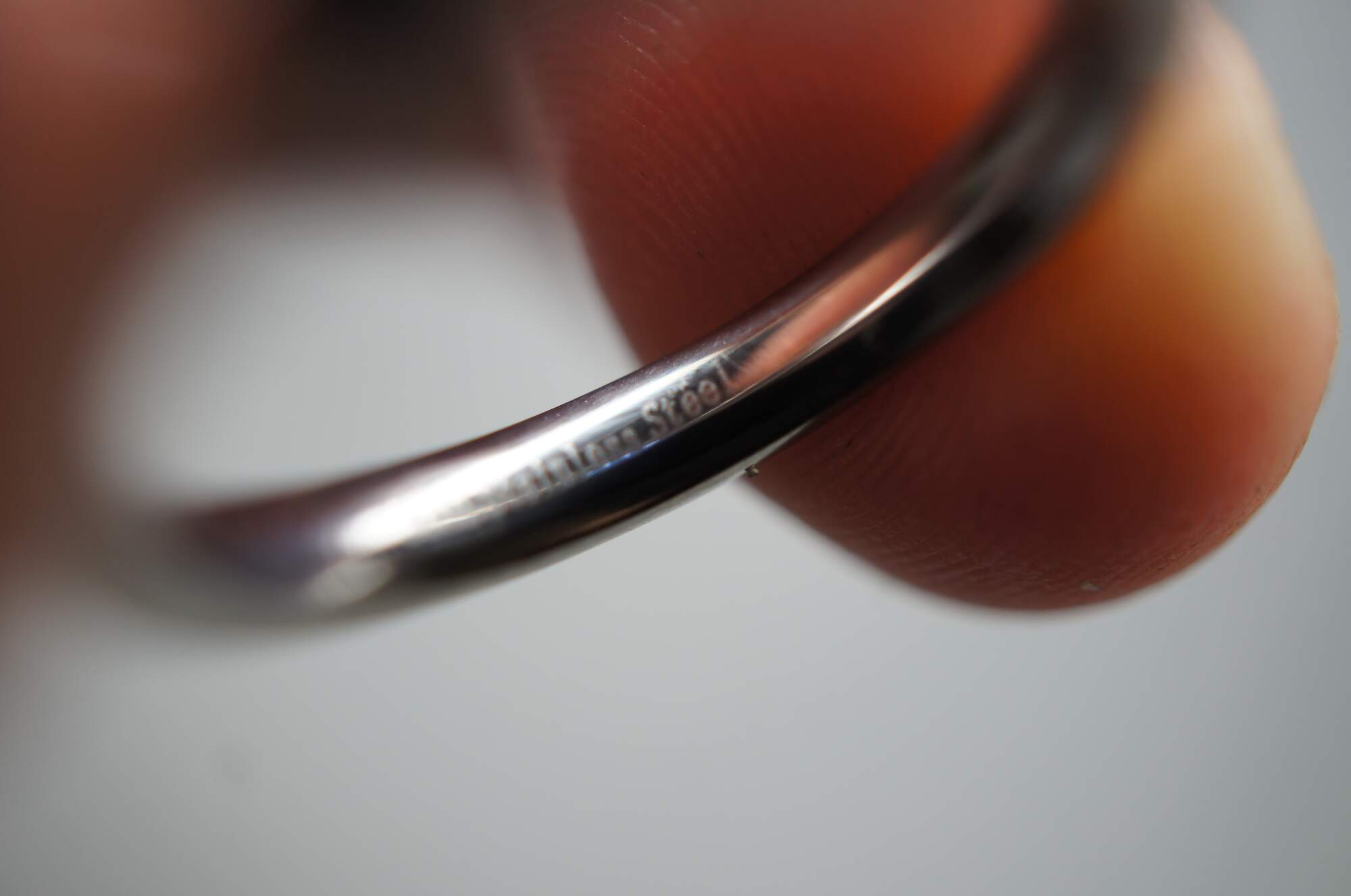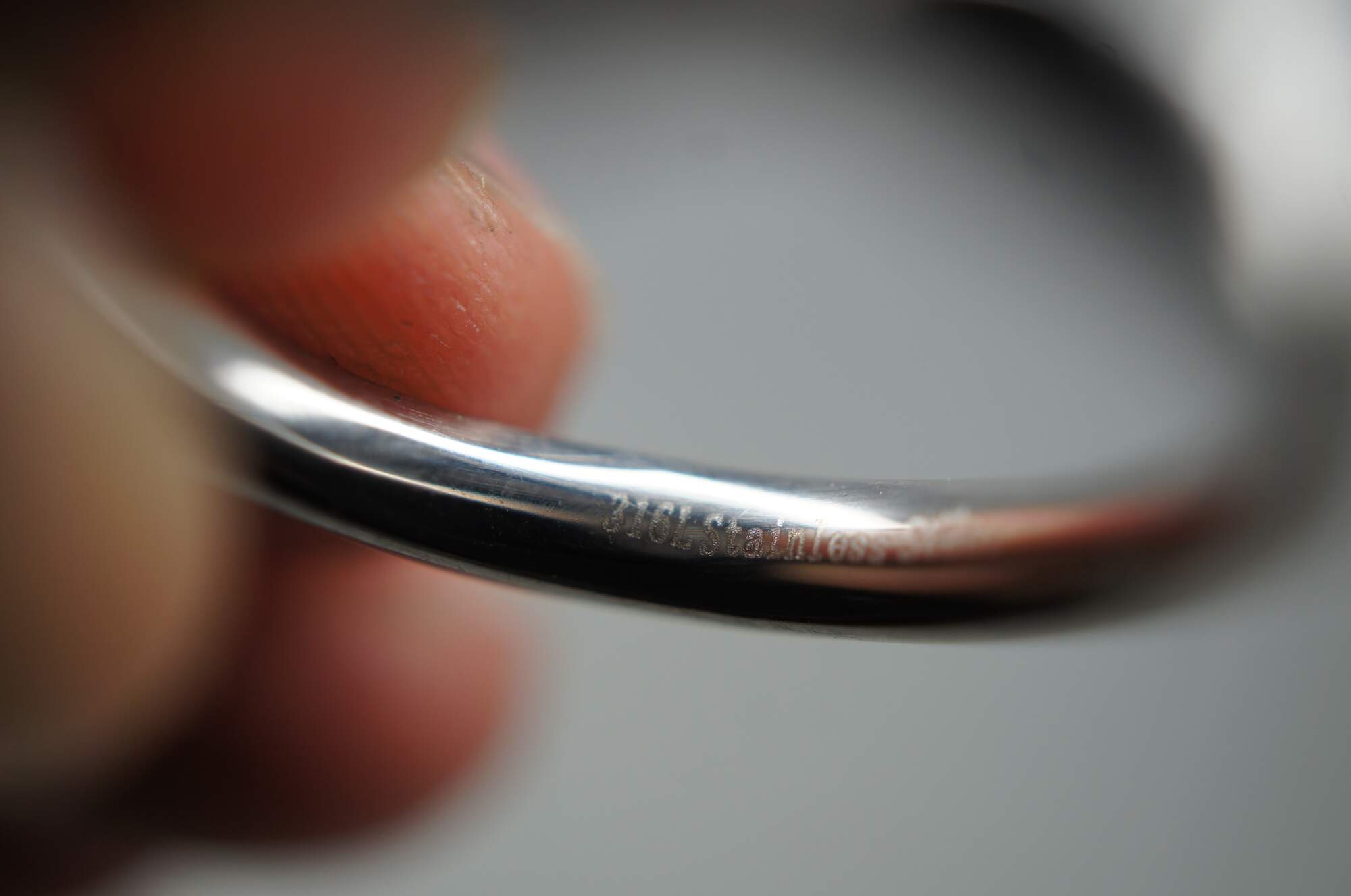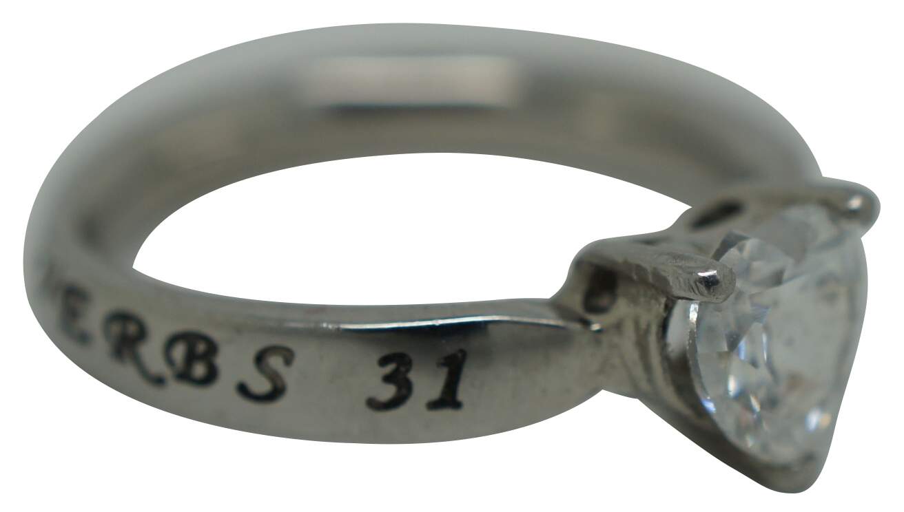 Barely worn stainless steel ring with heart shaped white cubic zirconium and the phrase “Woman of God Proverbs 31” engraved around the band, a reference to a passage of the Christian Bible.