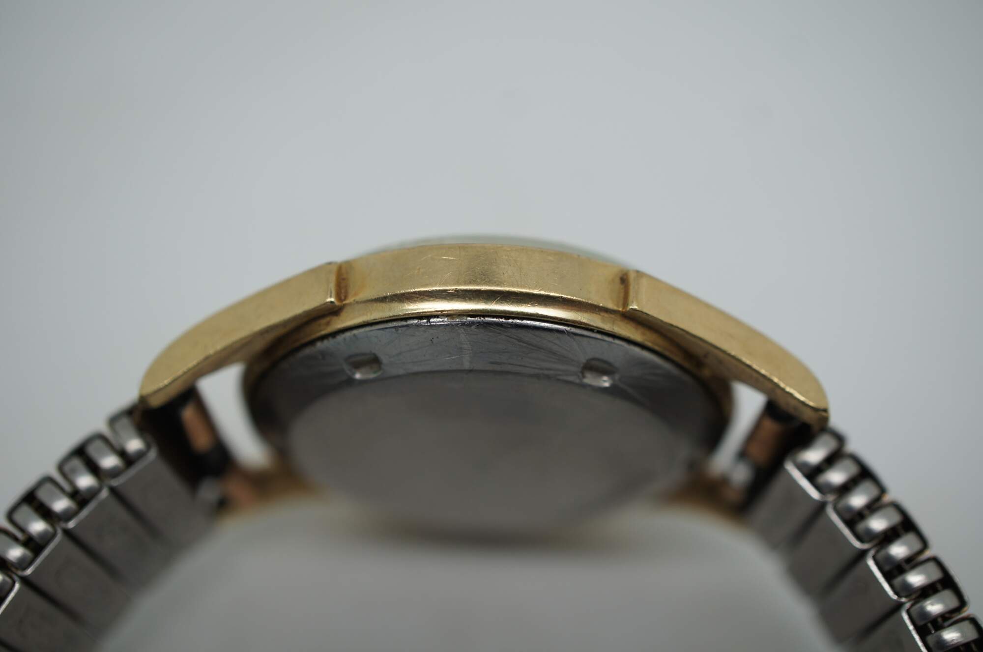 Vintage mid century Tissot Automatic wrist watch with 10k gold filled bezel and stainless back, with a Fixoflex expansion band.