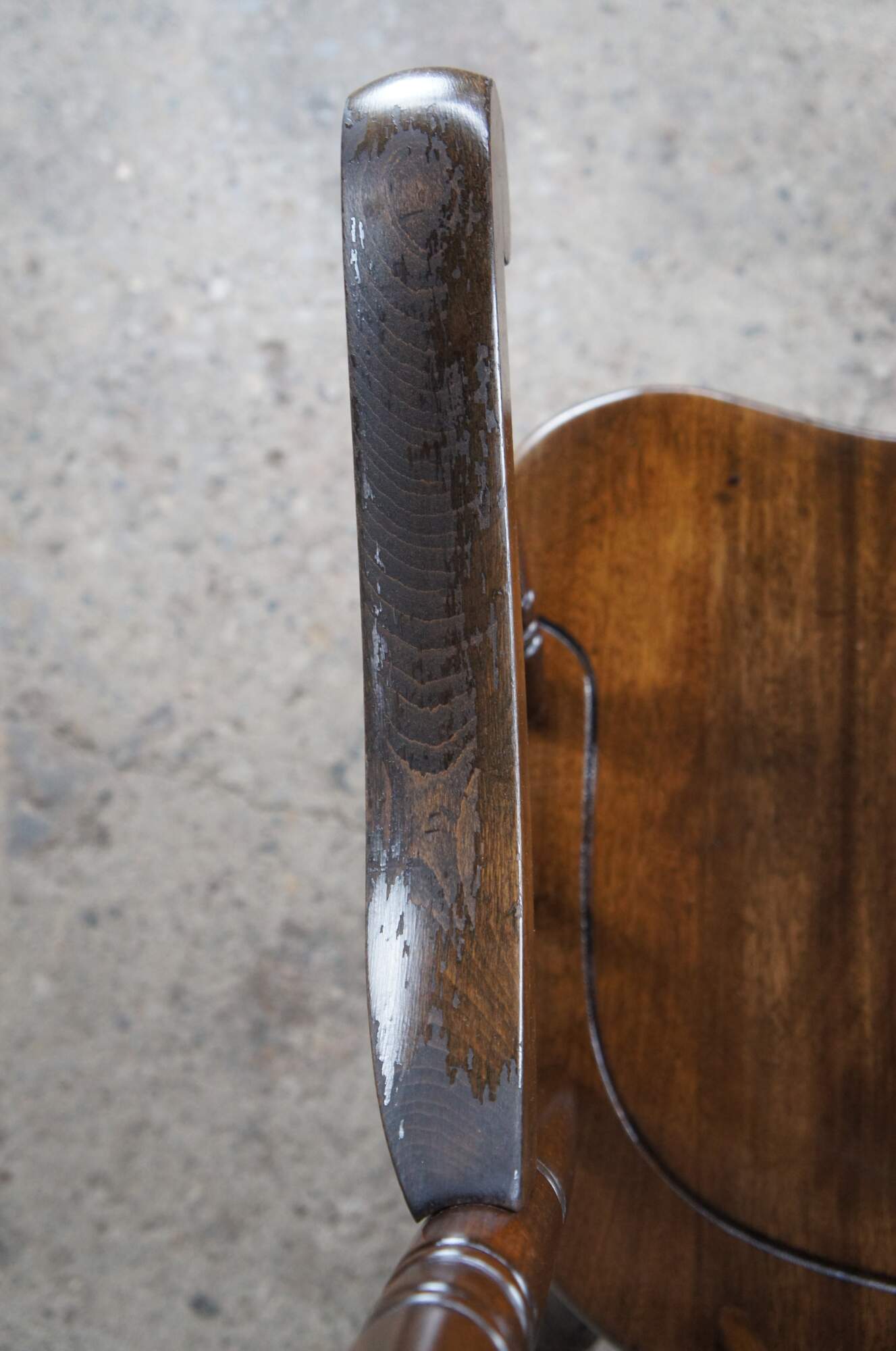 Vintage Windsor style Hitchcock inspire oversized rocking chair, circa mid 20th century. Made from maple with a stenciled crest, spindle back, contoured seat and scrolled arms.