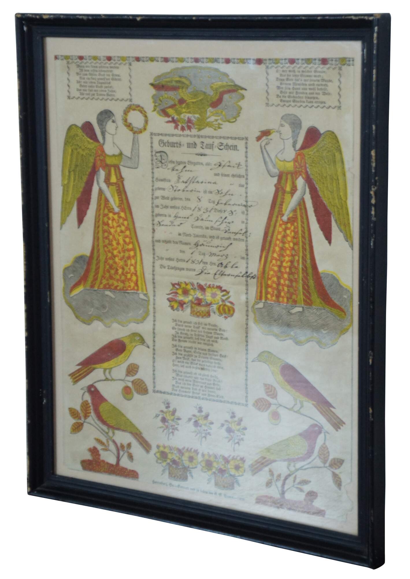 Antique German / “Pennsylvania Dutch” Birth and Baptismal Certificate lithograph with color block printing in red and yellow, printed in 1830 and signed in 1831.
