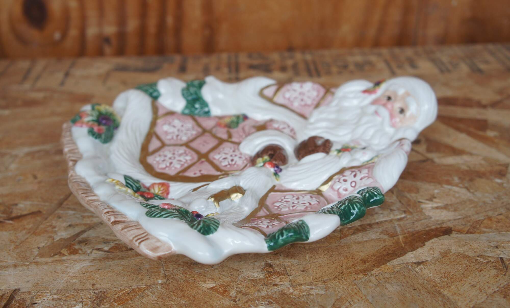 2 vintage 1996 Christmas platters or plates by Fitz and Floyd featuring Santa and rabbits.