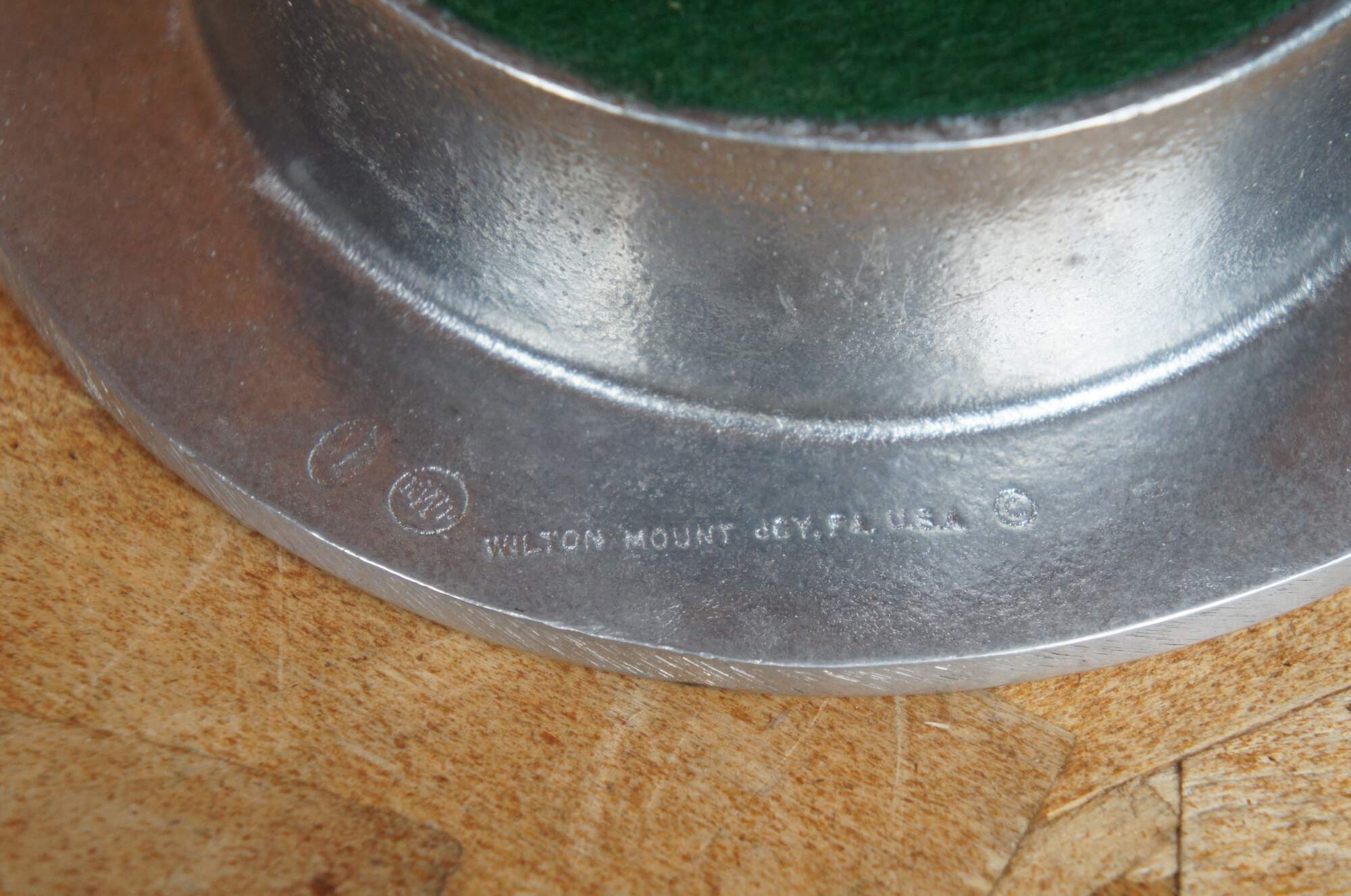 Metal wine coaster with cork insert by Wilton Armetale with the phrase “A dinner without wine is like a day without sunshine”.