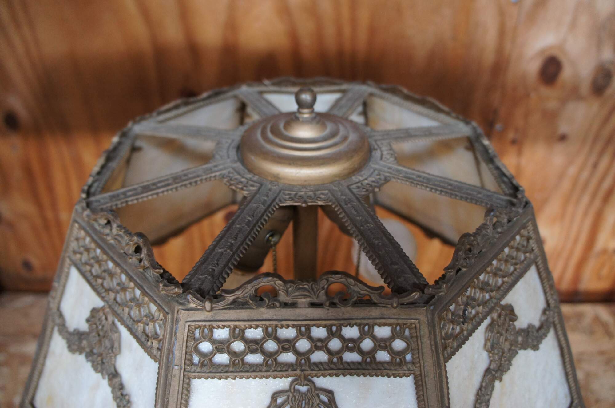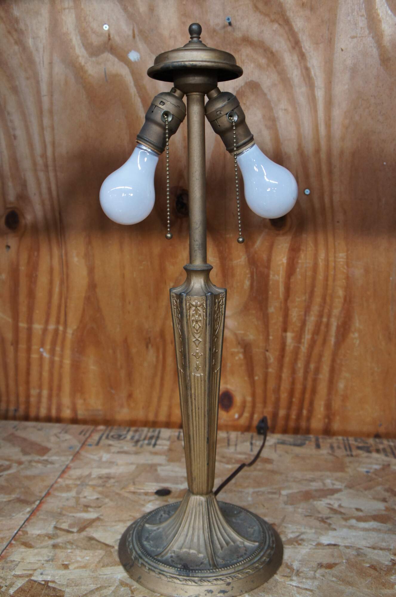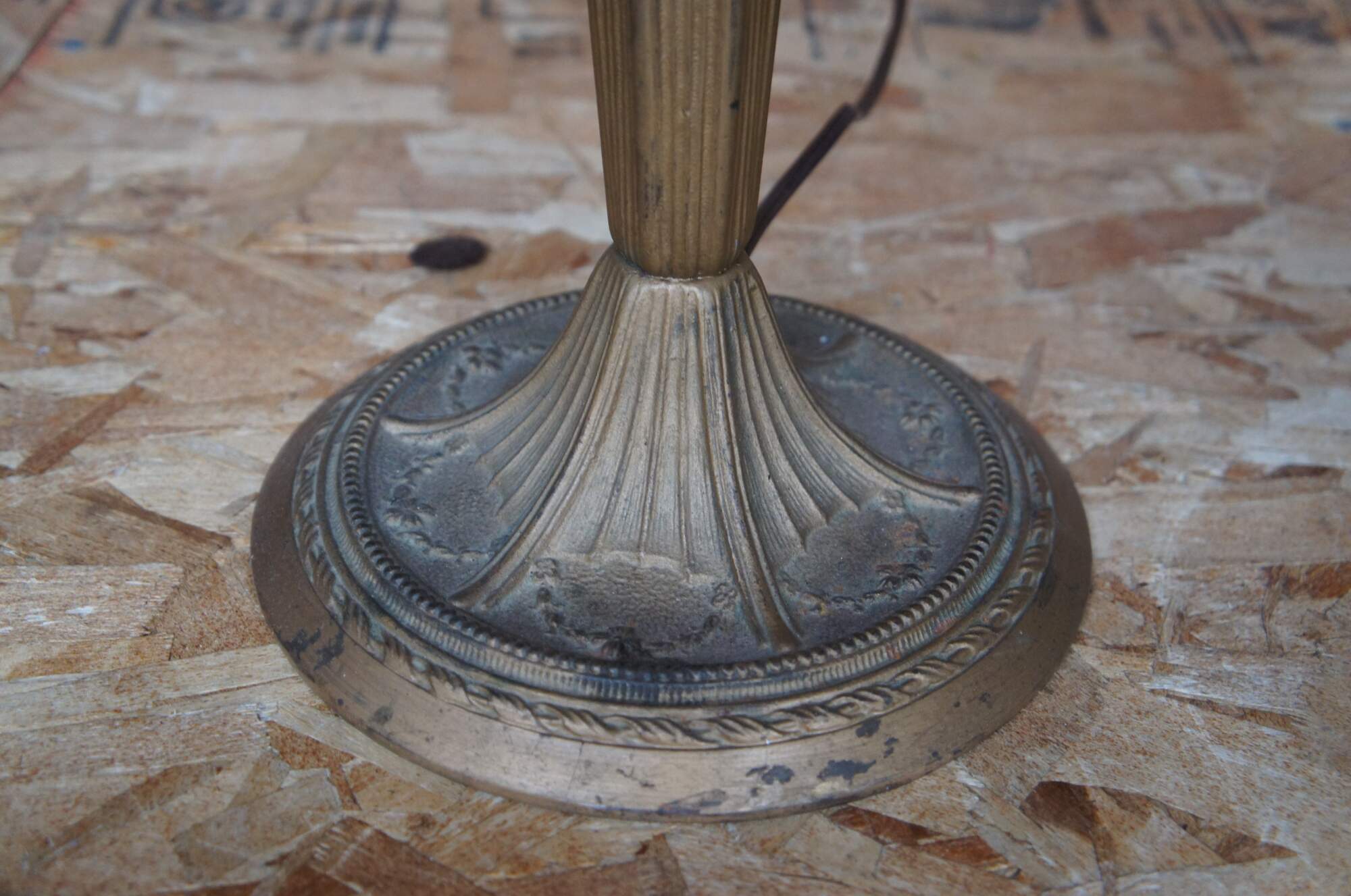 Antique Victorian cast iron library, desk or parlor lamp featuring slag glass filigree / reticulated shade and neoclassical styling.