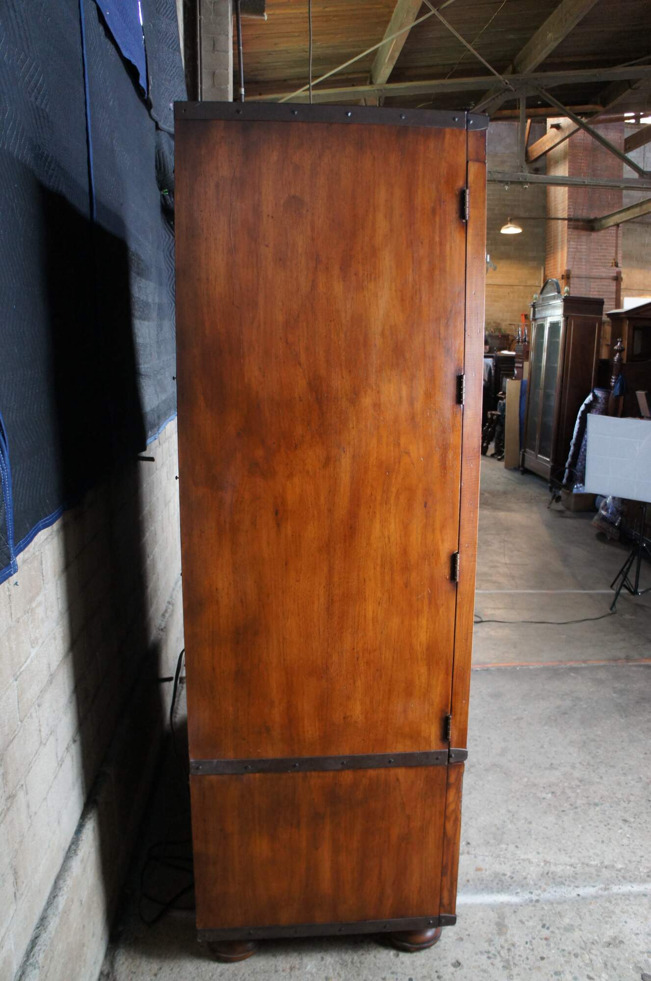 Henredon for Ralph Lauren 1301-05 Sheltering Sky armoire. Made from oak with a British Colonial / West Indies inspired paneled front and old world hardware. Features bi hinge doors, two large drawers and bun feet. Great for use as a linen press, tv / music / entertainment cabinet or wardrobe.
