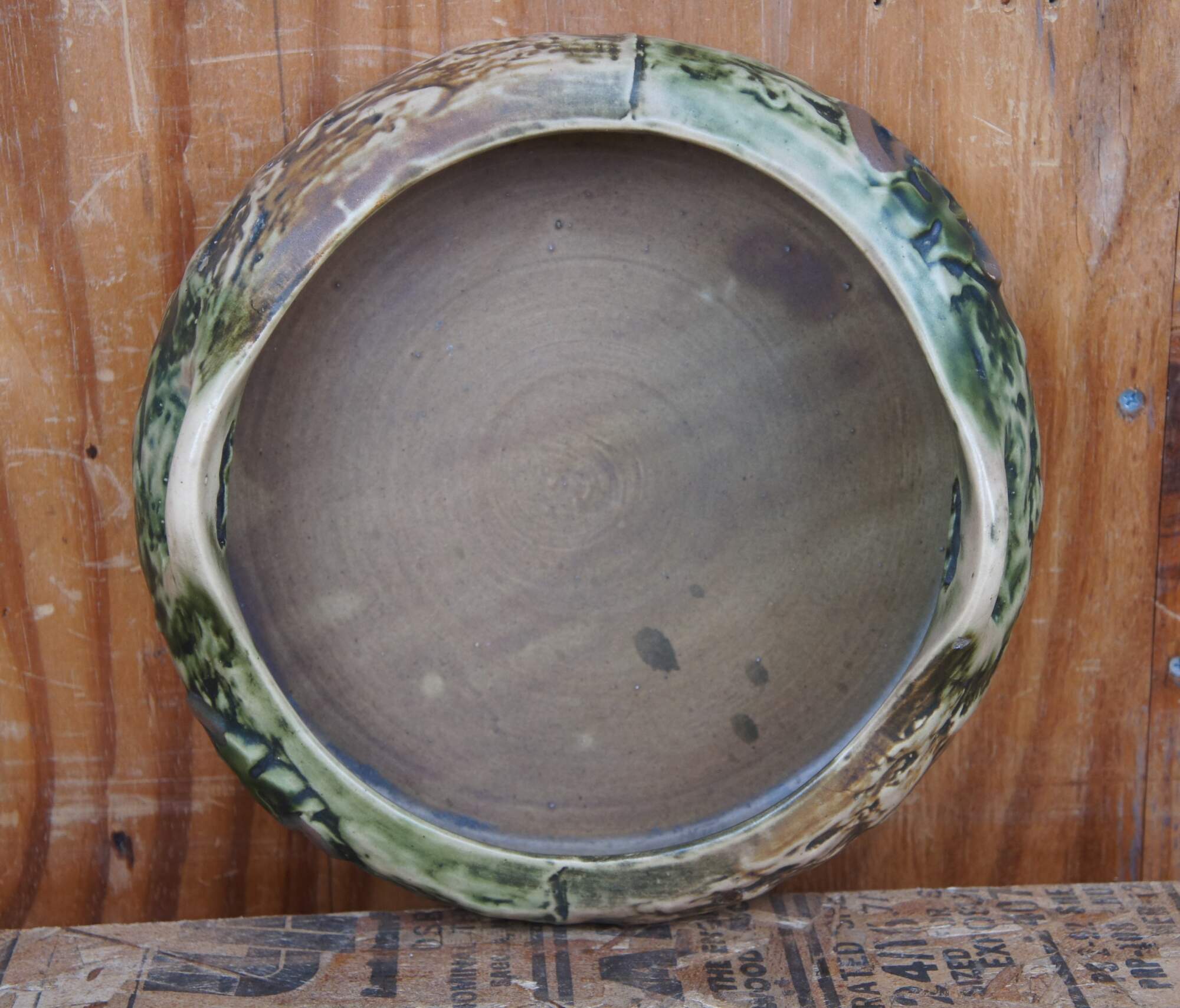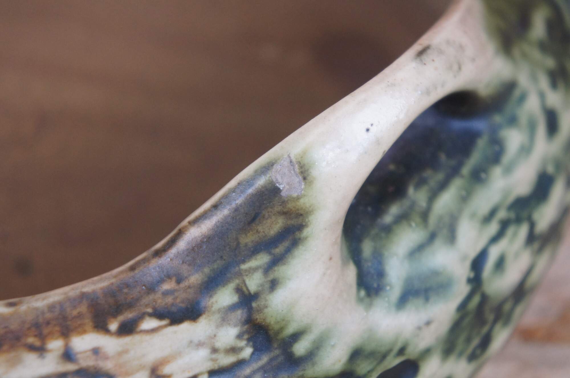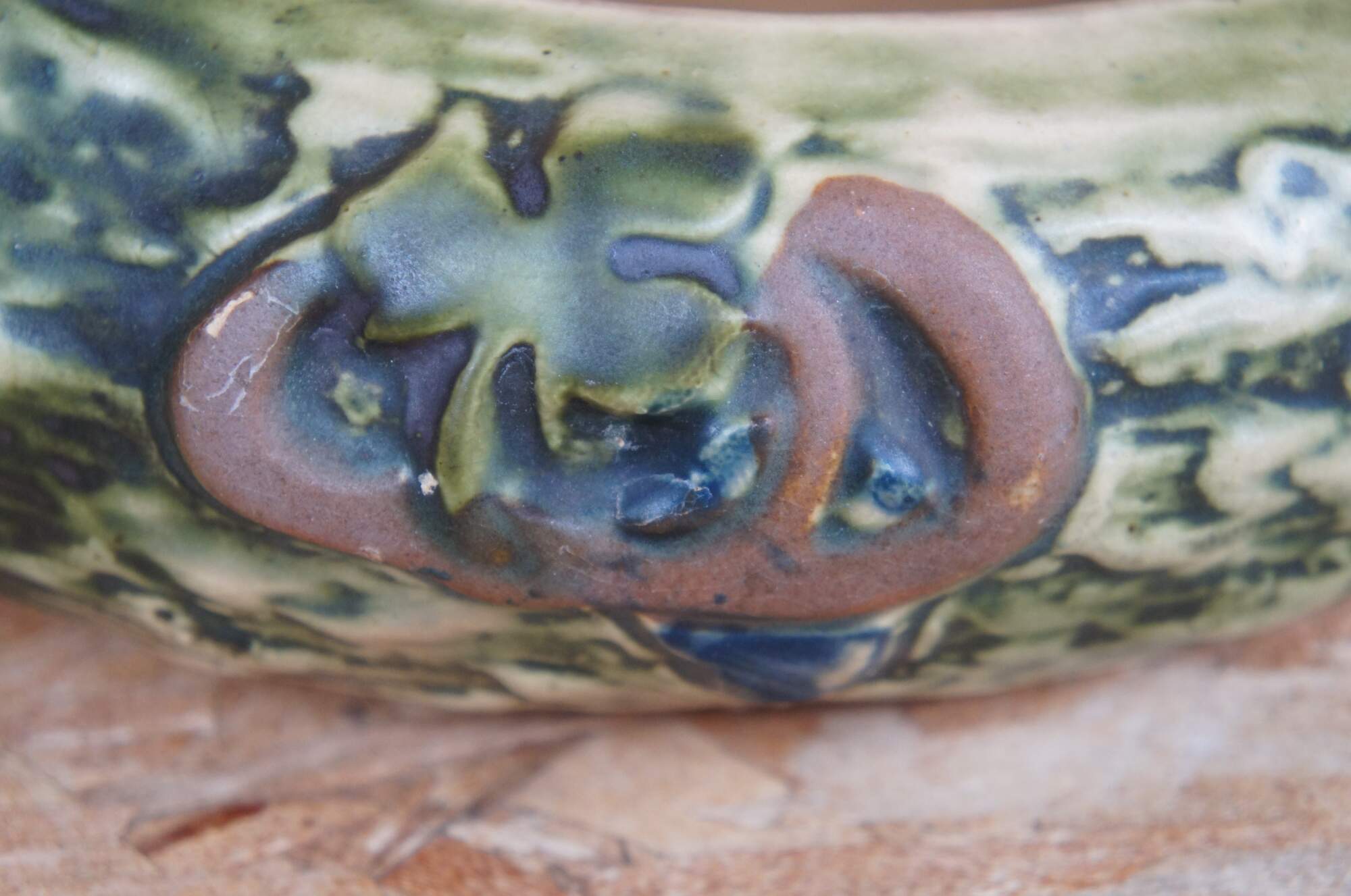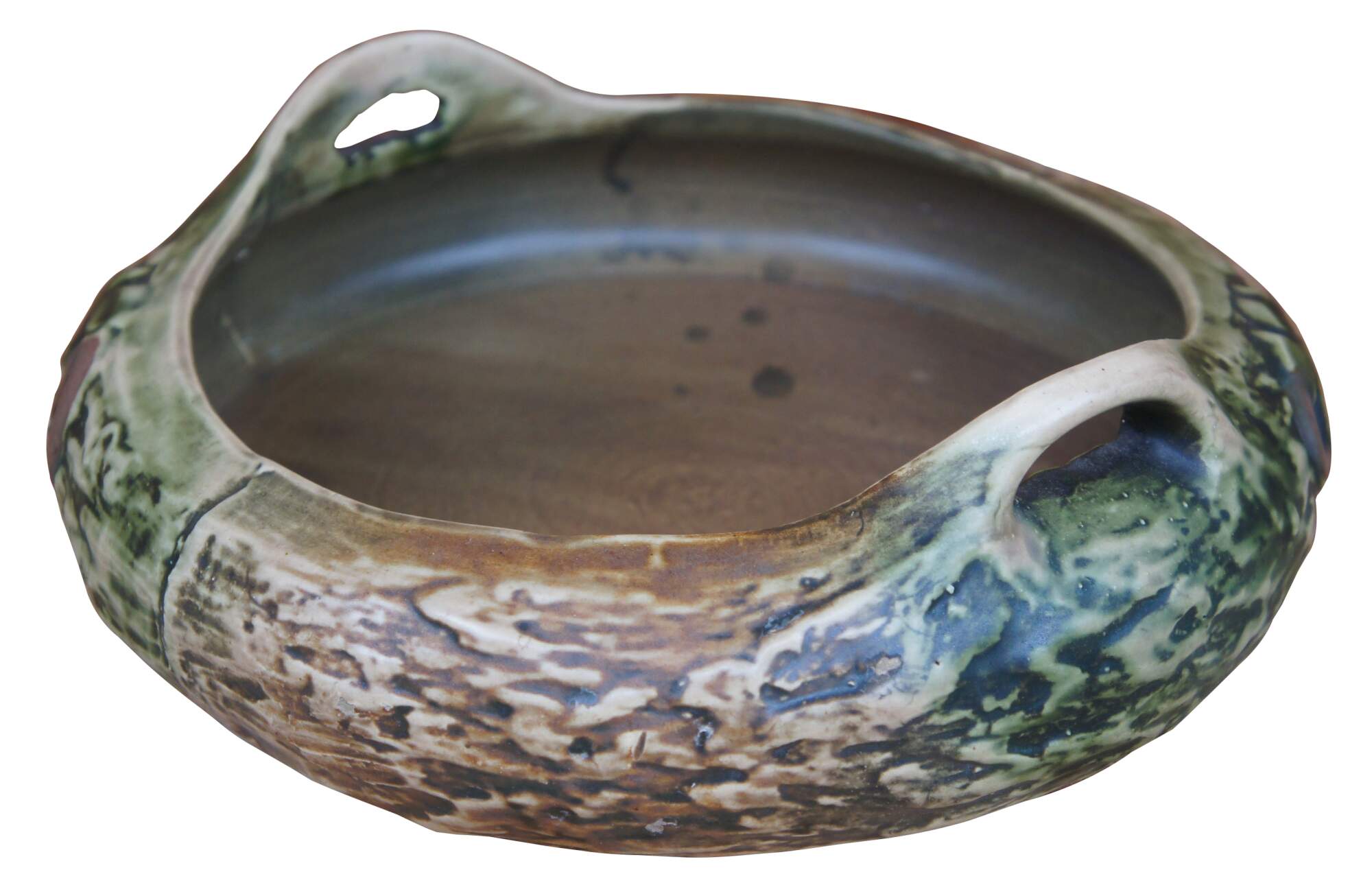 Antique Victorian Roseville art pottery low imperial florentine console bowl, planter or handled basket.