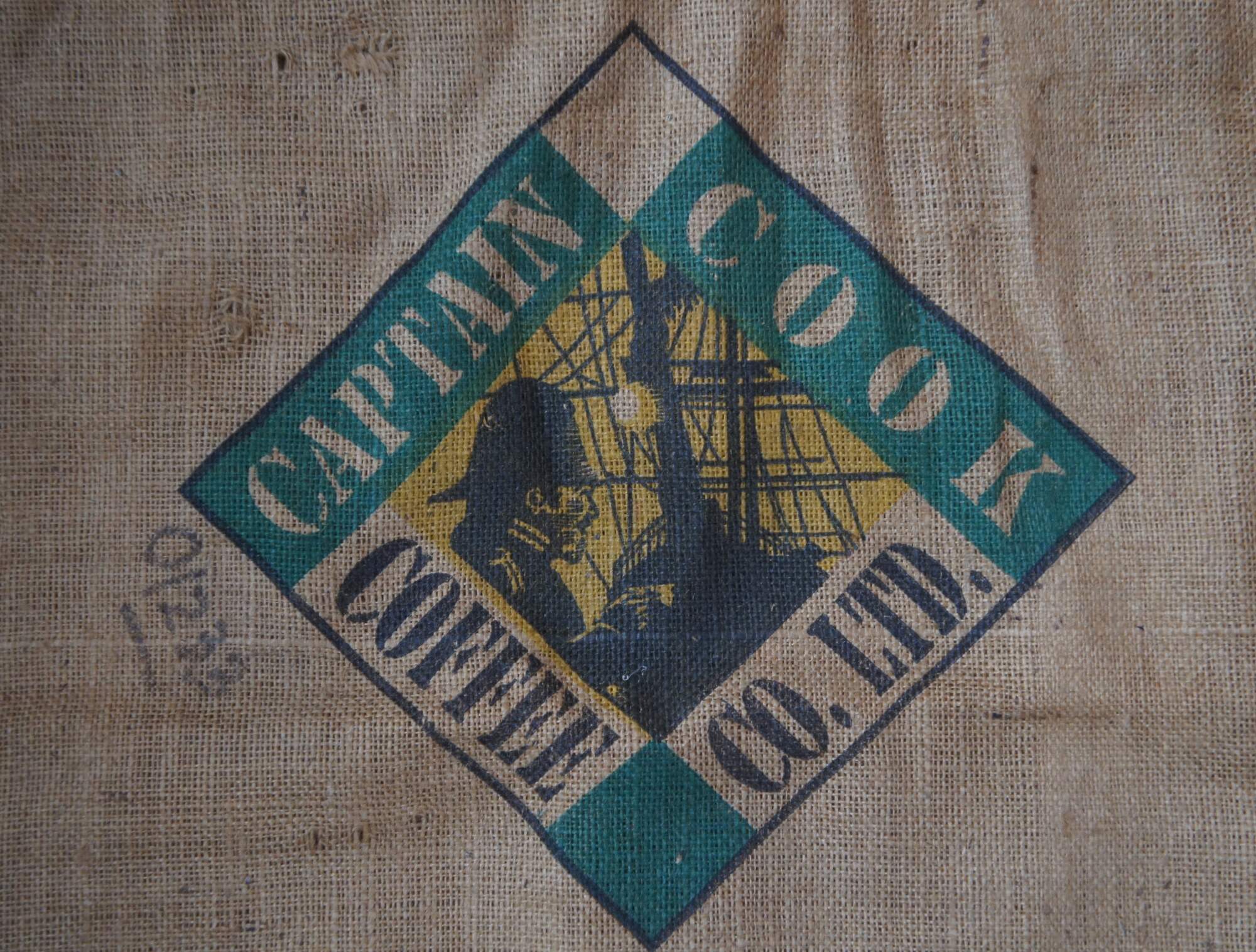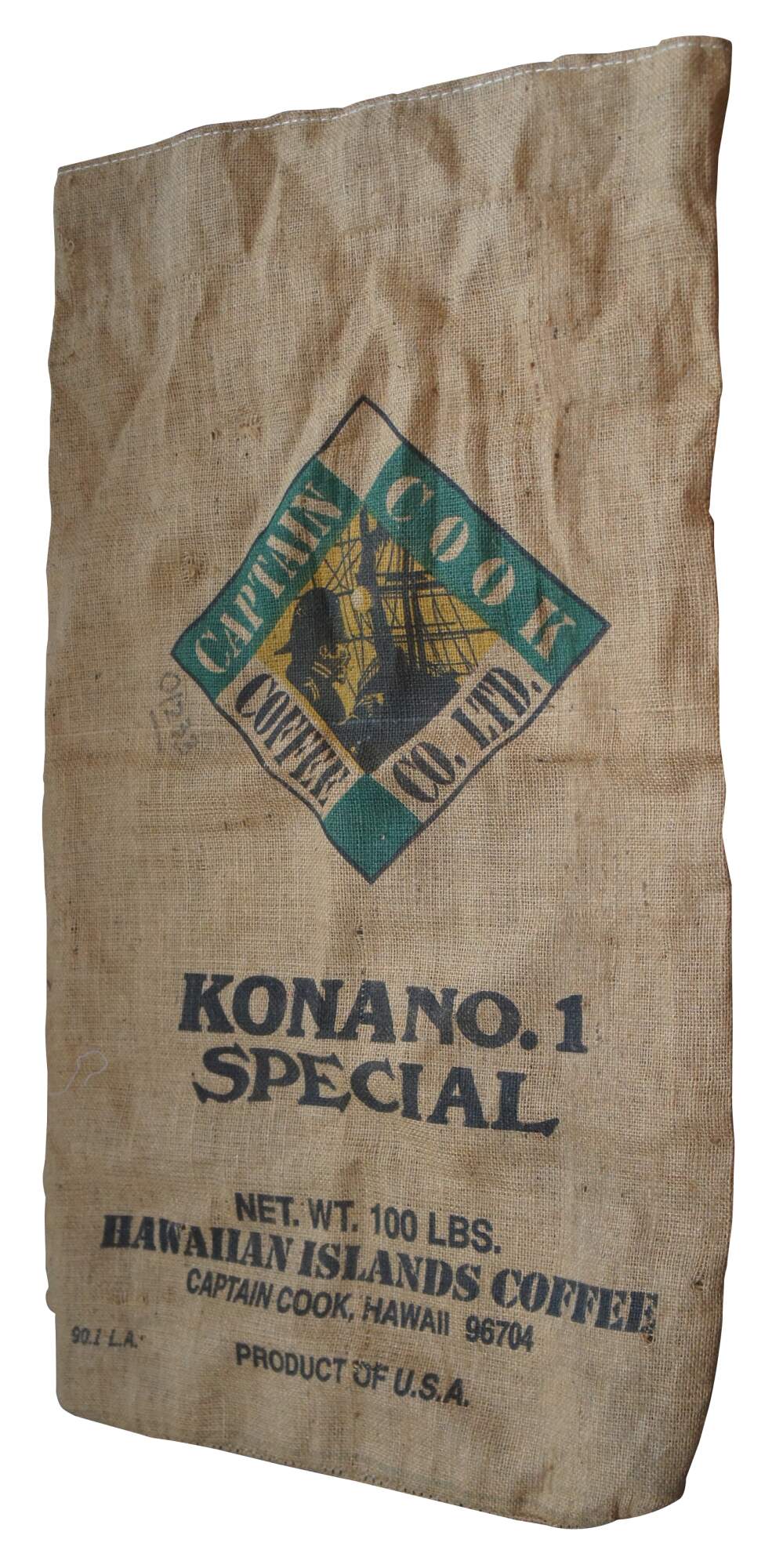 Vintage Captain Cook Kona No 1 special coffee 100 lb bean burlap sack.