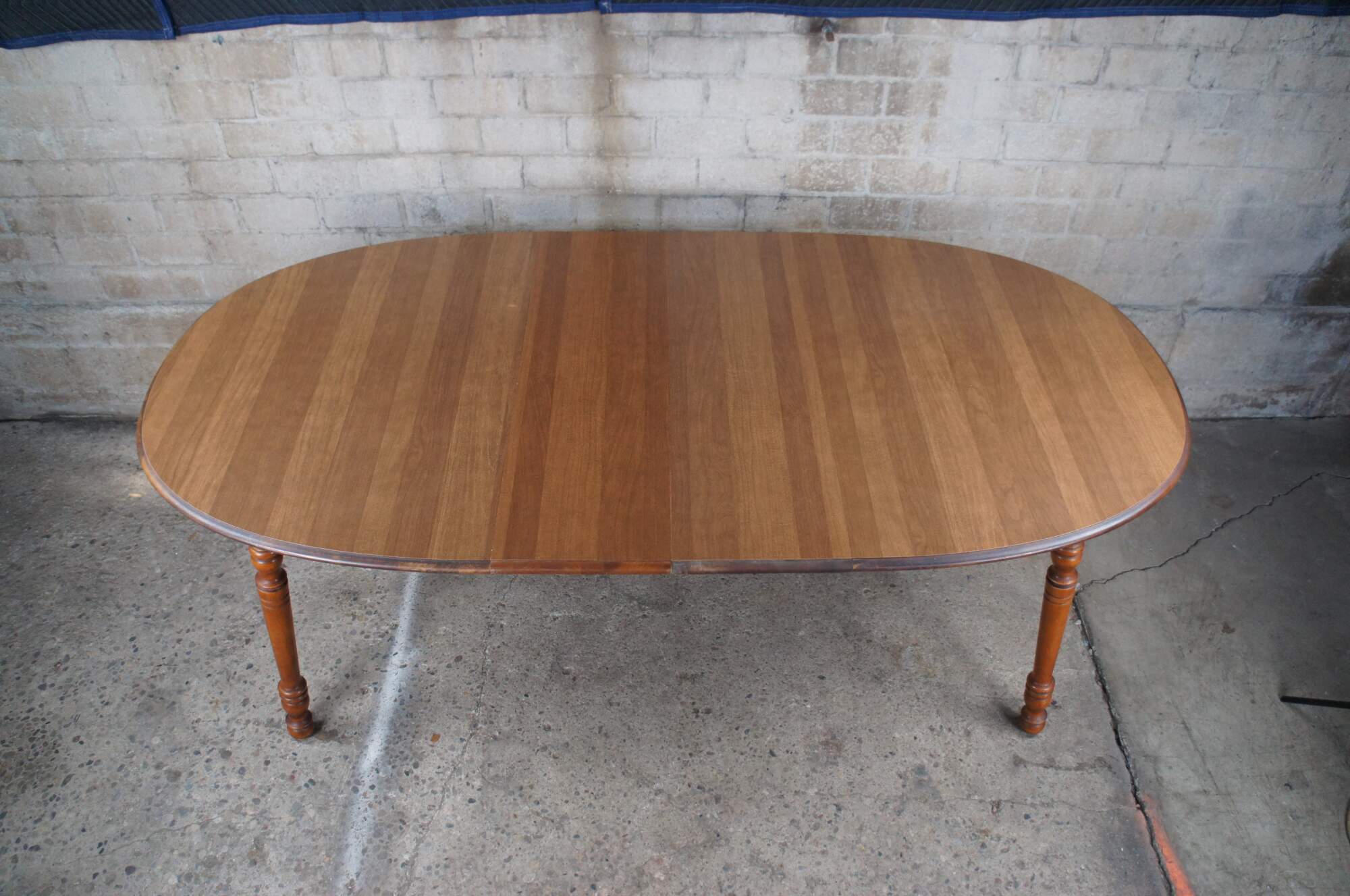 Tell City Chair Company Hard Rock Maple Dining Table, Circa 1960s. Features an oval form with colonial styling and two leaves for extension.