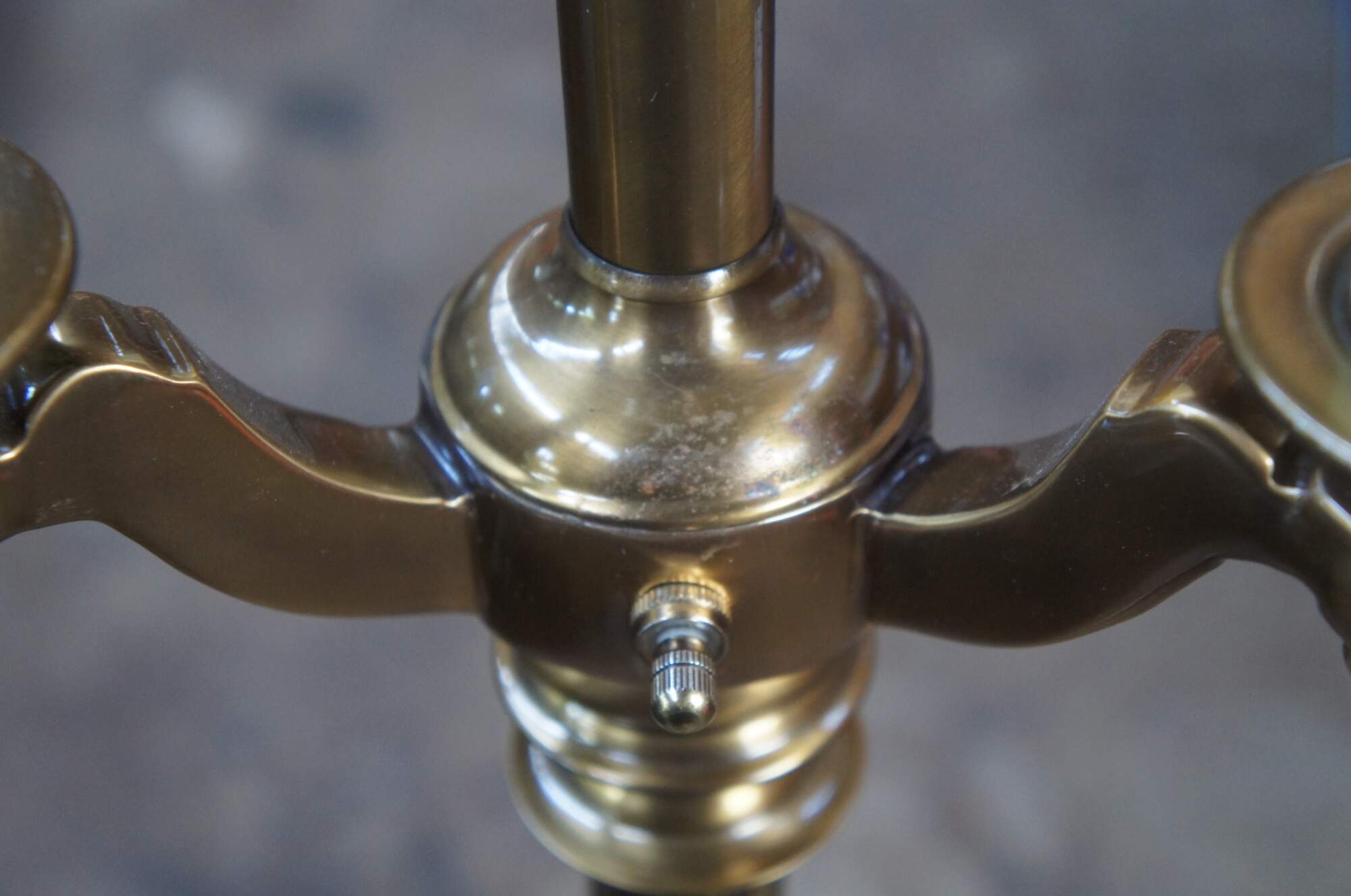 Vintage Stiffel mogul candelabra floor lamp in brass fiish with three torchiere style candlstick lights and a central light with cream Stiffel shade.