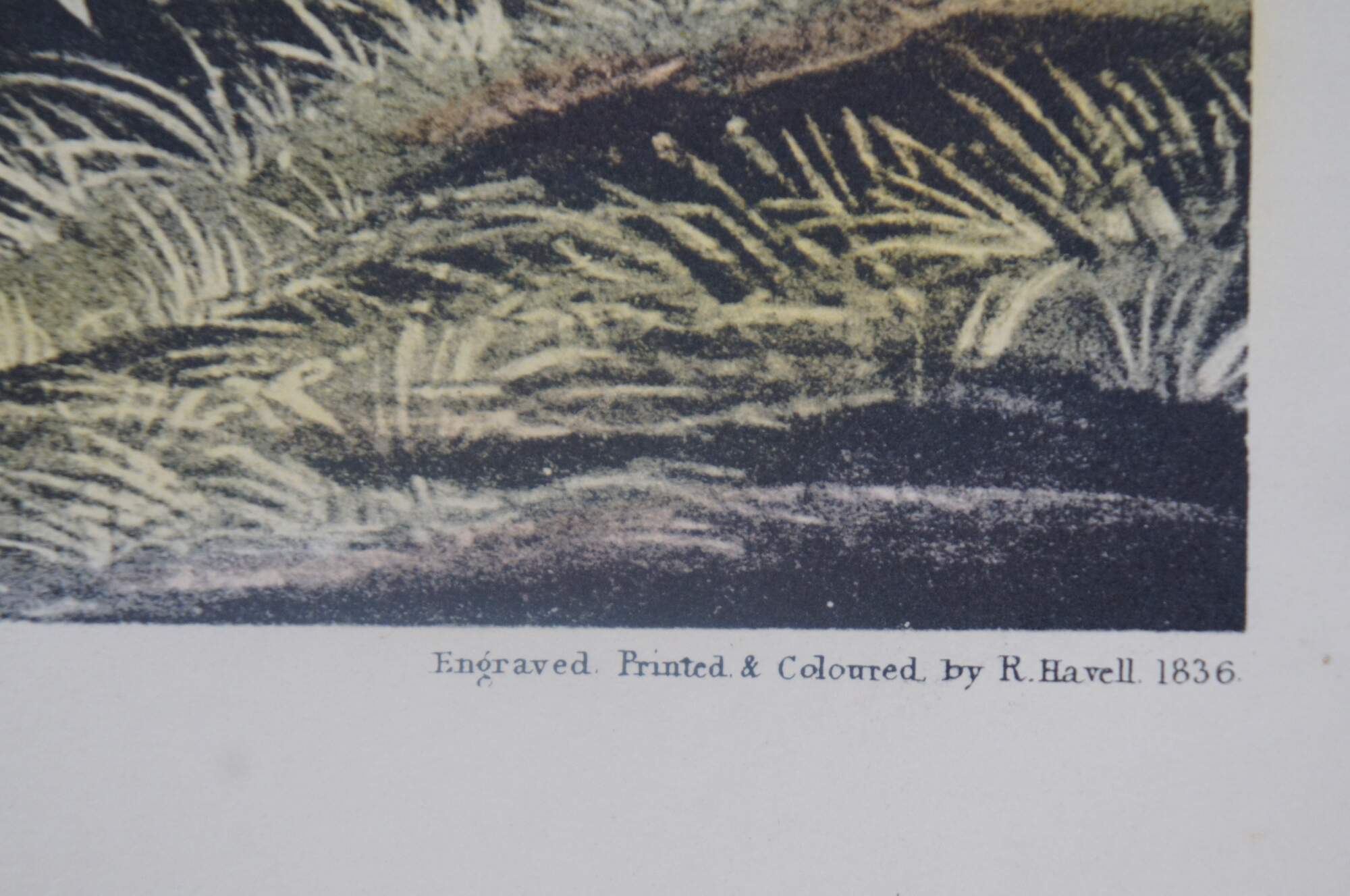 Unable to find a publisher in Philadelphia for his proposed book of bird drawings, Audubon traveled to England and Scotland in 1826 in search of support. Abroad, he met luminaries in the scientific community, including the botanist William Roscoe, who helped him exhibit his drawings in Manchester; the ornithologist William Swainson; the naturalist William MacGillivray, who later edited the text for The Birds of America; and William Home Lizars, an engraver in Edinburgh who, impressed by Audubon's work, agreed to print the massive folio. However, when Lizars was only able to complete the first ten plates, Audubon approached the established London engraver Robert Havell, who together with his son Robert, Jr., took up the project. Ultimately, The Birds of America was issued serially in five-plate sets, for a total of 435 plates, over the course of a decade.”