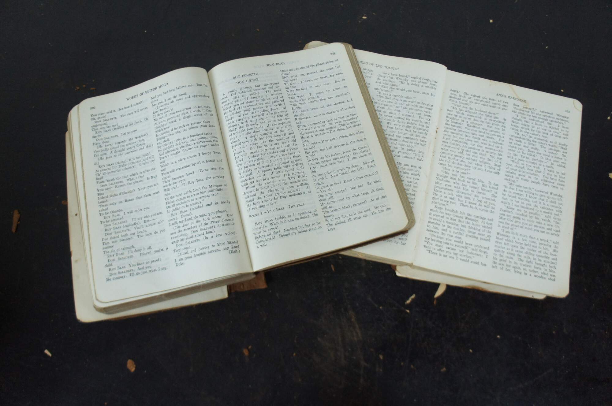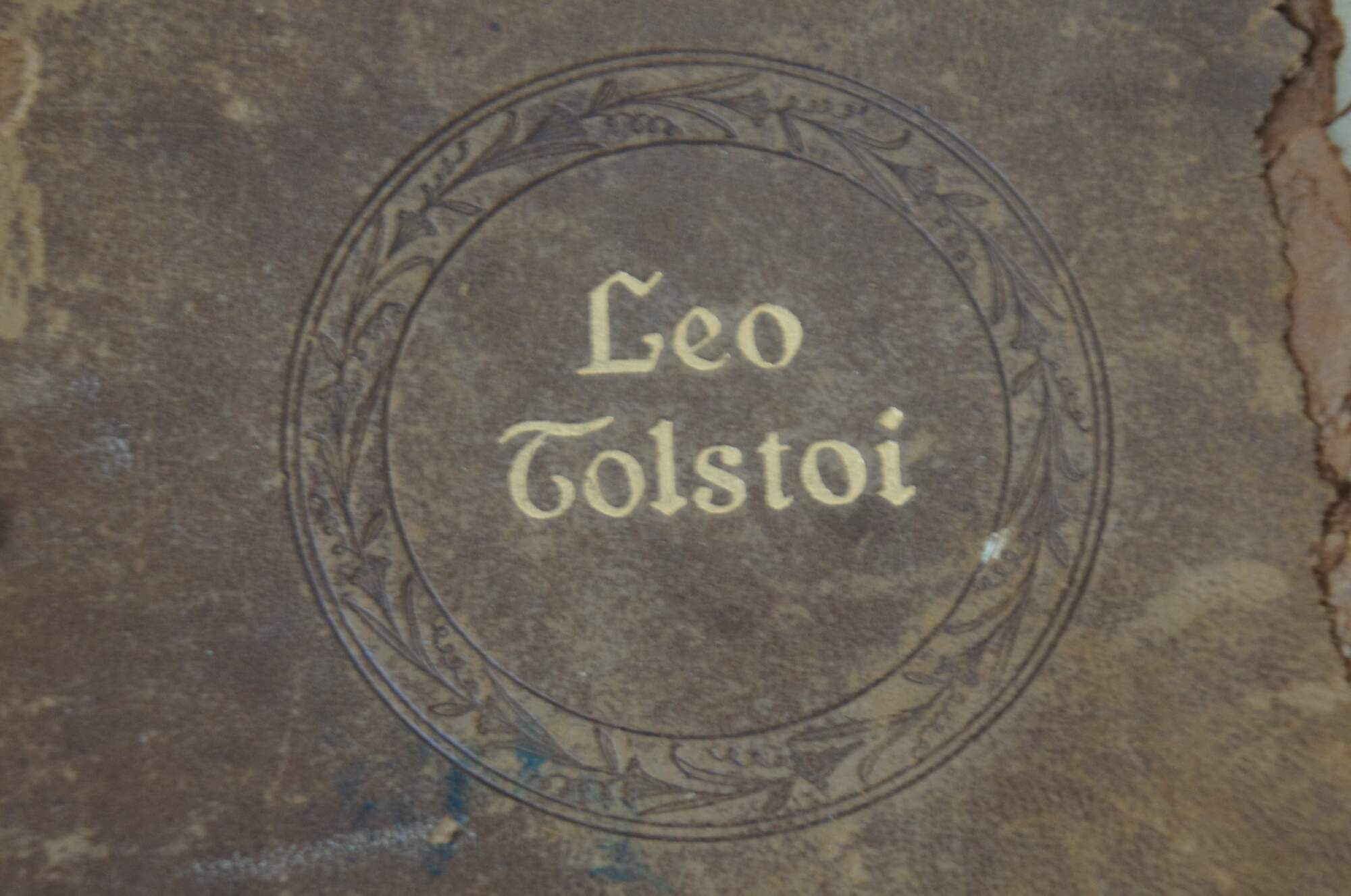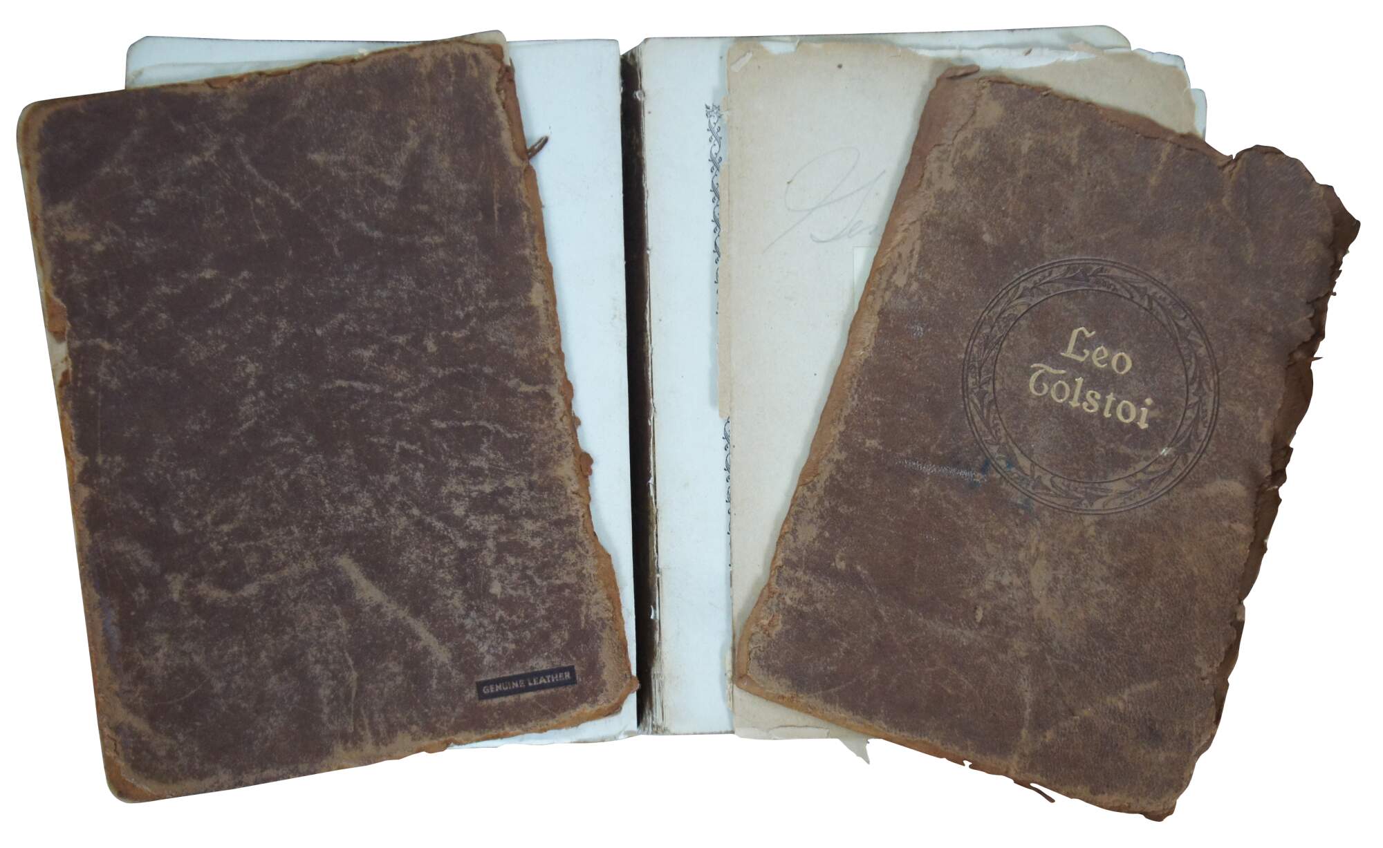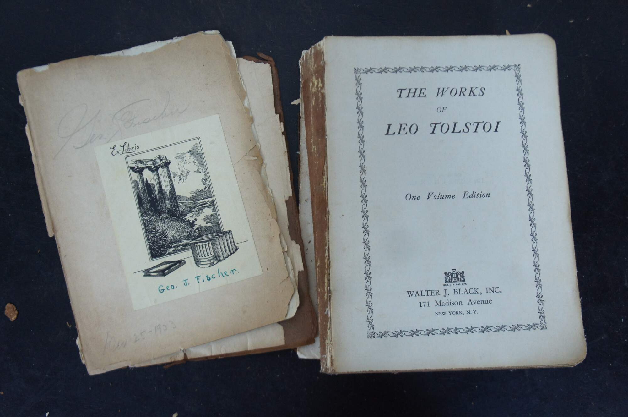 Fair Condition - Tolstoy cover falling apart, Hugo cover loose from spine, wear to leather, discoloration to page edges, interior pages good condition