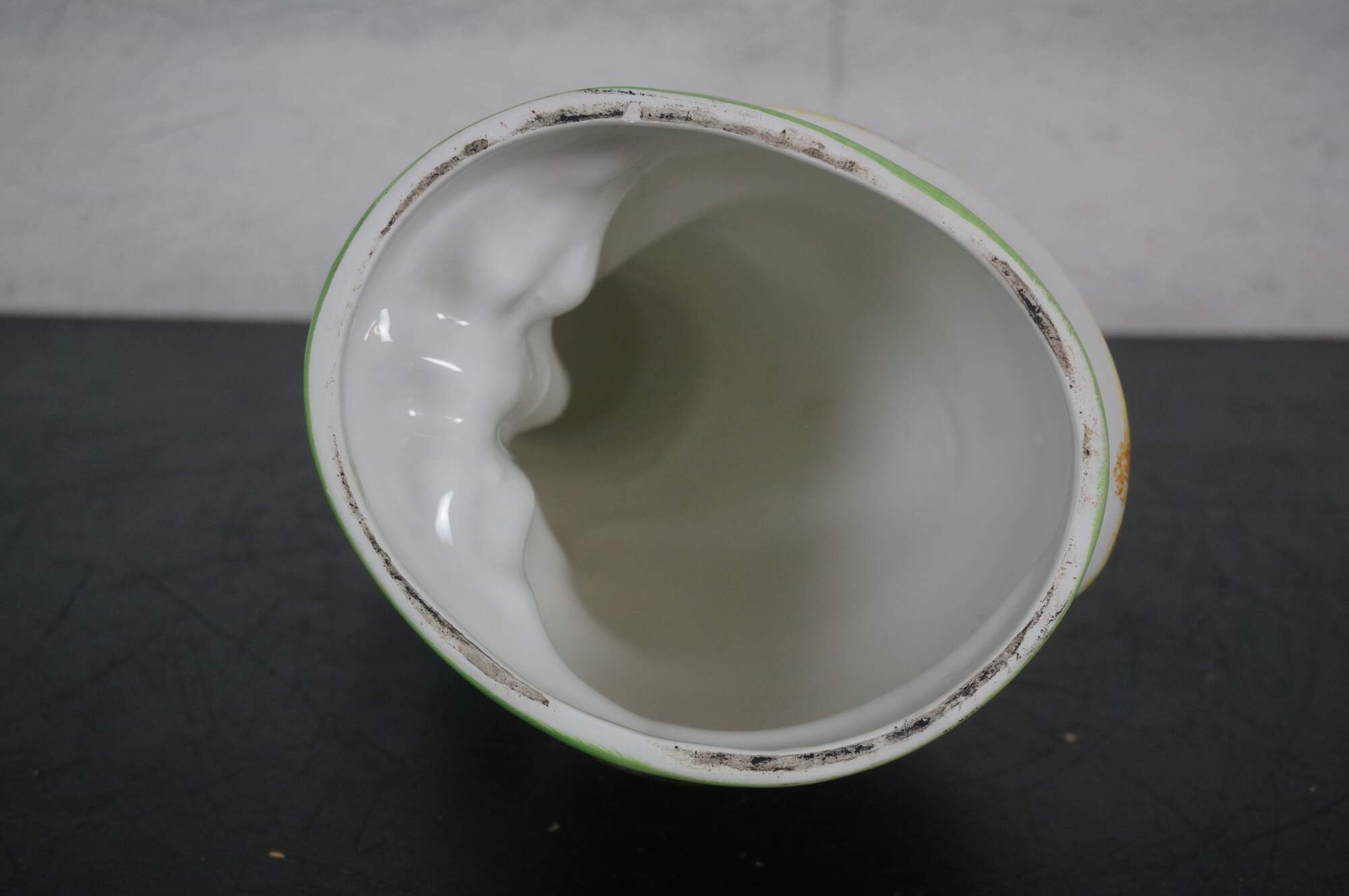 Vintage porcelain figurine of a Victorian calico cat wearing a blue bow, made in Italy for the Metropolitan Museum of Art / Shelburne Museum, a reproduction of an antique Staffordshire porcelain figurine.
