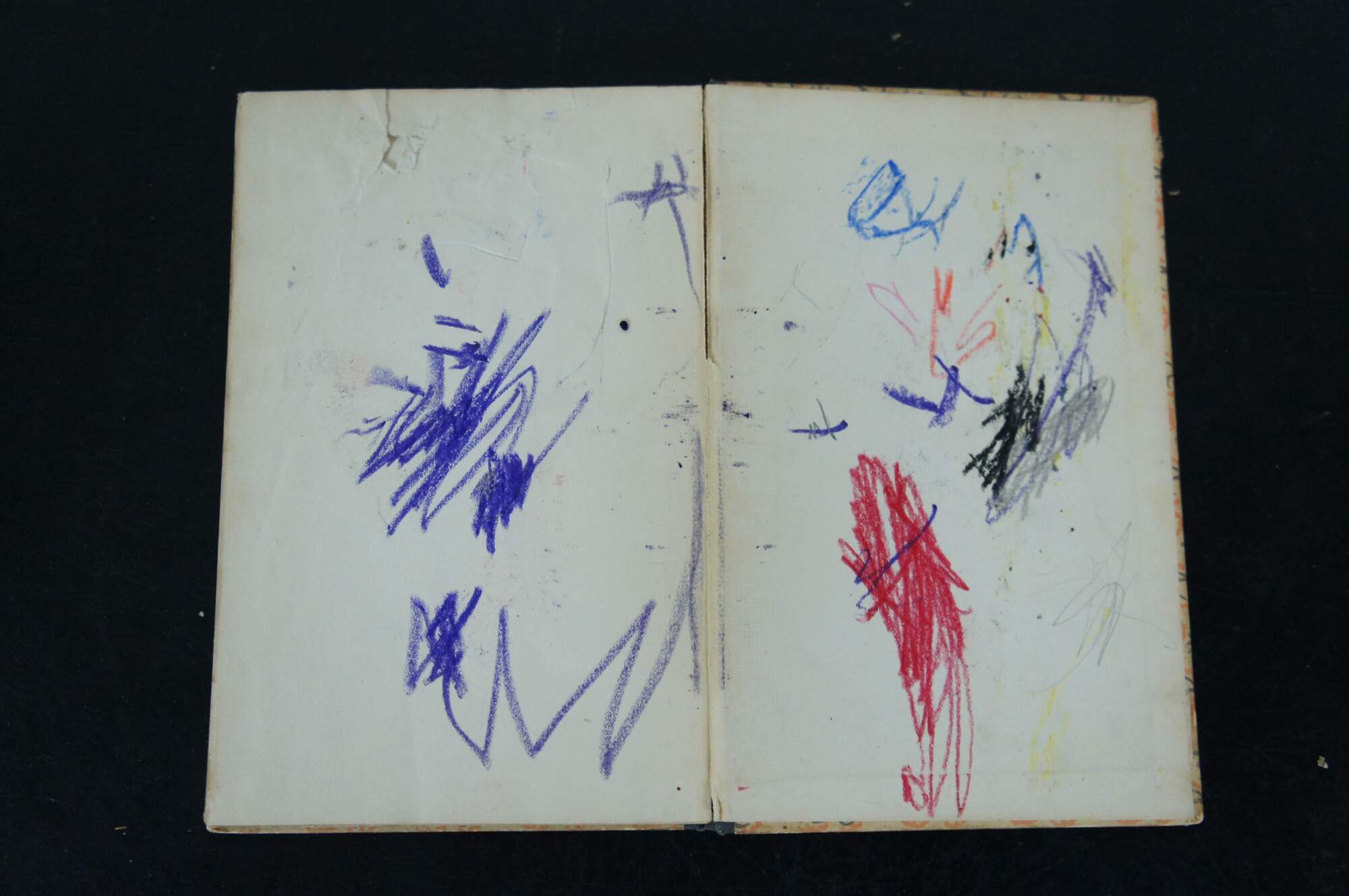 Fair Condition – Gentle wear/ discoloration to cover, crayon marks inside back cover, some torn pages at back, yellowing to page edges
