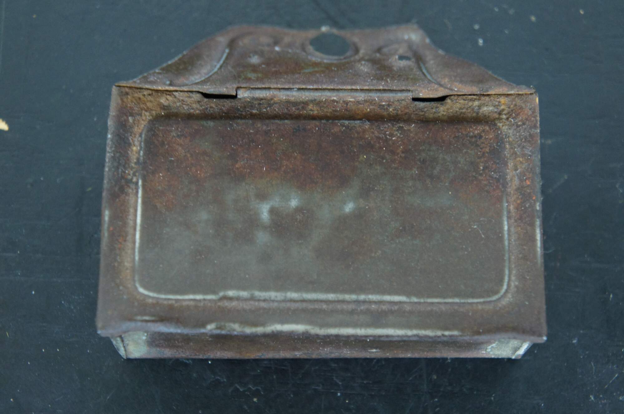 Antique folk art wall hanging match safe with simple scroll work accents.
