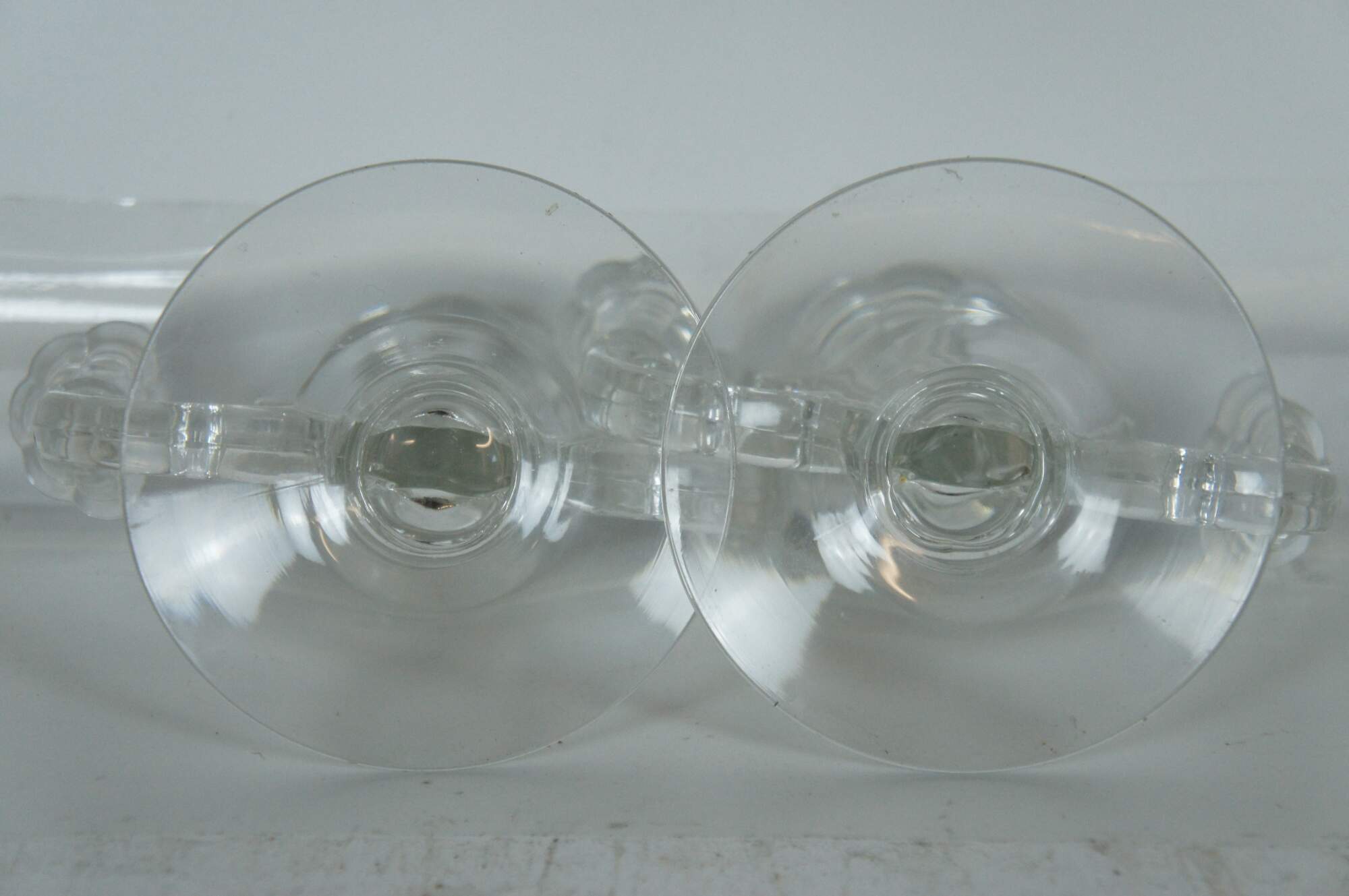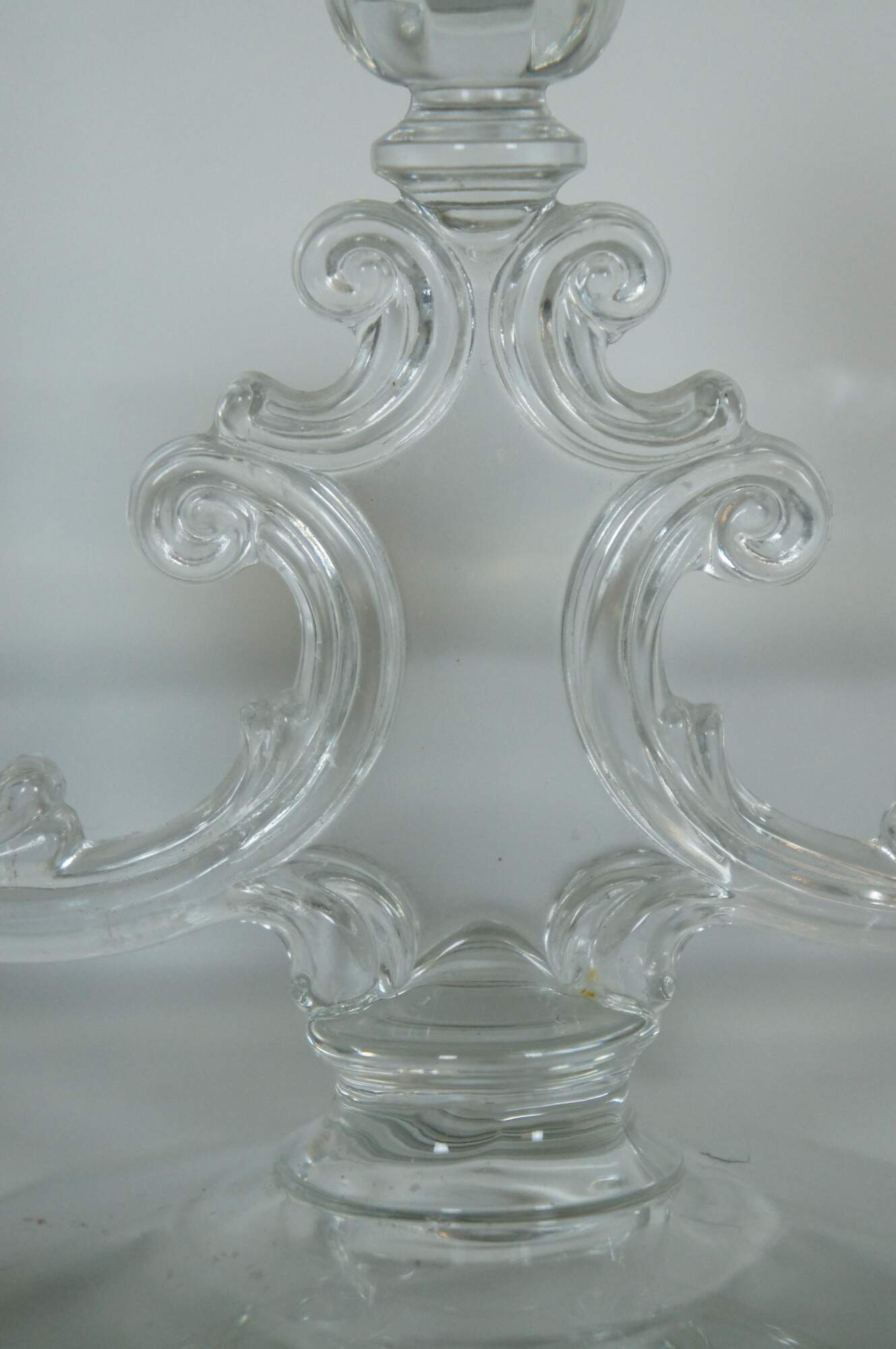 Pair of 1940’s Fostoria clear glass, Lafayette style triple light candle holders.