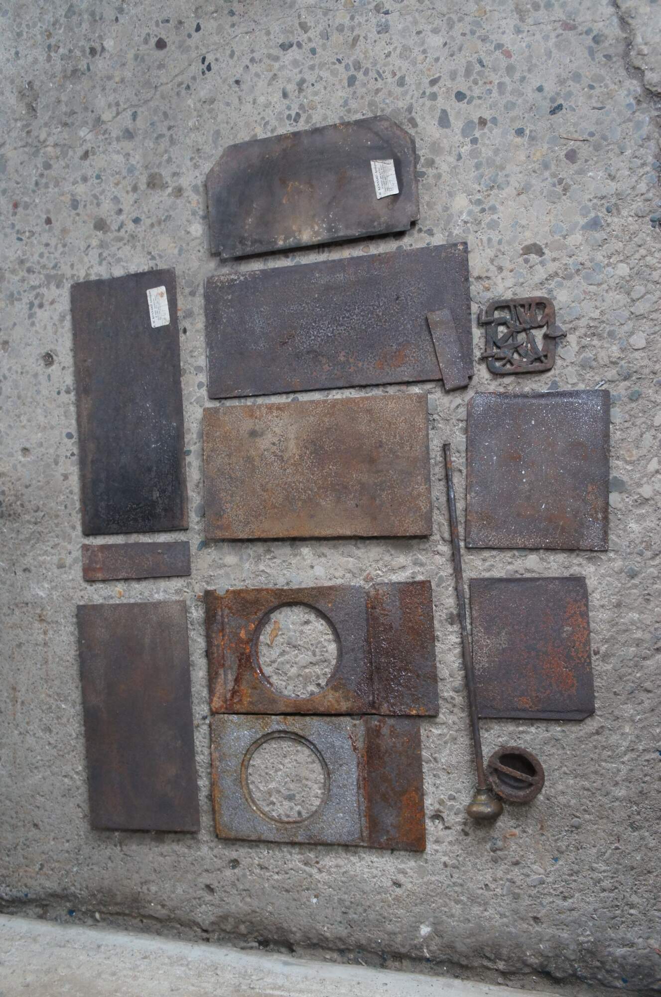Fair antique condition, wear and distressing commensurate with age and use, rust, oxidation, past repairs to slab, some missing pieces, will need install and assembly.