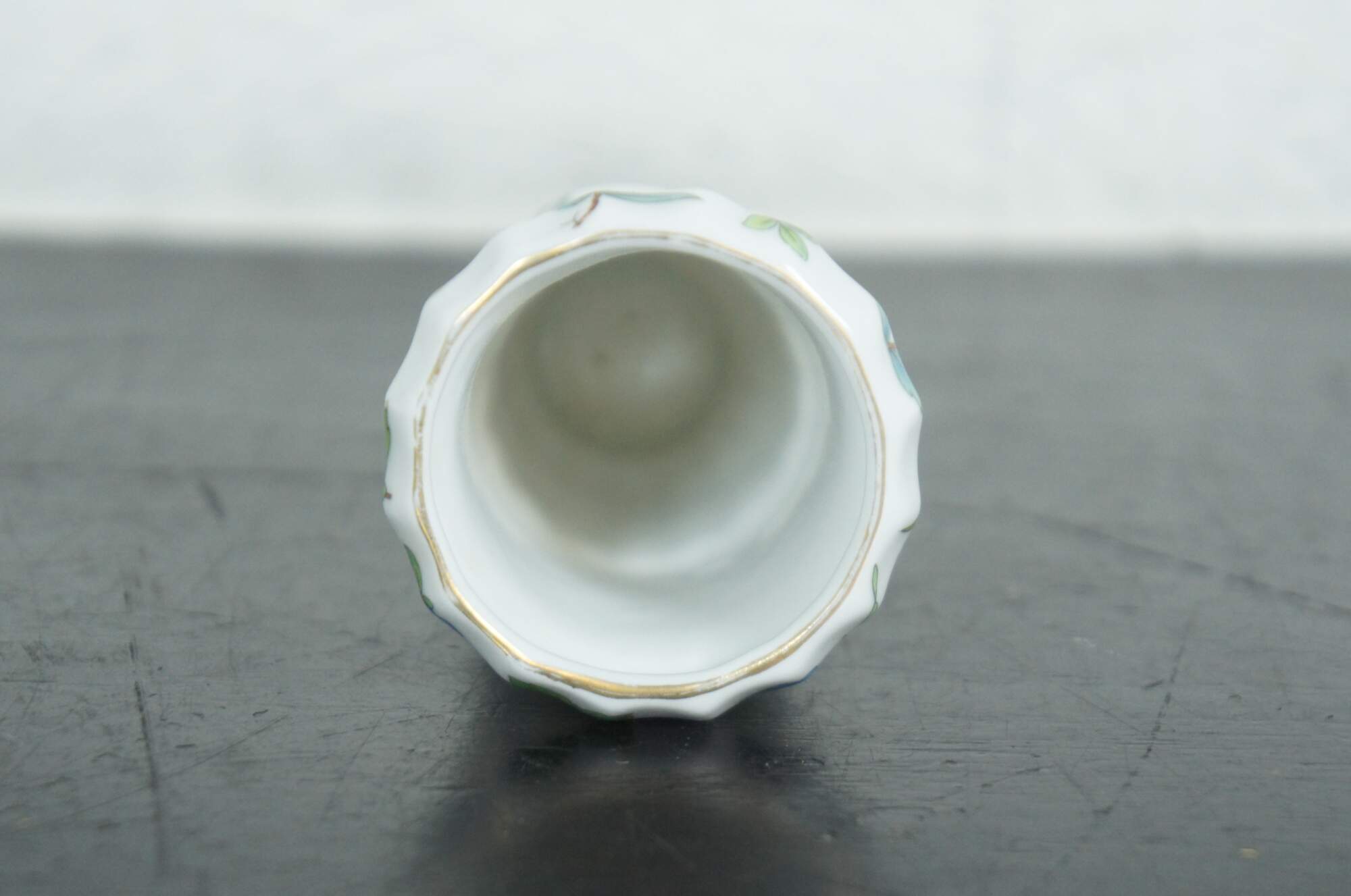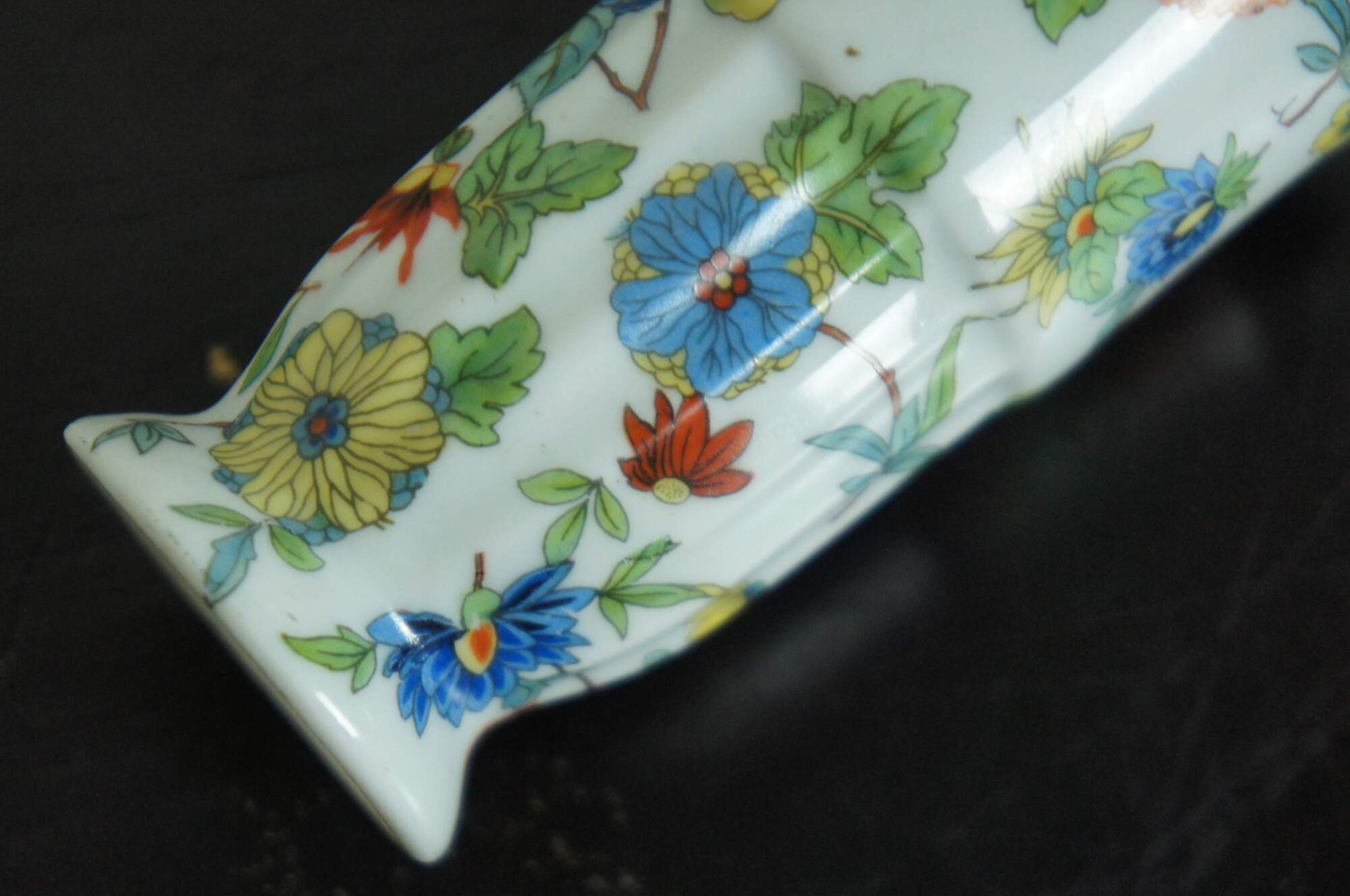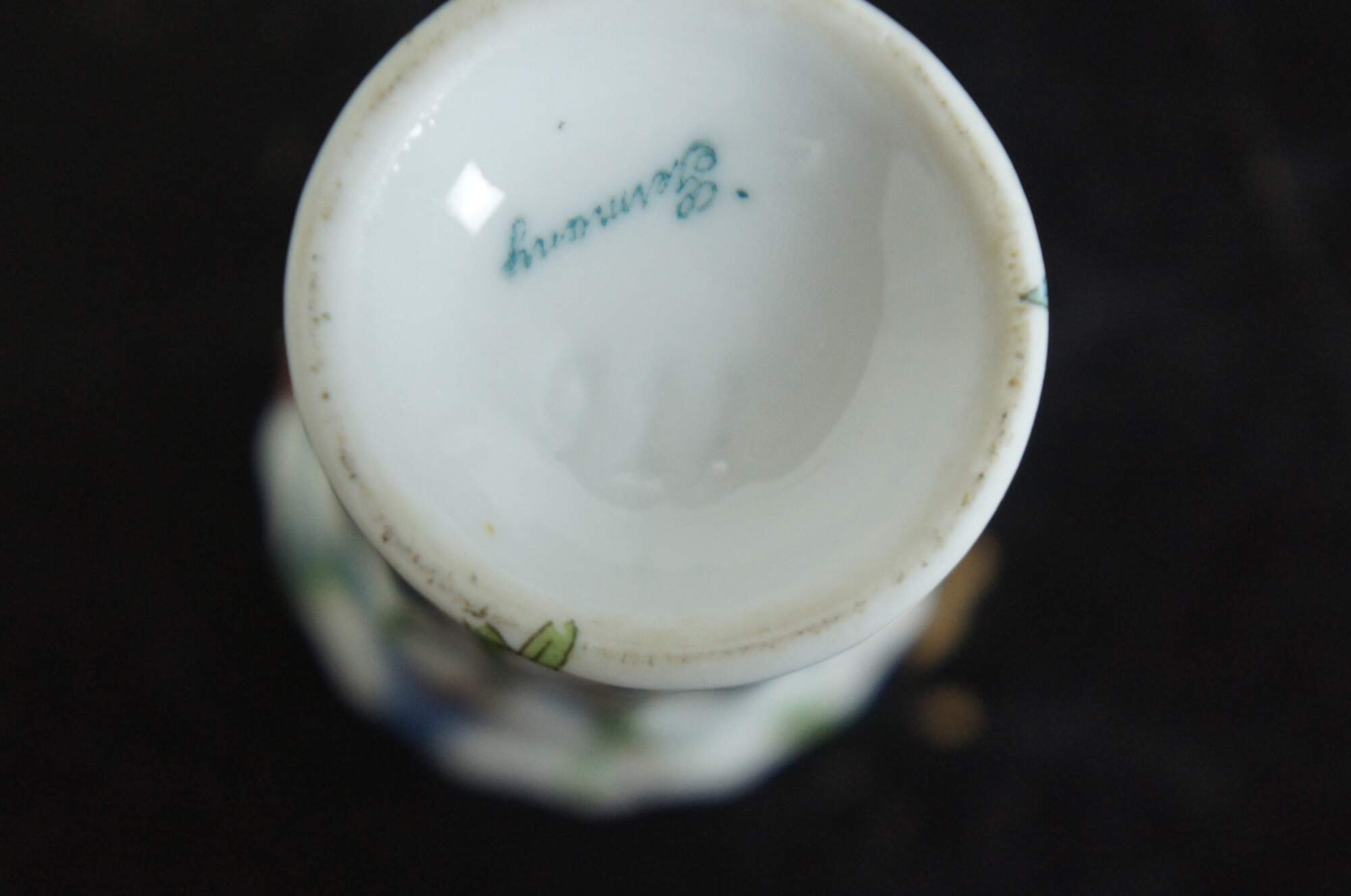 Vintage German porcelain bud vase, handpainted and stylized floral pattern reminiscent of Chrysanthemums. Decorated with orange, blue and yellow flowers.