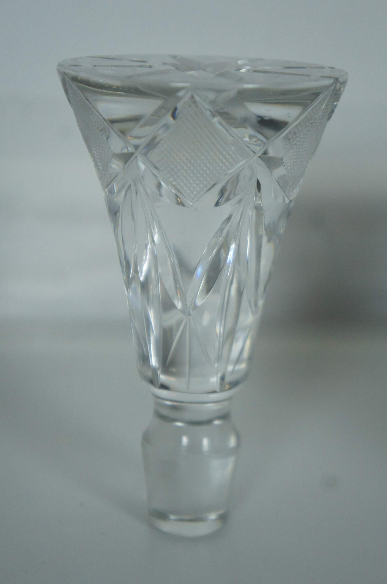 Vintage unmarked cut crystal wine or liquor decanter with pitcher handle and large stopper.