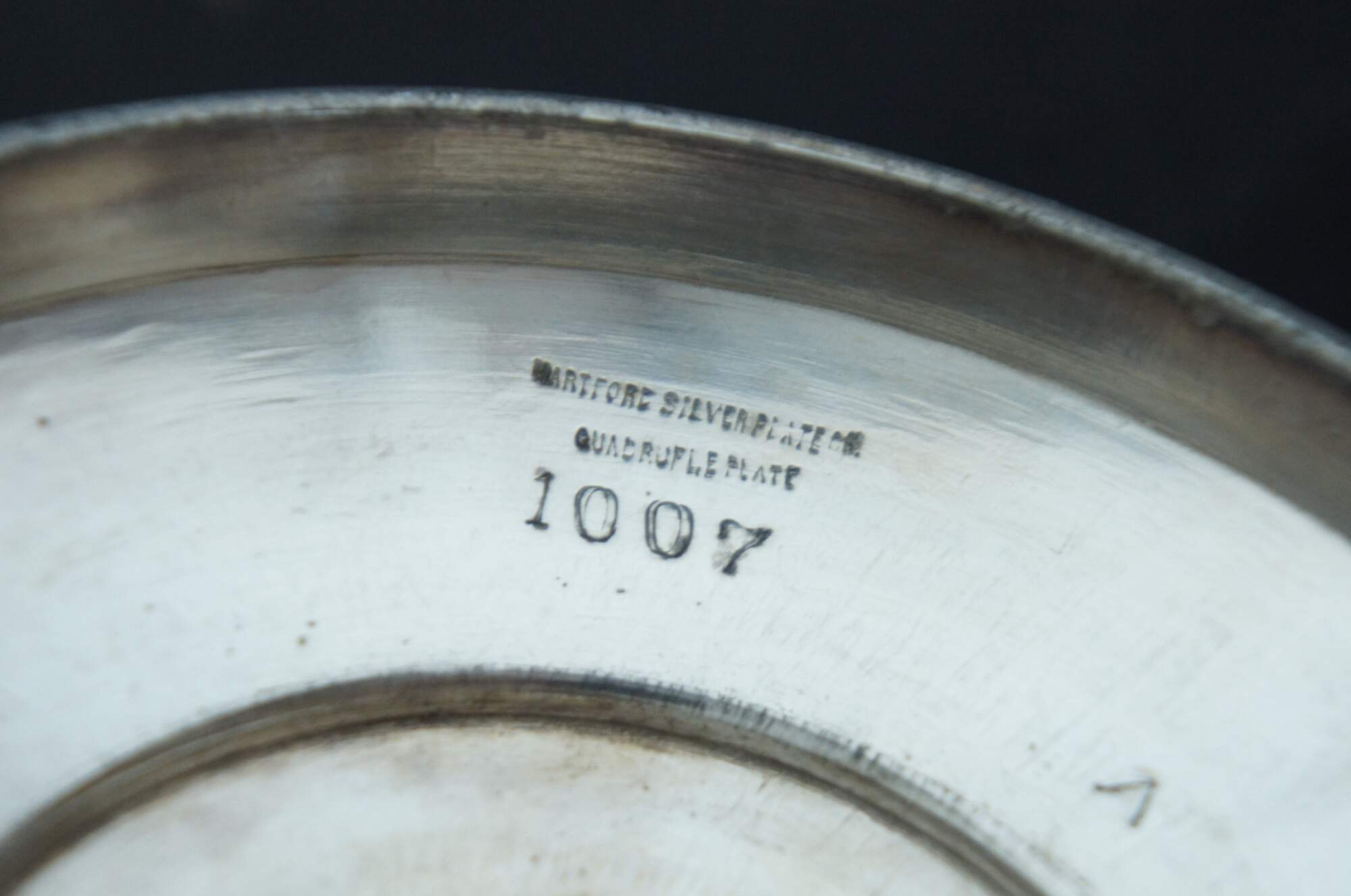 Antique Victoiran Hartford Quadruple Silver Plate number 1007 brides basket or centerpiece, featuring a rotating handle and a border of flowers and birds.