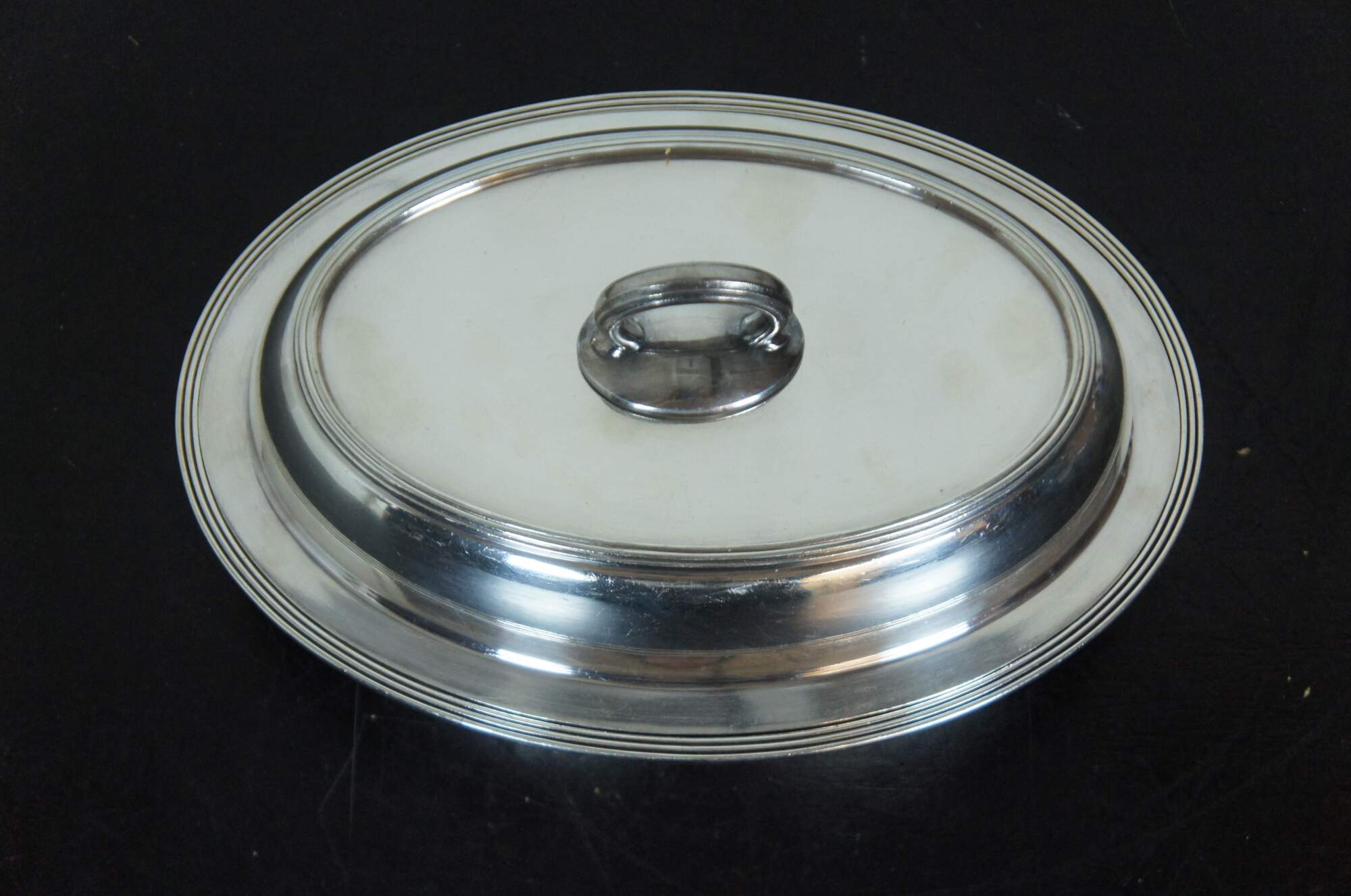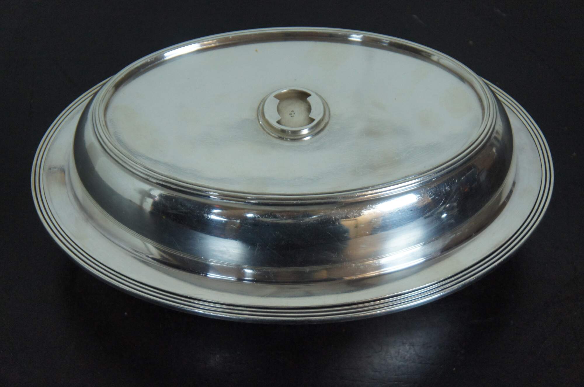 Vintage Gorham silver plate number 01140 oval double vegetable or entree serving dish with a removable handle on the lid to convert the lid into a second dish.“The Gorham Manufacturing Company is one of America’s largest manufacturers of silver-plate and sterling pieces, along with a foundry for bronze sculpture. Gorham got it’s start in 1831 with Jabez Gorham in partnership with Henry Webster. The two founded the silver company in Gorham’s hometown of Providence, Rhode Island. Their beginning was as a manufacturer of coin-silver flatware in which Gorham started to gain acclaim, especially in 1859 once the flatware was selected by Mary Todd Lincoln for the White House. In 1863, Gorham was a major player in plated silver. In 1868, they had made the switch from coin silver for sterling silver and produced everything from knives, forks and spoons, to other desired pieces such as coffee pots and serving bowls. Again, highly desired by several White House administrations, Mrs. Ulysses S. Grant asked Gorham to commemorate the country’s one-hundredth anniversary with a spectacular century vase.”