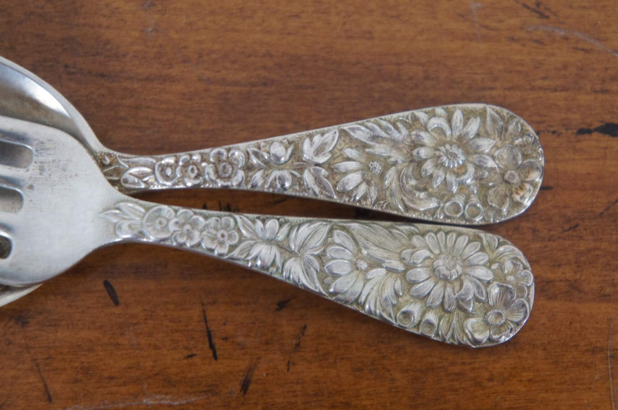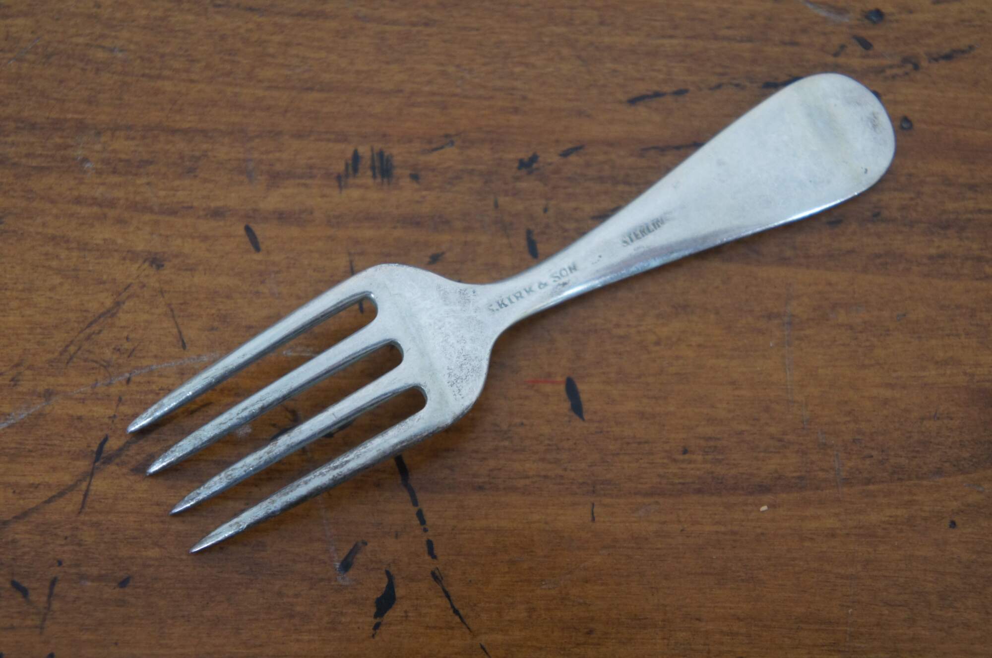 Antique S. Kirk & Son floral sterling silver baby’s christening spoon and fork.