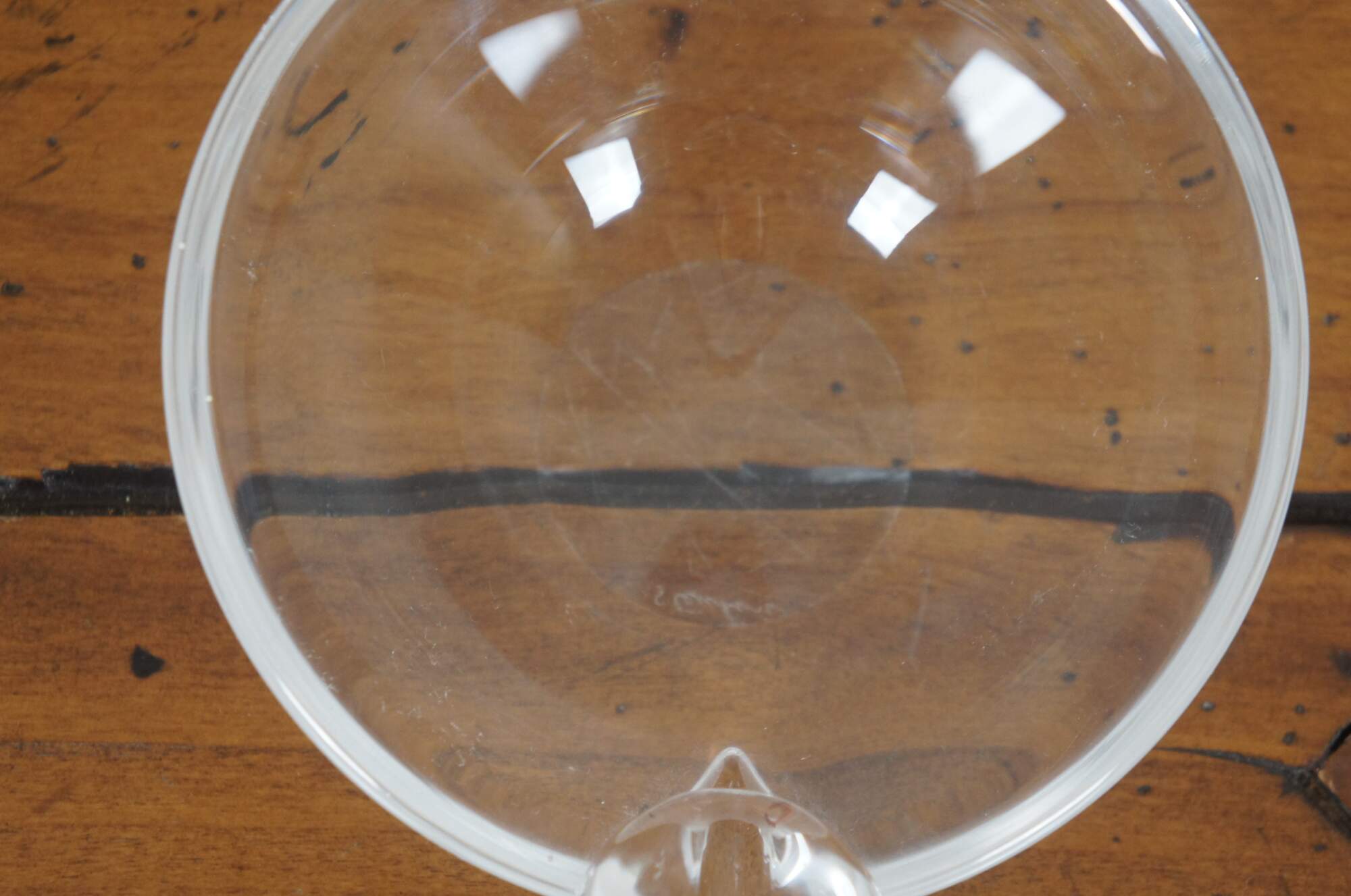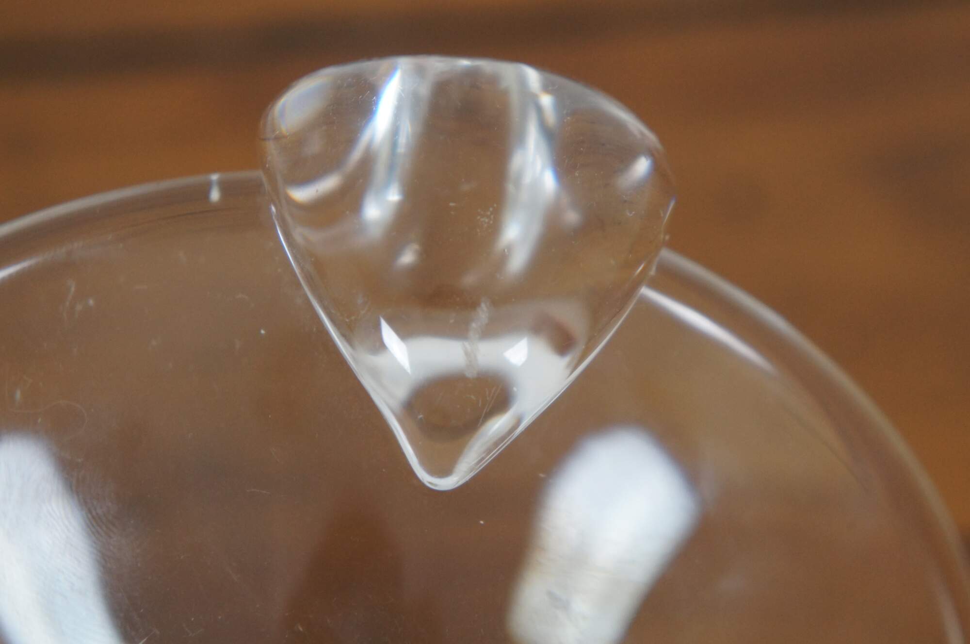 Vintage mid 20th century ashtray by Steuben Glass designed by George Thompson with a round sloped form and tear drop shaped cigarette rest.