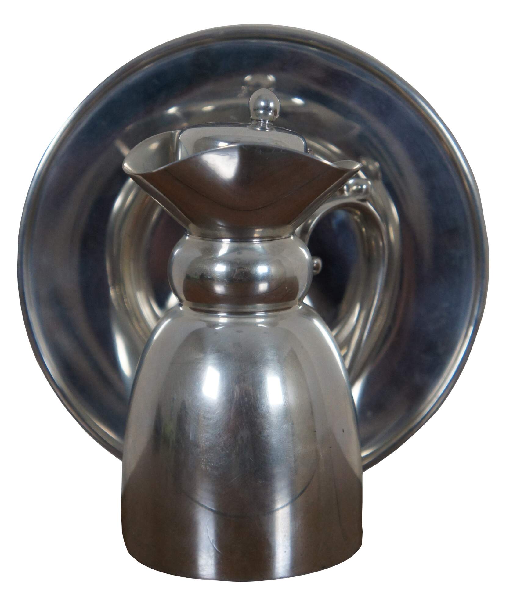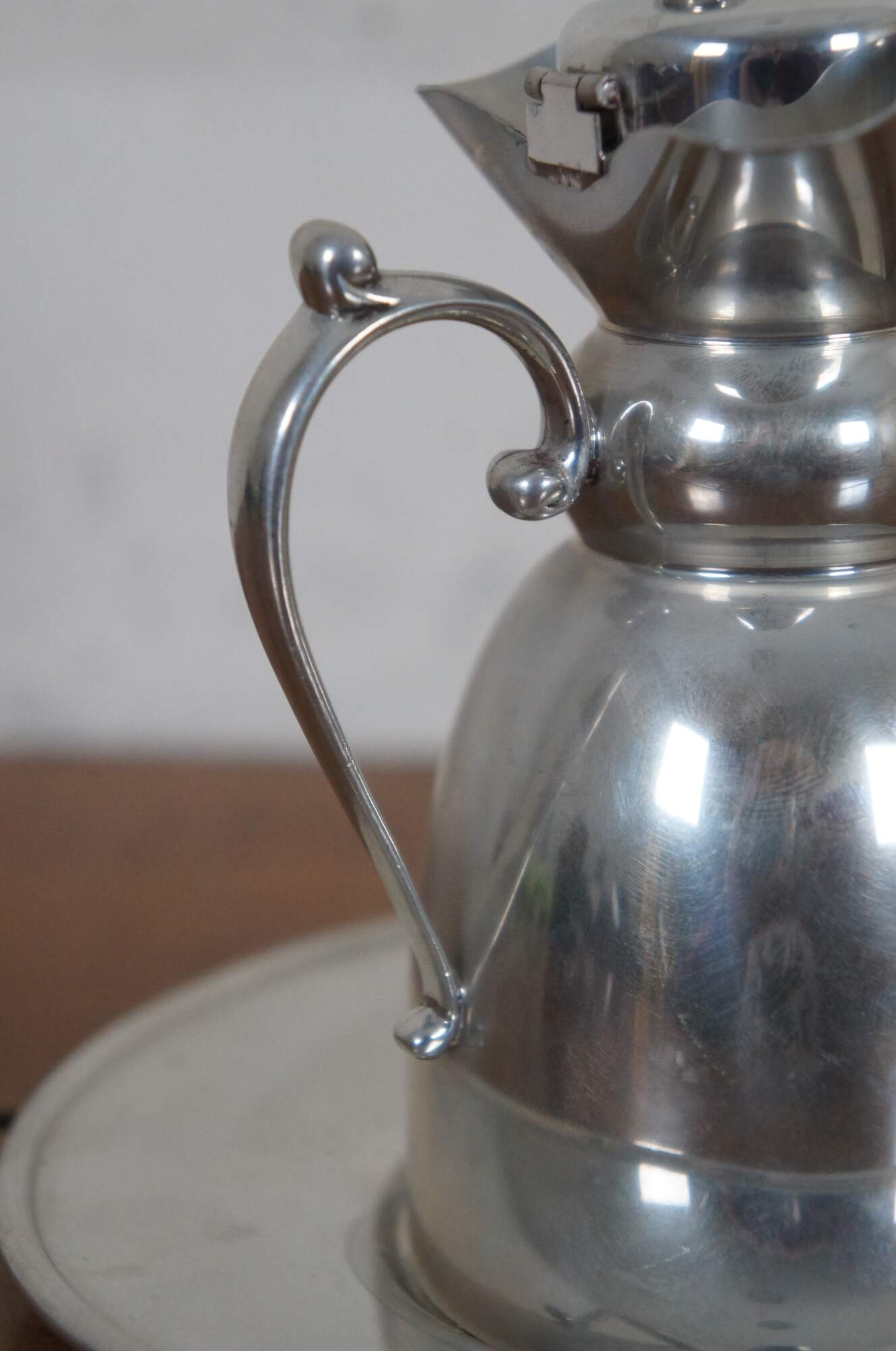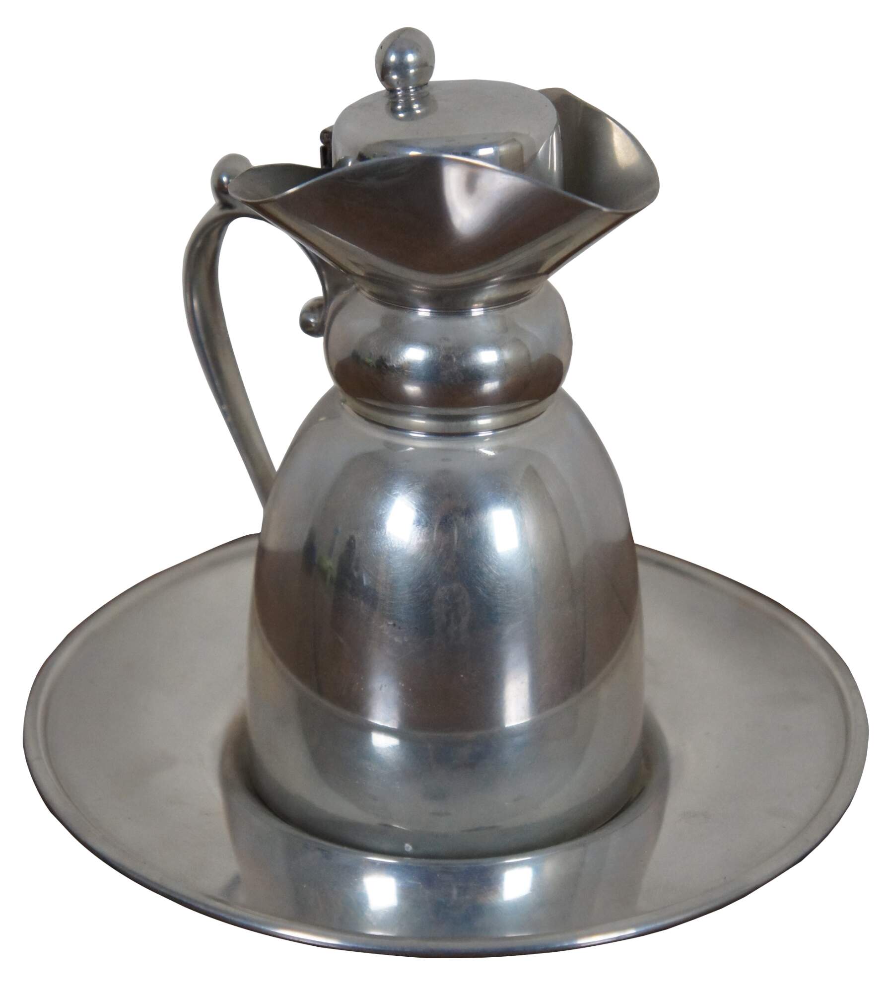 Vintage ATC Hanle & Debler Distinctive American Pewter cream or syrup pitcher and underplate.