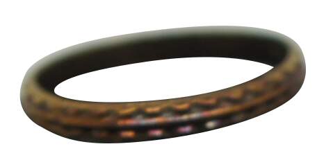 Tiny antique 14K gold baby sized ring with a sawtooth pattern divided by a ridge.