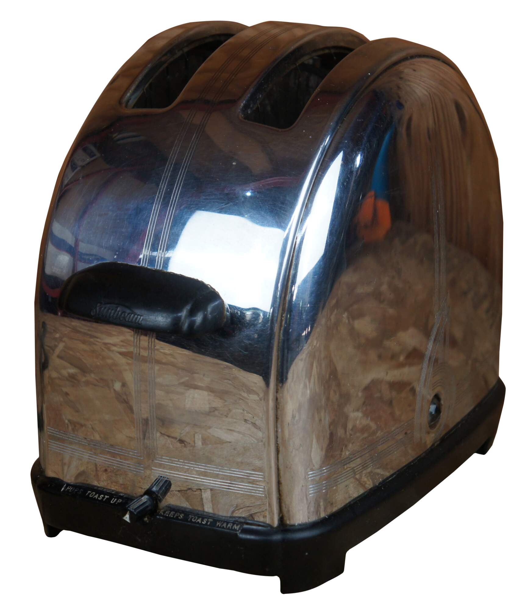 Mid century modern late art deco Sunbeam T-9 toaster in good working condition.
