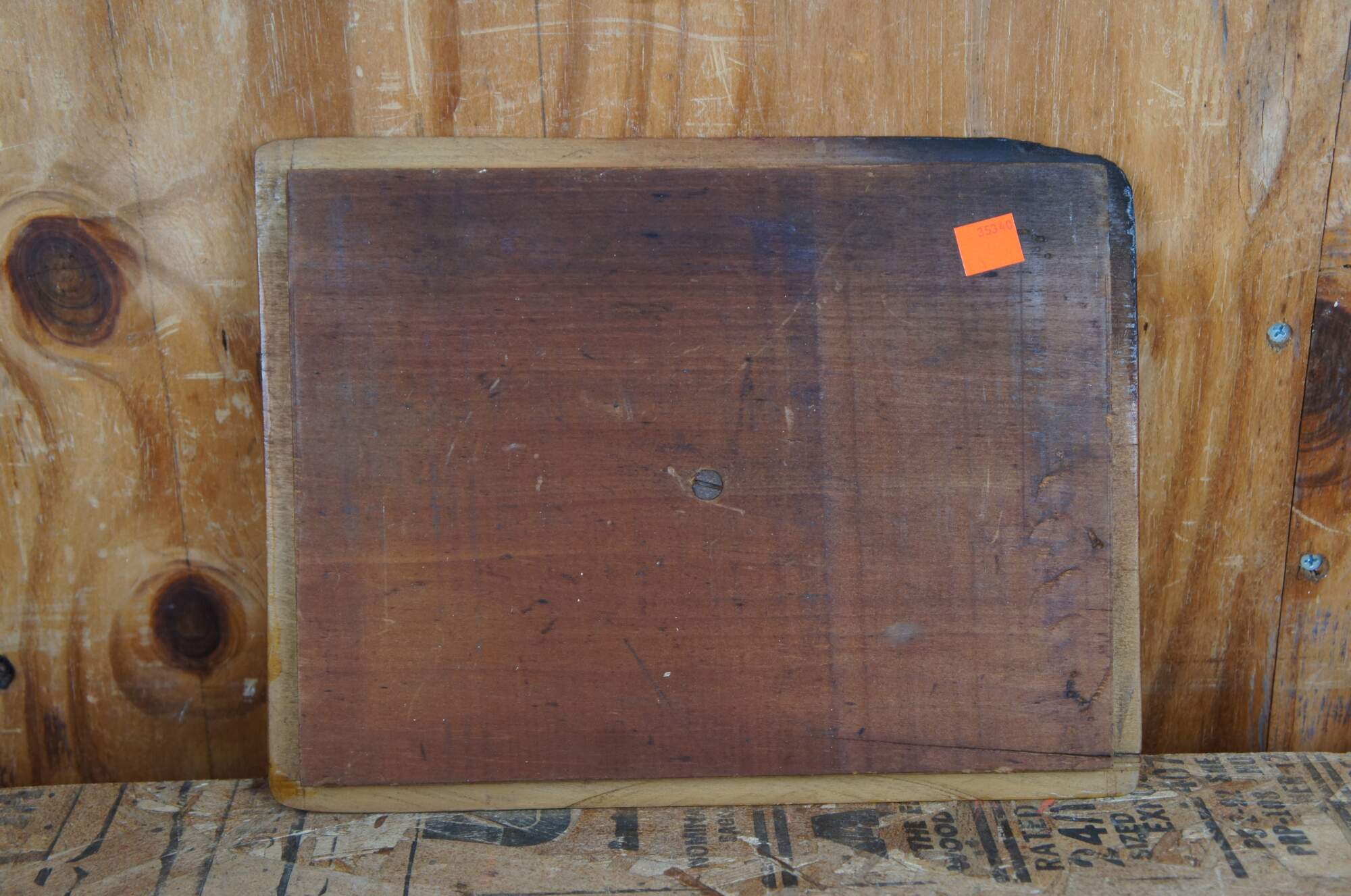 Good antique condition, wear and distressing commensurate with age and use, marking / scuffing, splitting on lid, appearance of burning / fire damage to one corner.