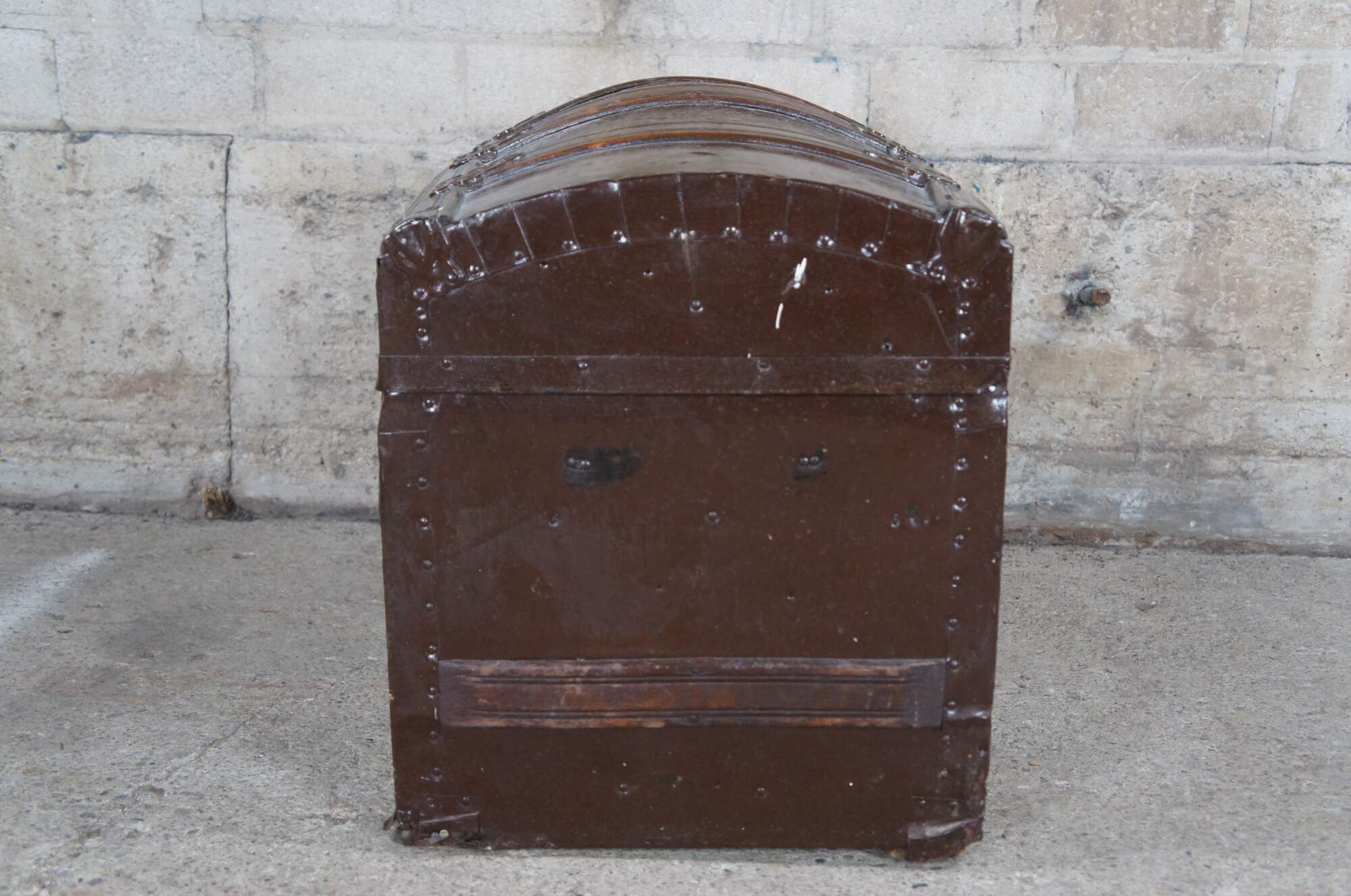 Victorian Dome top trunk. Presssed metal with banded oak top.