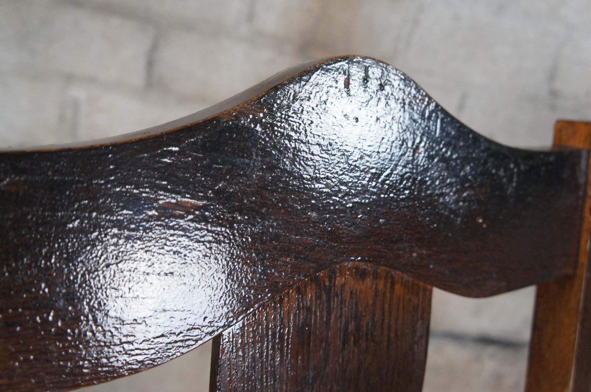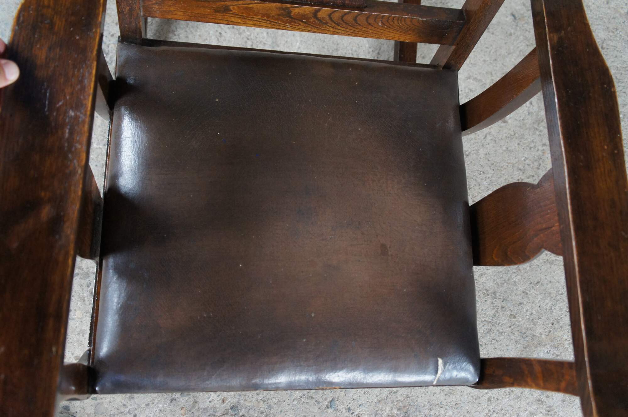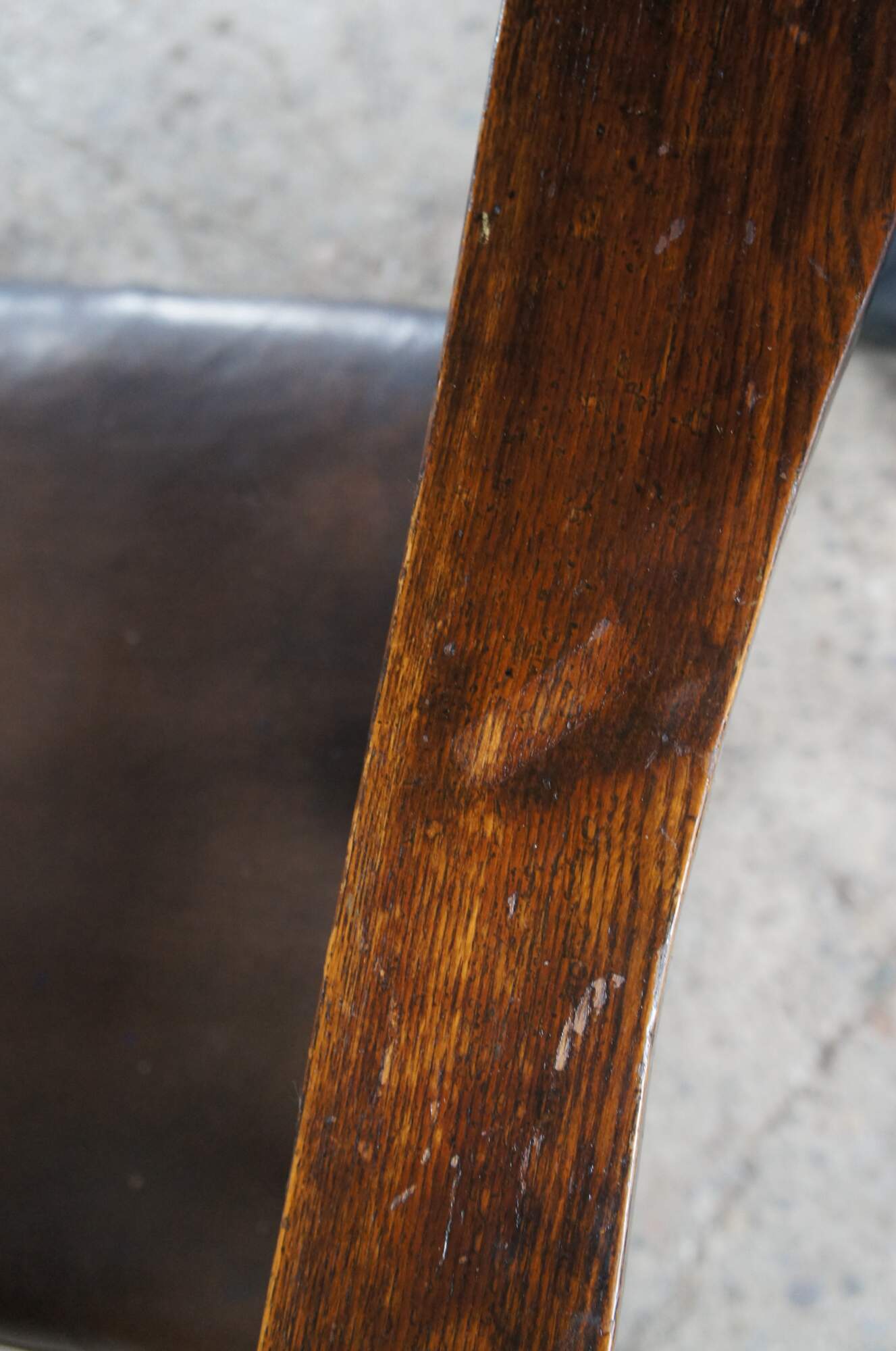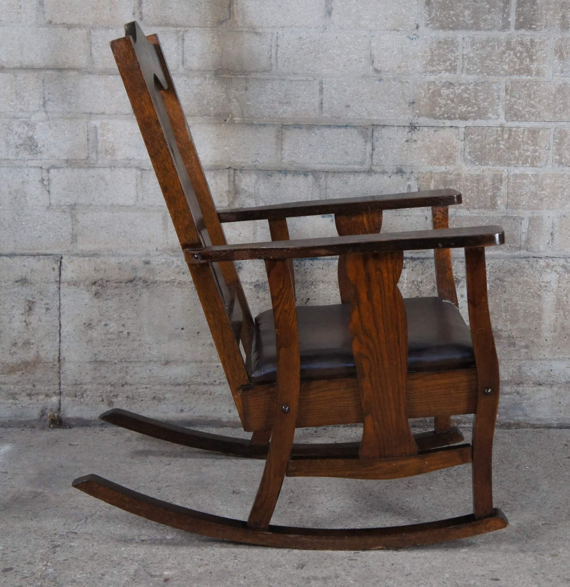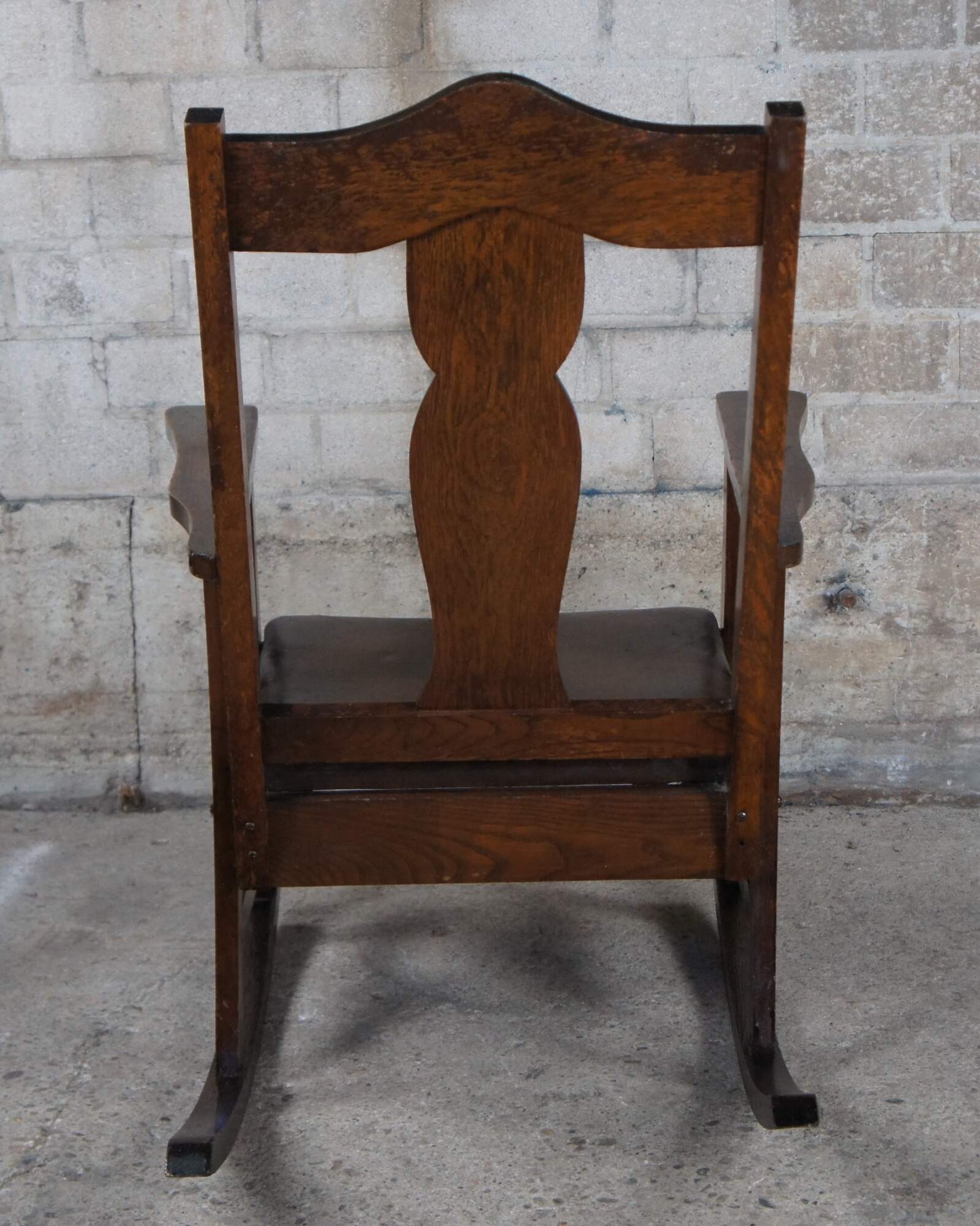 Early 1900s oak rocking chair. Made from oak with vase shaped splat and leather seat.