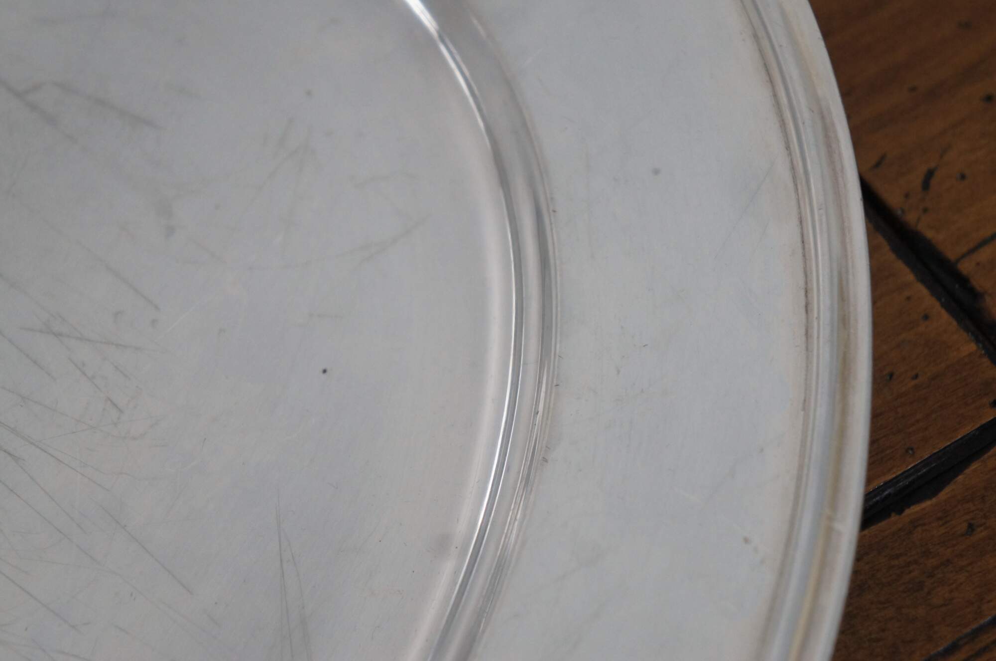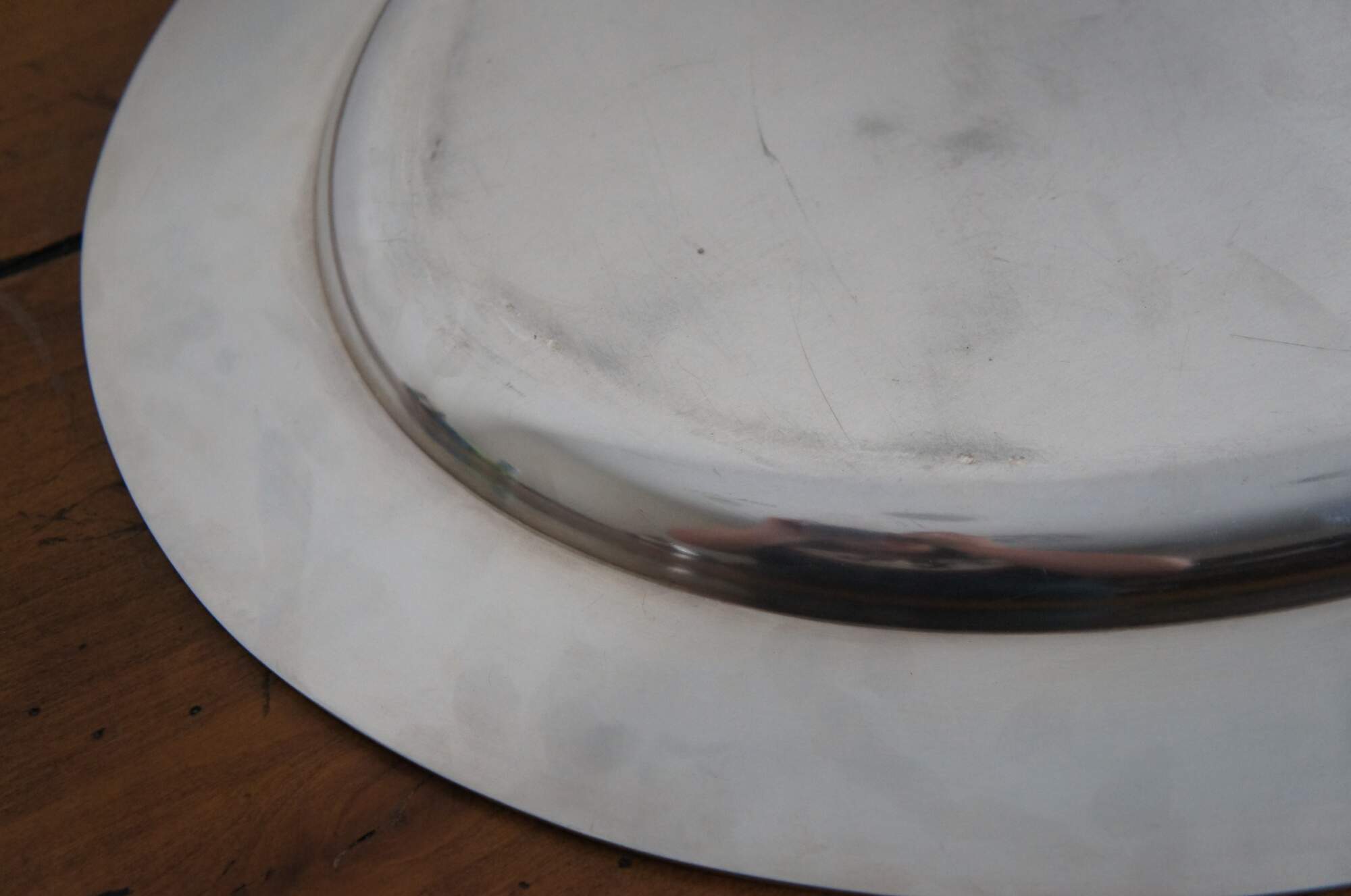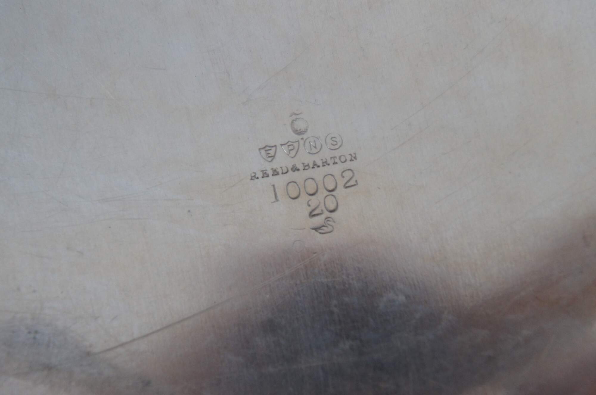 Antique 1934 Reed & Barton number 10002-20 oval silver plate serving platter; edge engraved with the initials CMC. “The Reed & Barton story began in 1824, when Isaac Babbitt created a new metal alloy - ""Britannia metal"" - in his Taunton, Massachusetts pewter shop.