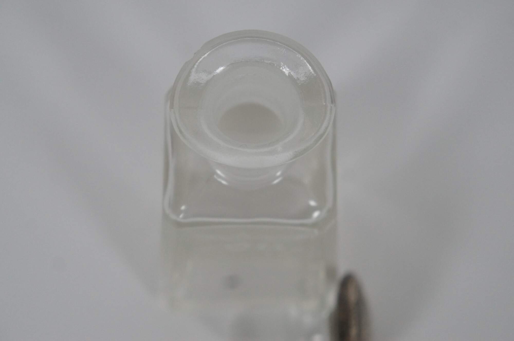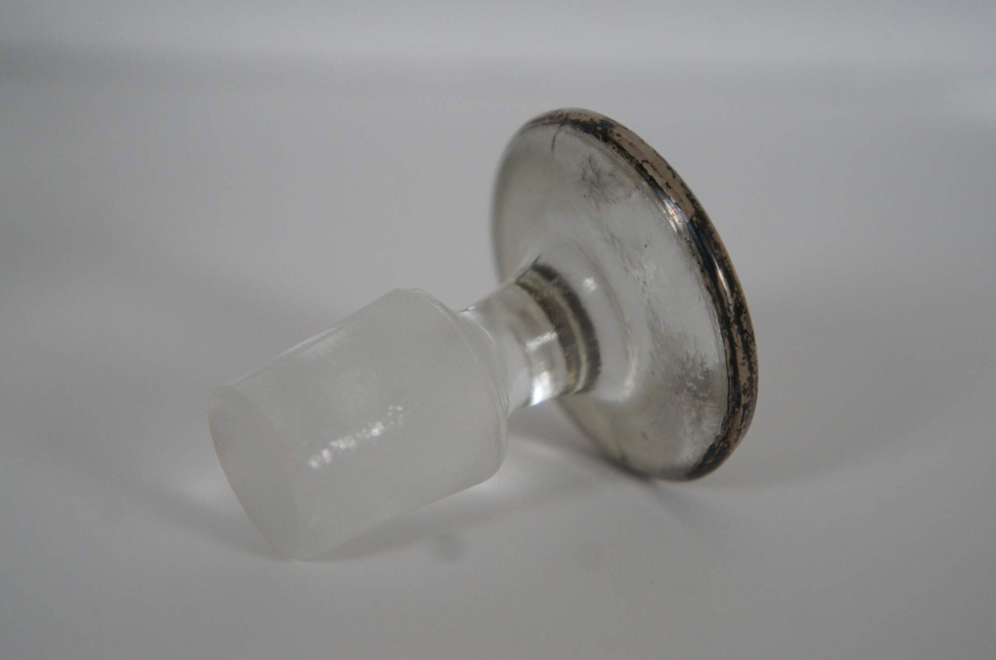 Antique glass salad dressing bottle etched with the words Oil and Vinegar with a line indicating the proportion of each you should fill the bottle with. Stopper is clad in 925 sterling silver.