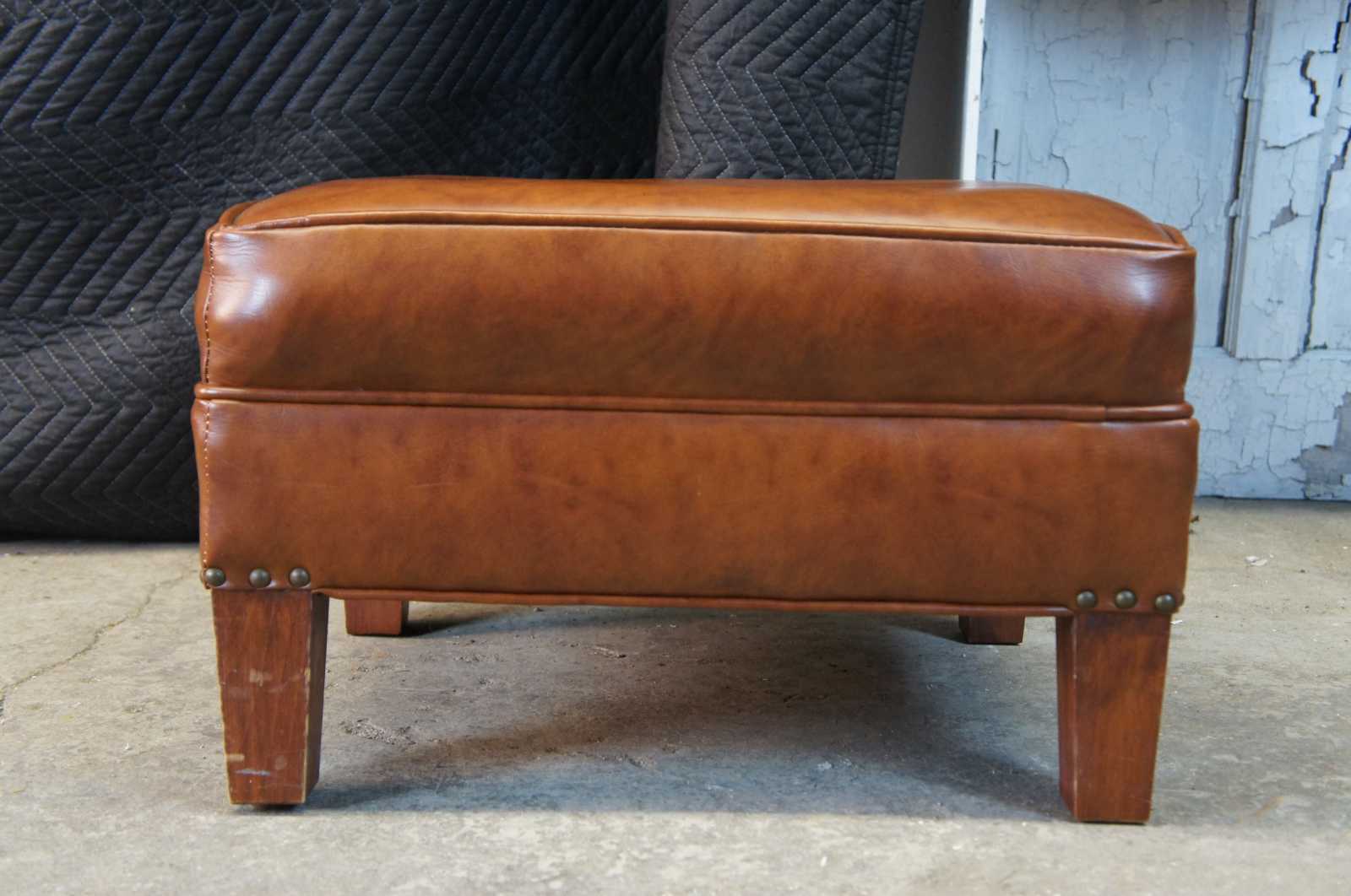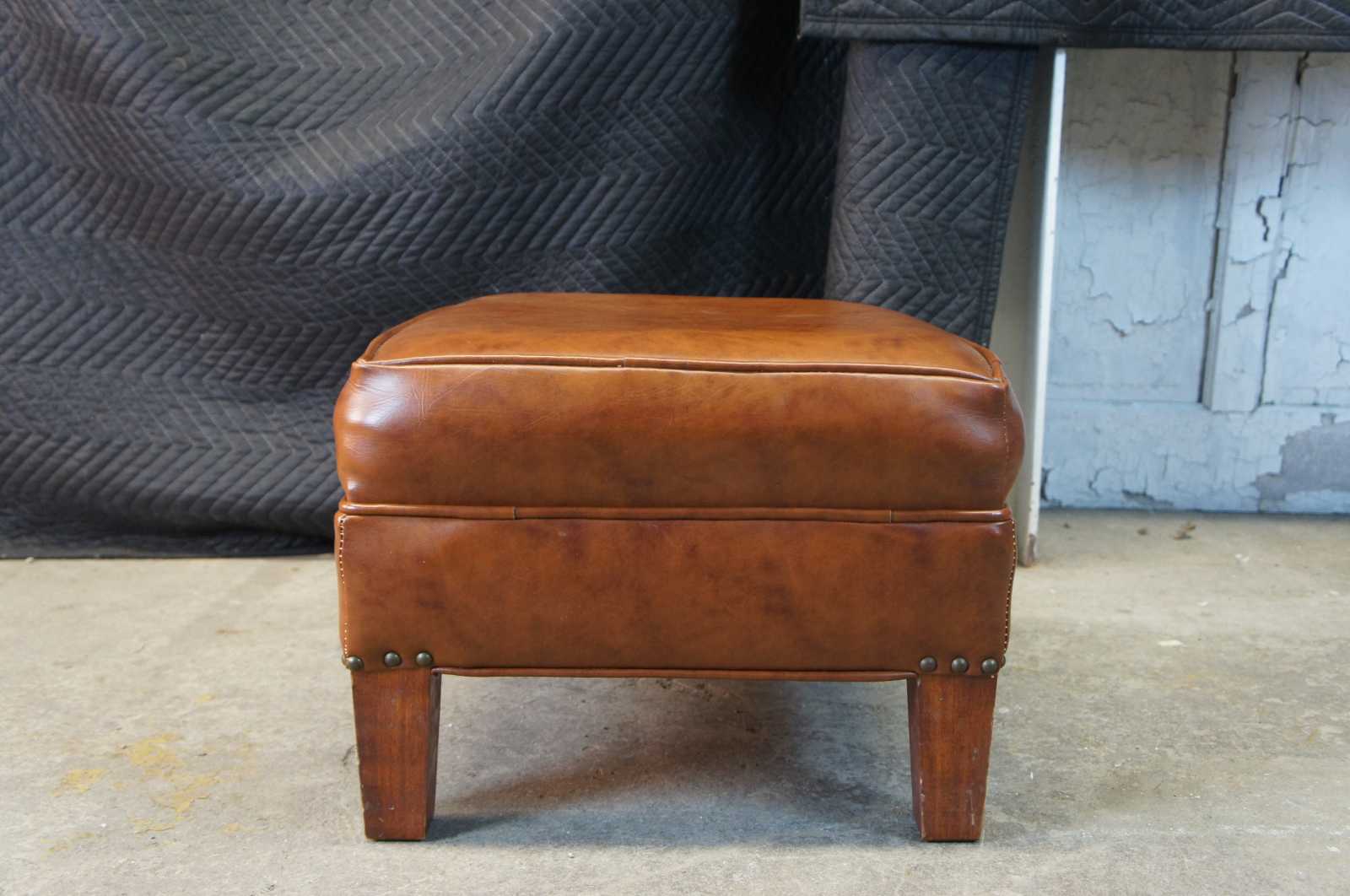 Retro light brown leather ottoman, circa 1960s. Rectangular form with square tapered legs.