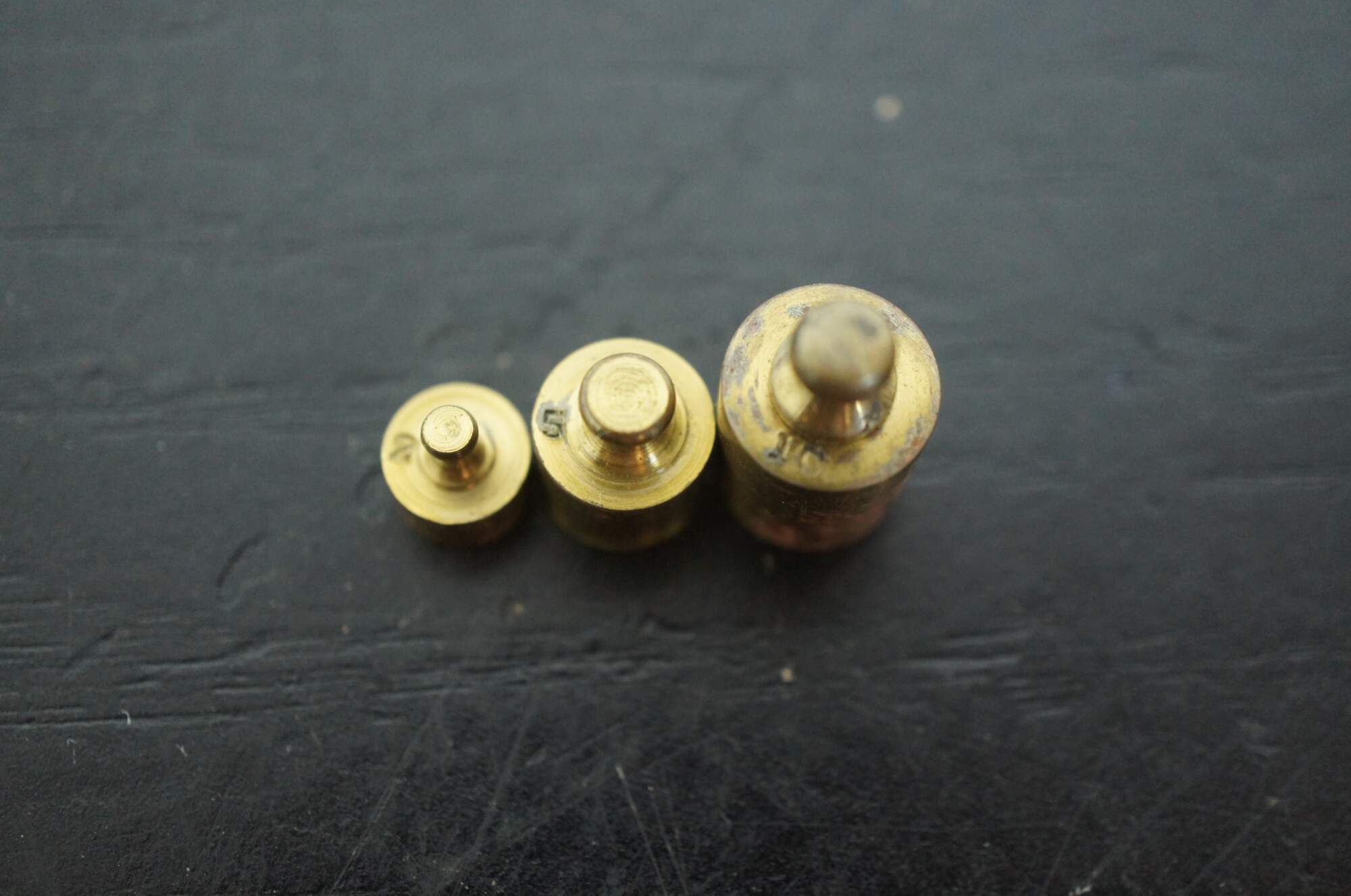 Good Overall – Gentle scuffs and wear to box, missing weights, some tarnish/ oxidation