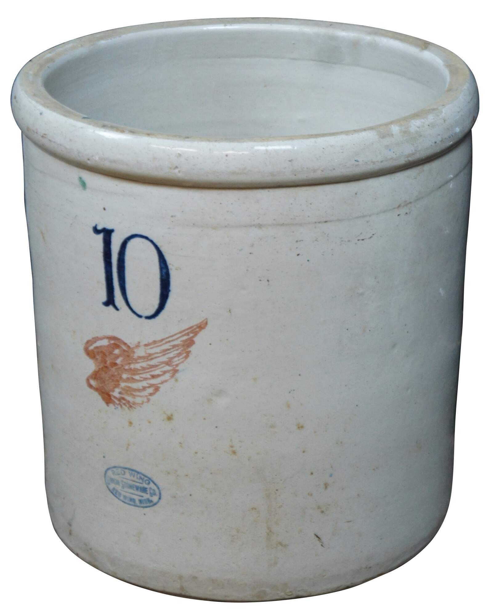 Antique Red Wing Union Pottery salt glaze stoneware ten gallon crock.