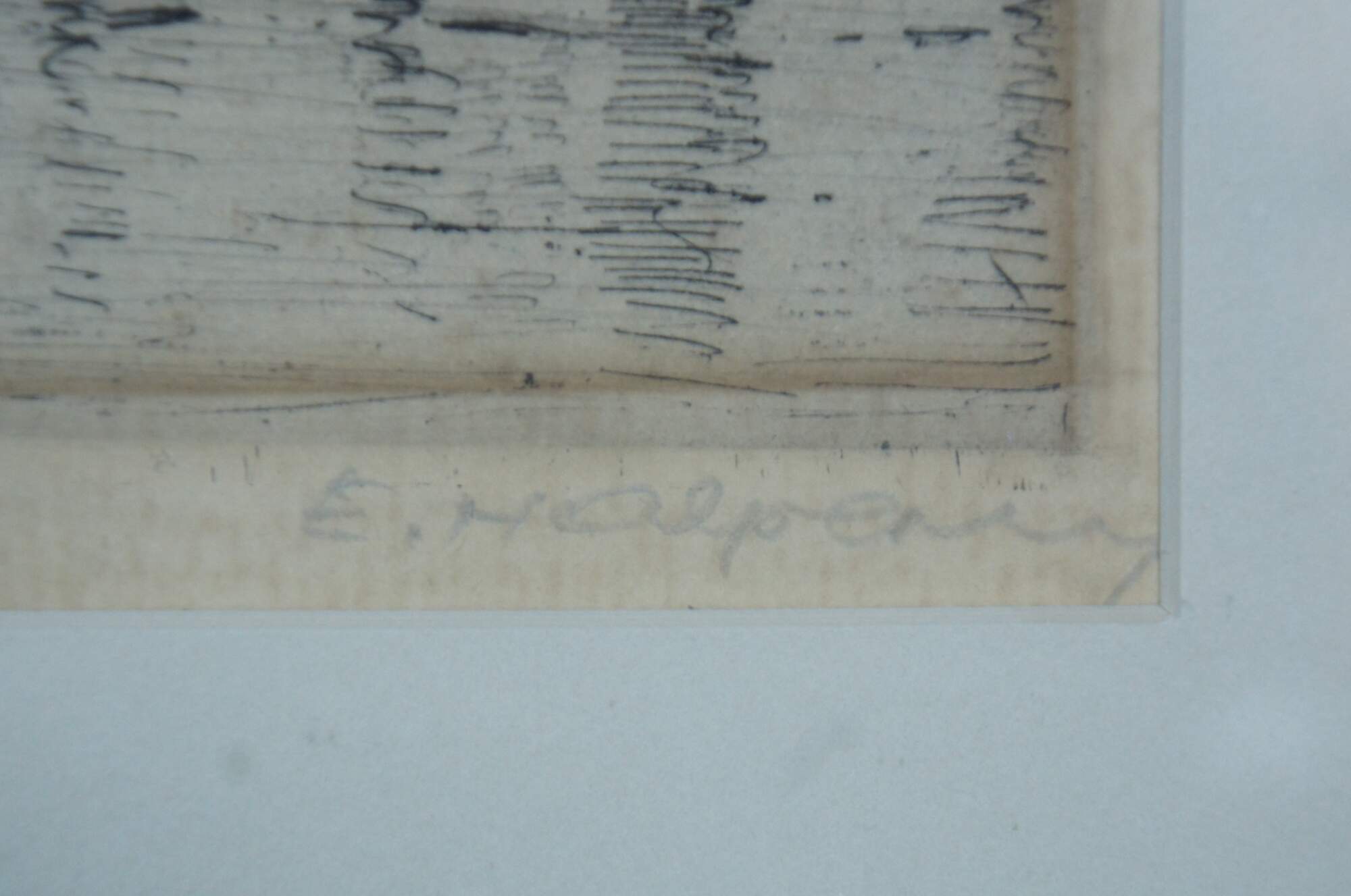 Antique drypoint etching showing a European cityscape (attributed to Venice Italy) of canals and buildings. Pencil signed and numbered 1/25.