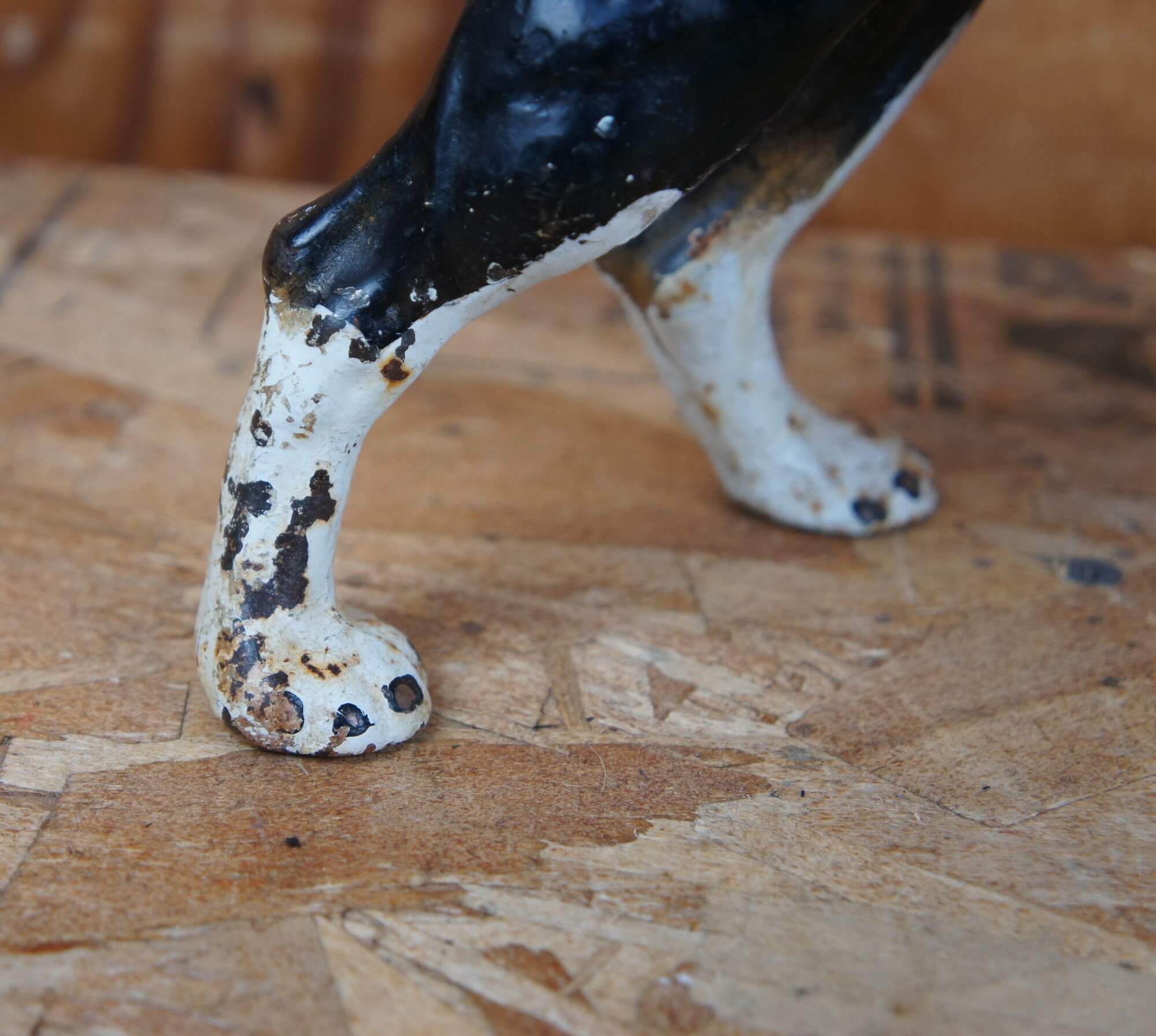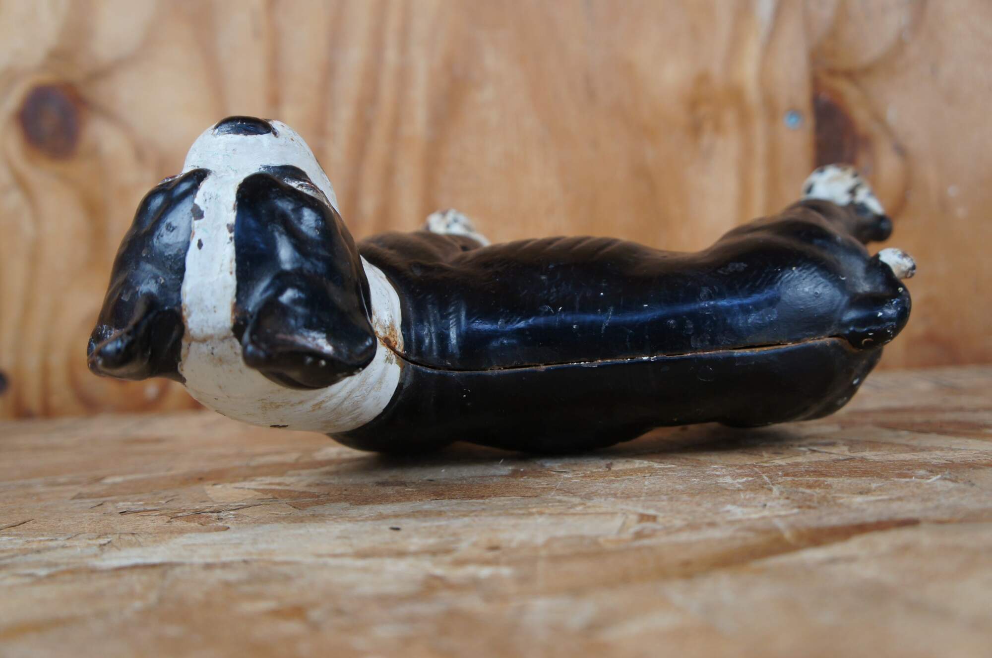 Cast iron dog made of to adjoining pieces possibly made by Hubley, good for use as a door stop or bookend.