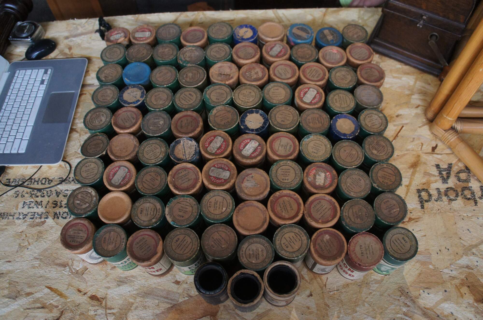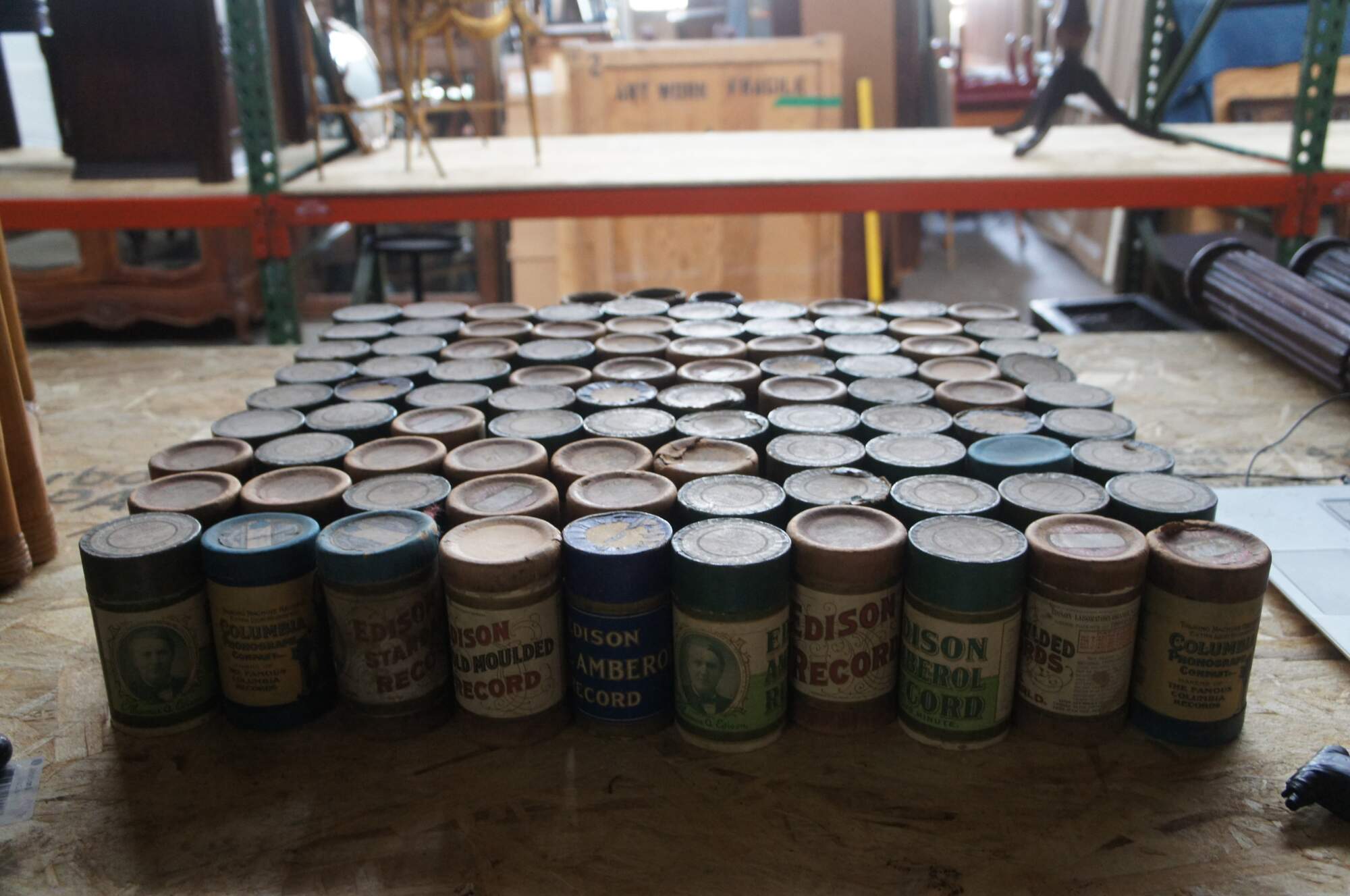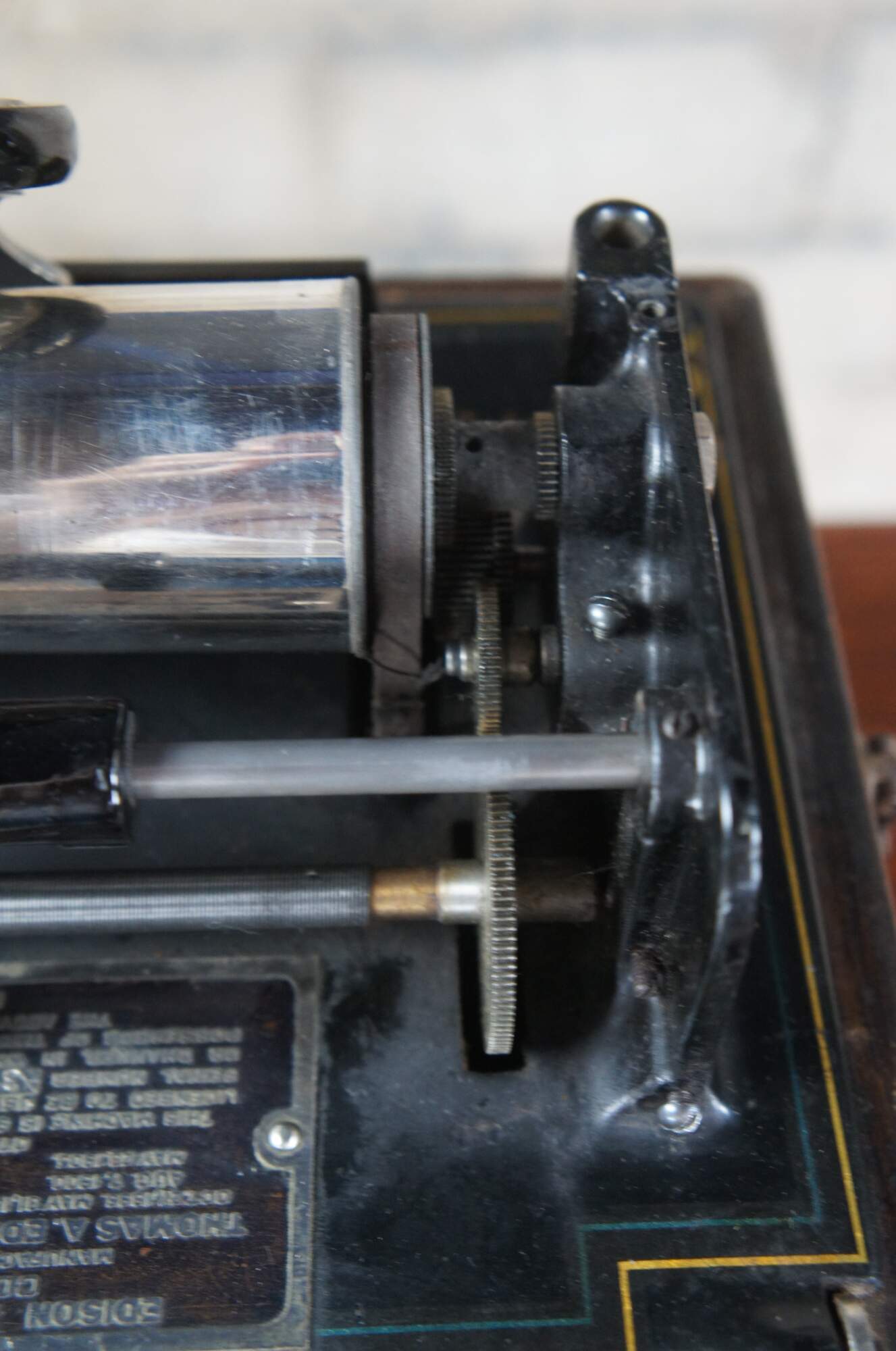 Good Antique Condition; Missing mount for horn. The male tip of the horn appears to be bent where it would connect to the phonograph receiver. Otherwise, unit is in working condition. Did not open or test all cylinders, some are brittle / broken. Majority are operable.