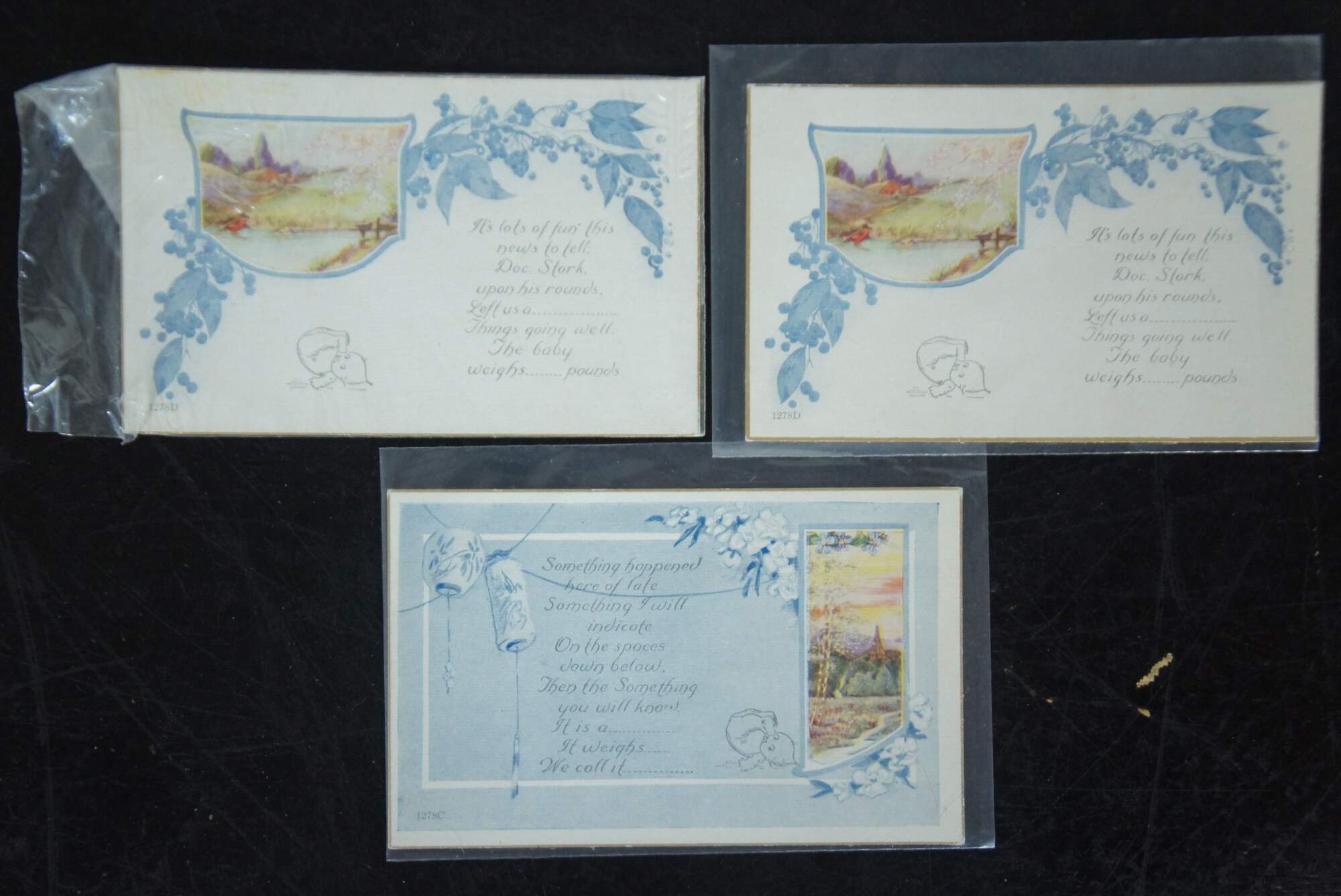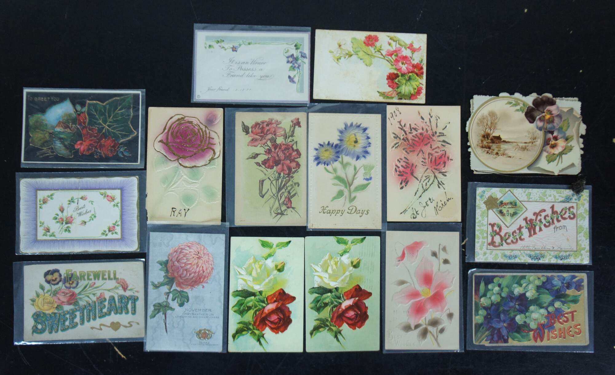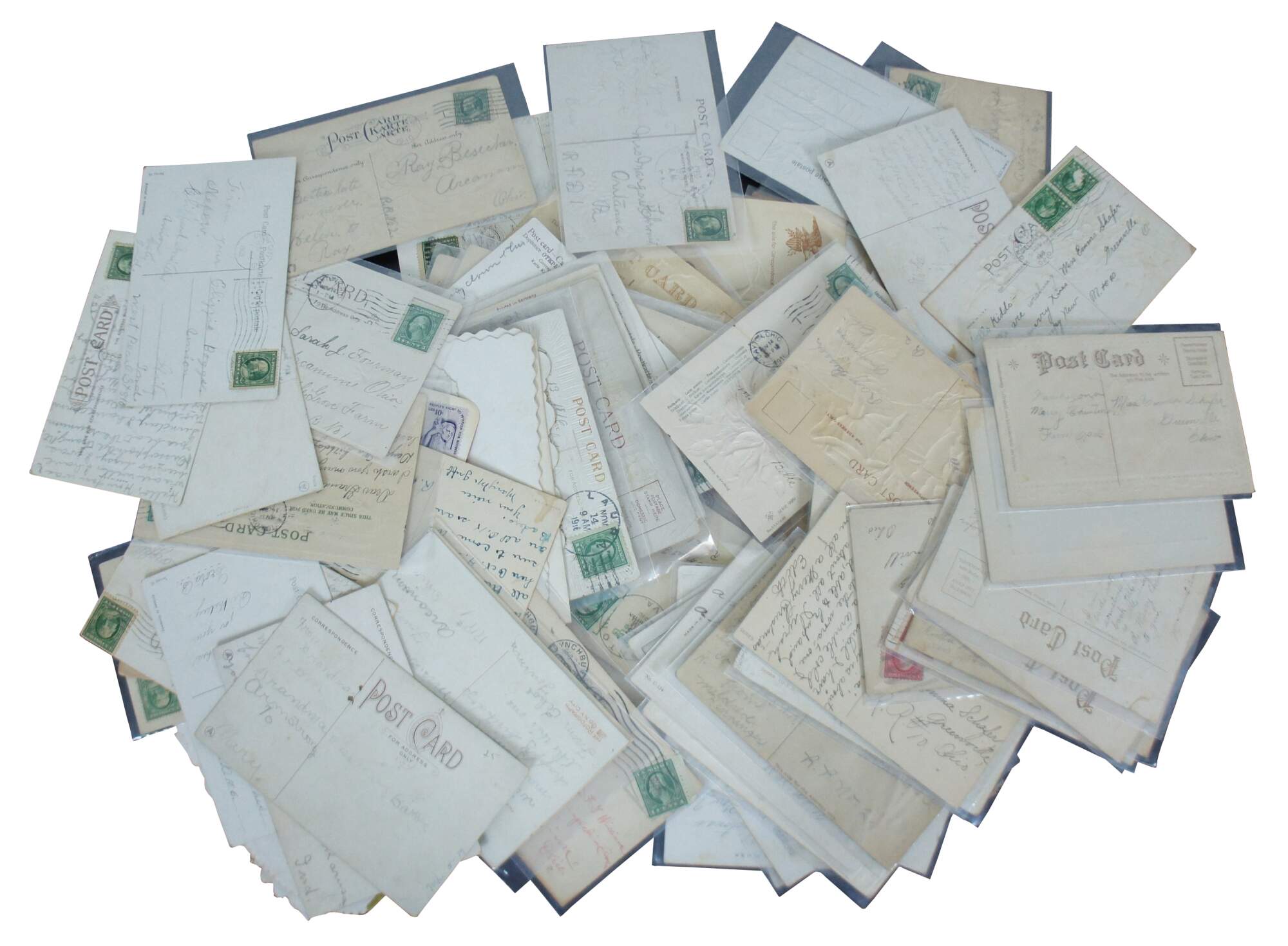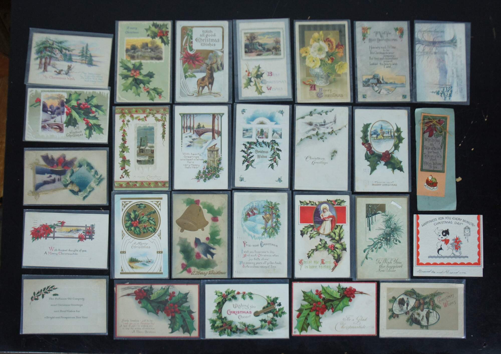 Lot of 138 vintage and antique postcards for a variety of holiday greetings and travel locations, plus a handful of Lion Coffee print advertisements.