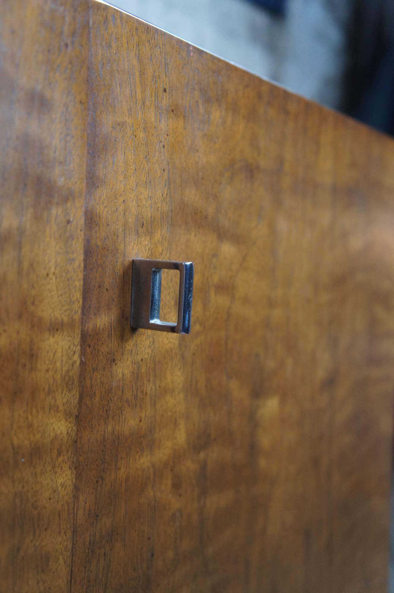 1970s Vintage Buffet, Credenza or Sideboard by Jack Cartwright for Founders Furniture. The carefully chosen American walnut veneers compliment the sleek tubular chrome base. Interior storage includes three center drawers flanked by adjustable shelves. Founders Furniture was started in 1946 as a subsidiary of the esteemed Knoll International to manufacture their residential line. Jack Cartwright designed their iconic lines that speak to mid century modern collectors today.