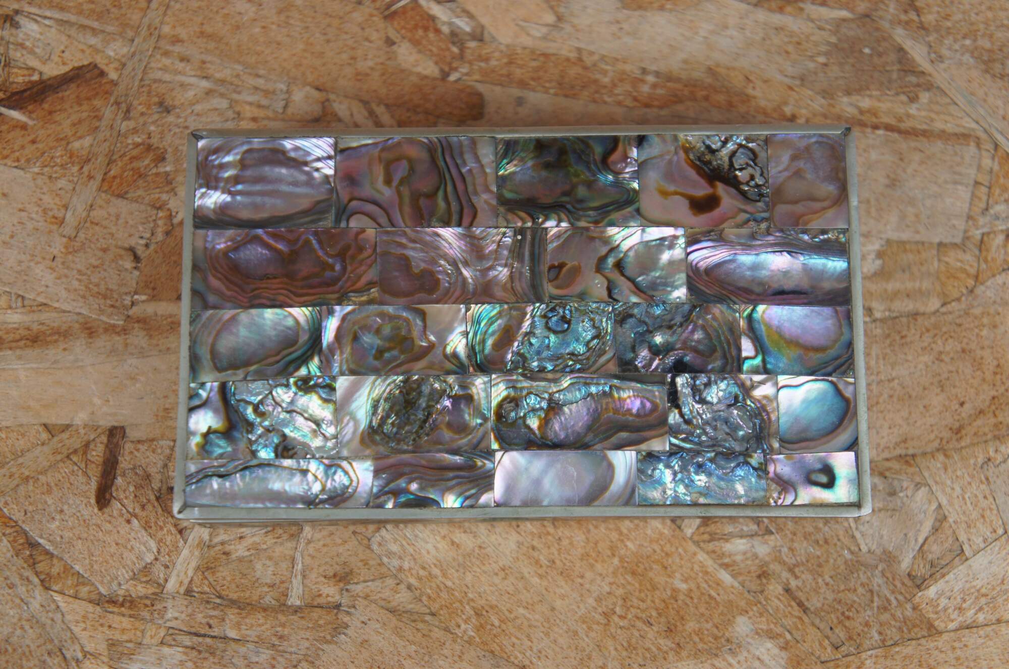 Two vintage 1960s Abalone shell and Alpaca silver cigarette or trinket boxes, Hecho en Mexico.